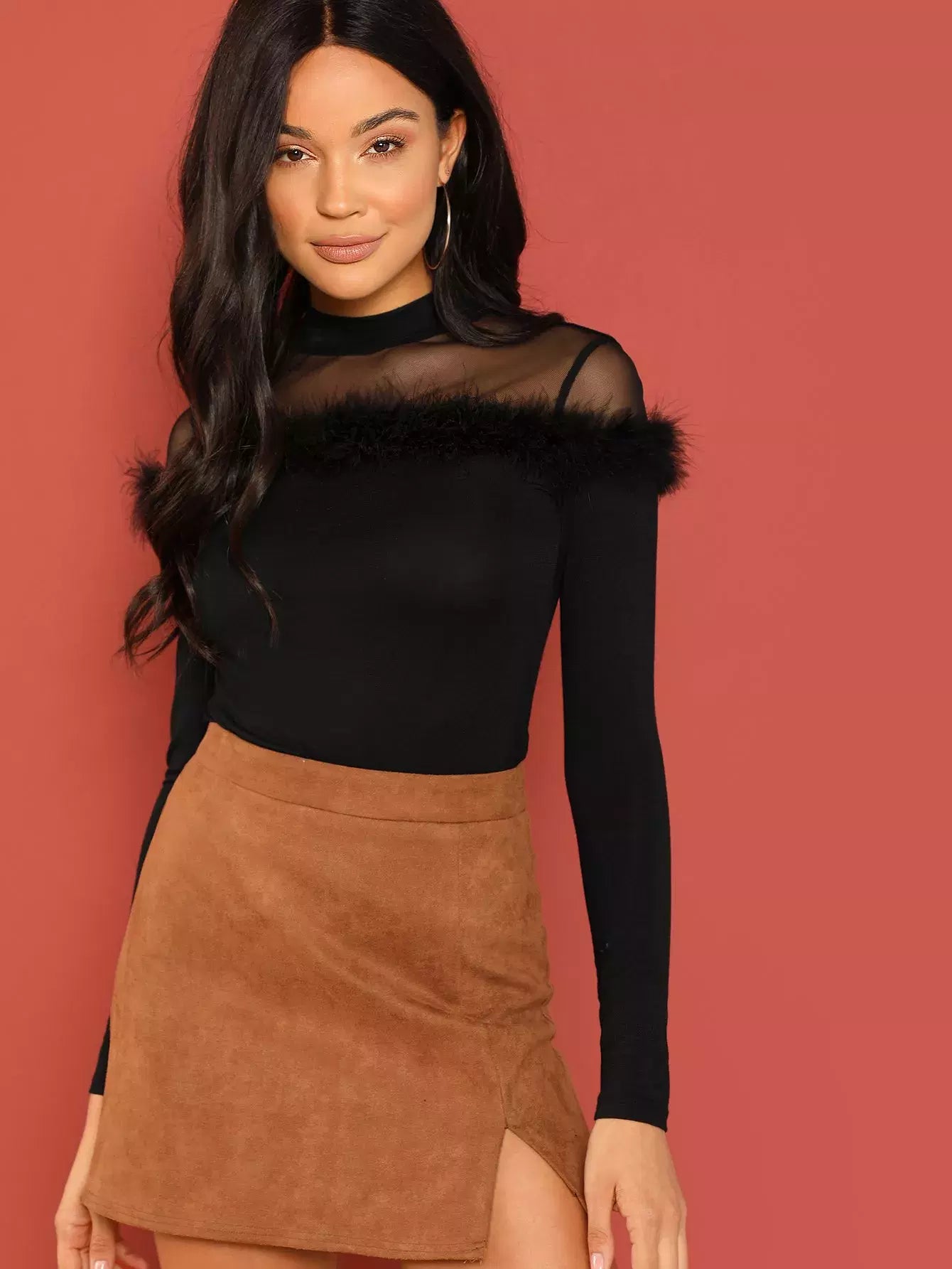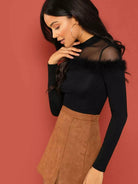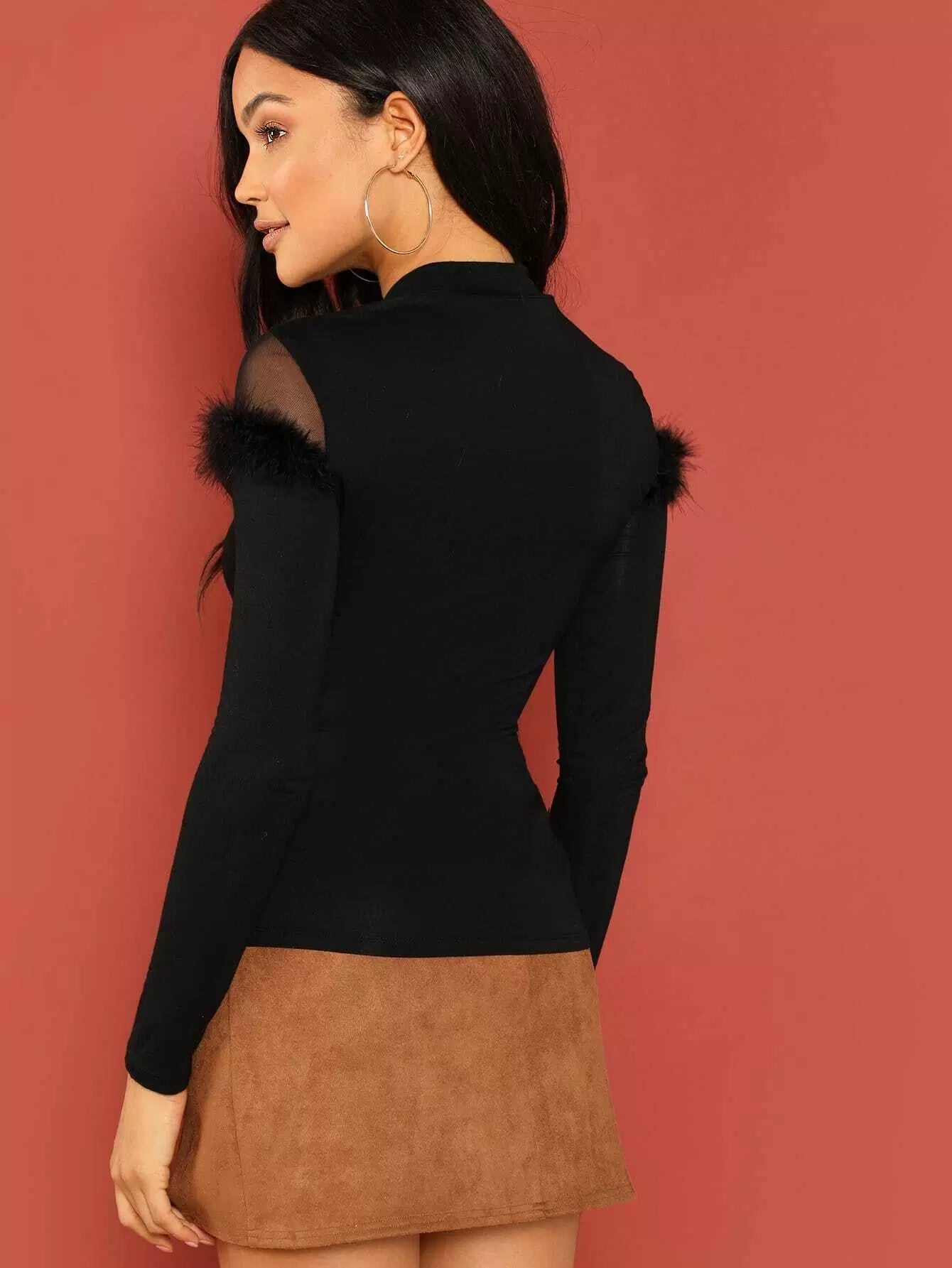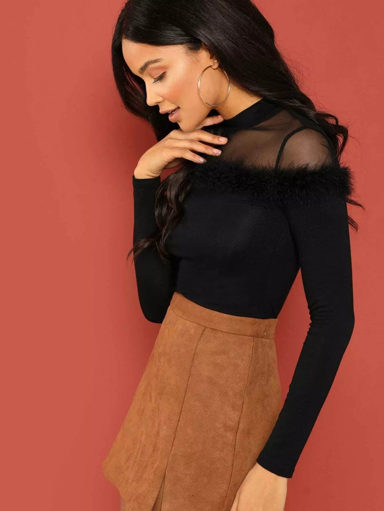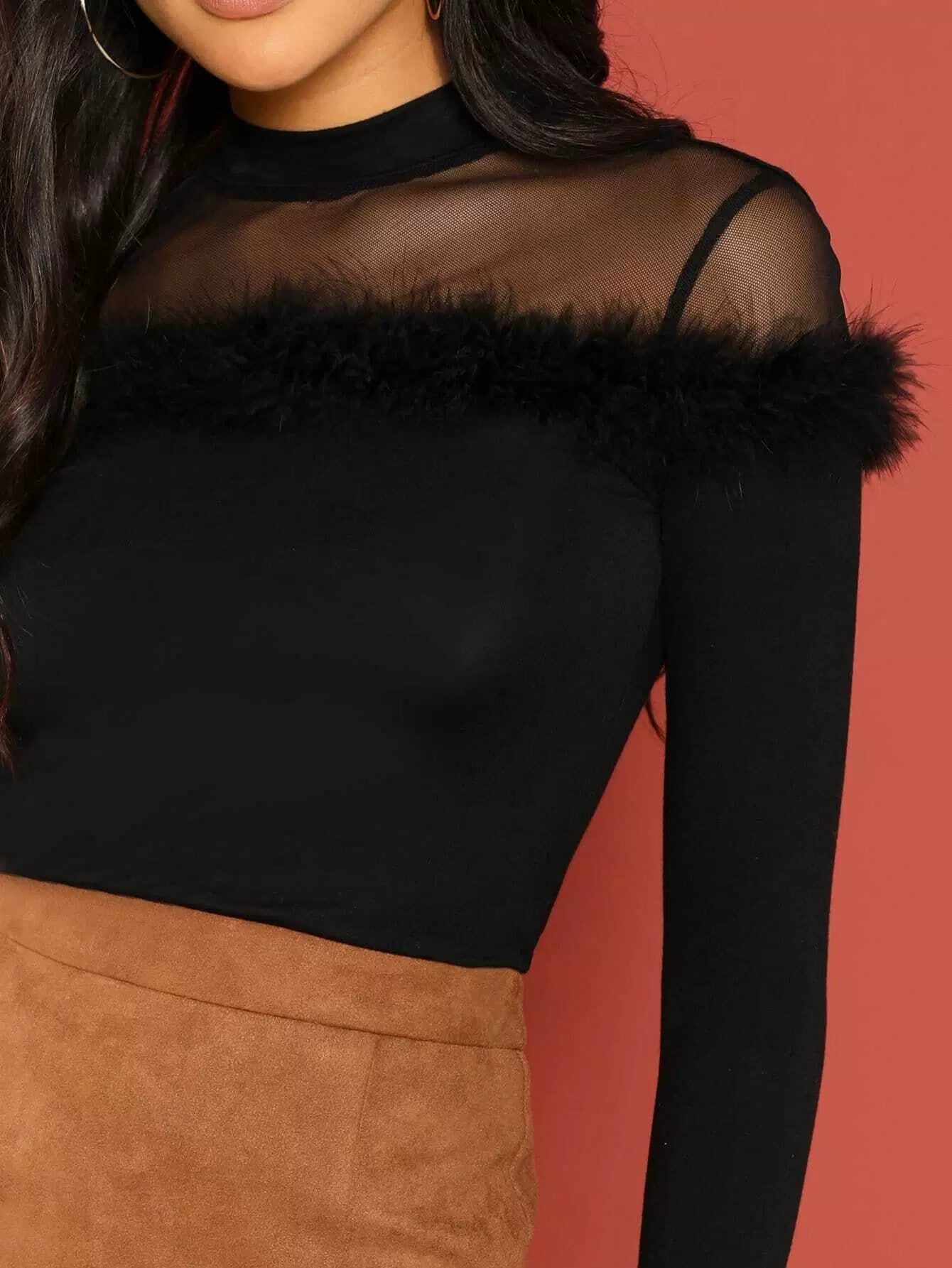 تي شيرت بحواف شبكية مزركشة بحواف ضبابية