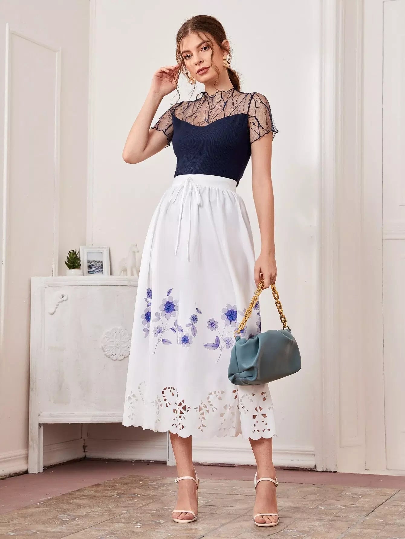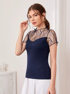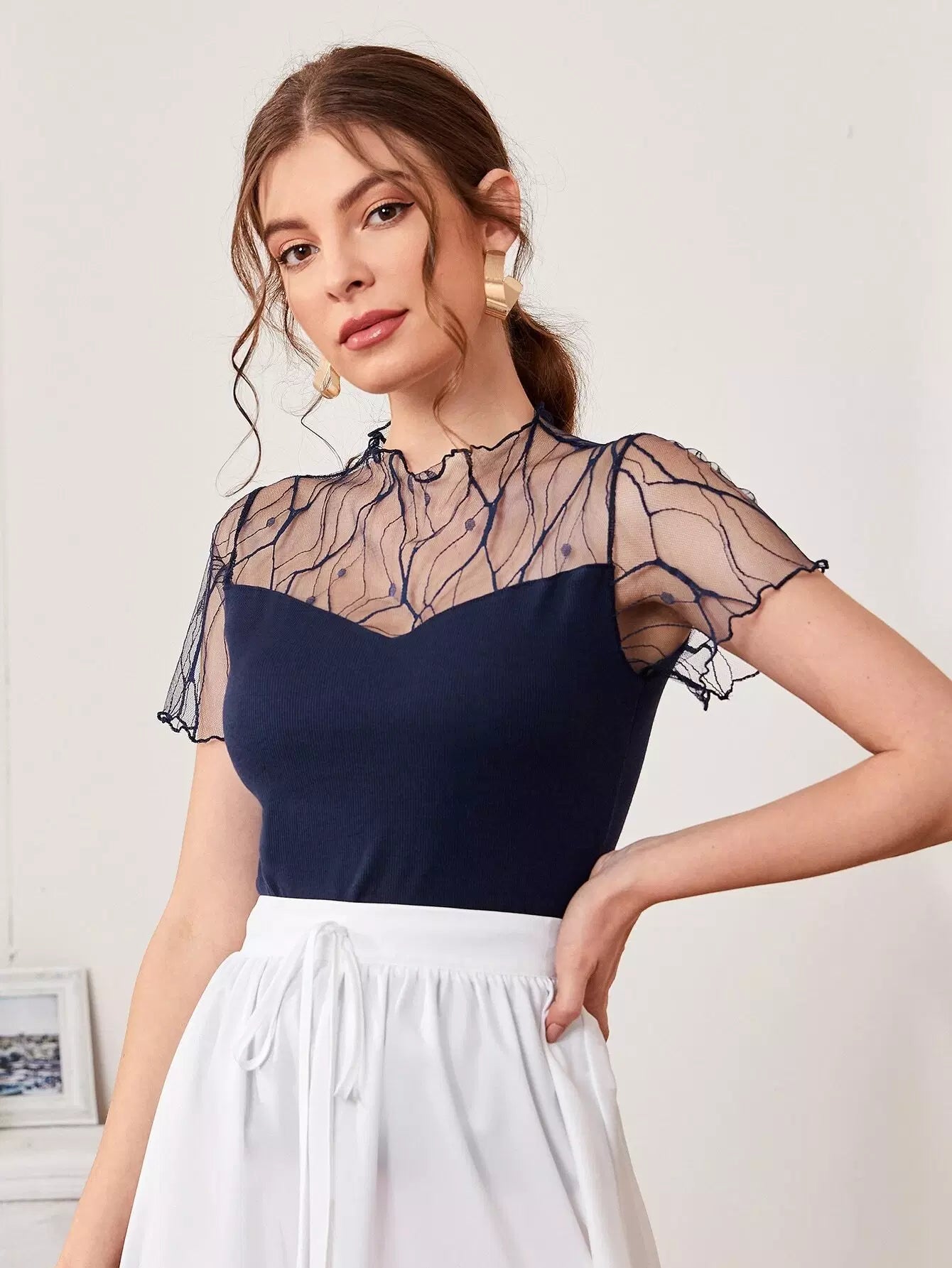 بلوزة محبوكة بنقوش شبكية على شكل ضلع محبوكة