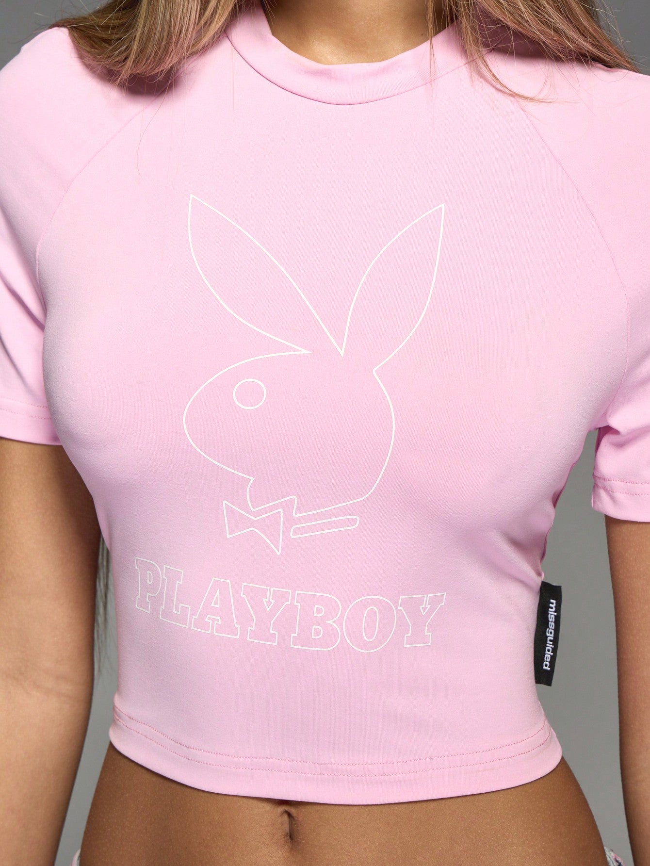 women Missguided x Playboy Baby T Shirt Fitted Crop Top Short Sleeve Casual Summer Streetwear Crew Neck Ladies Fashion Basic Tee