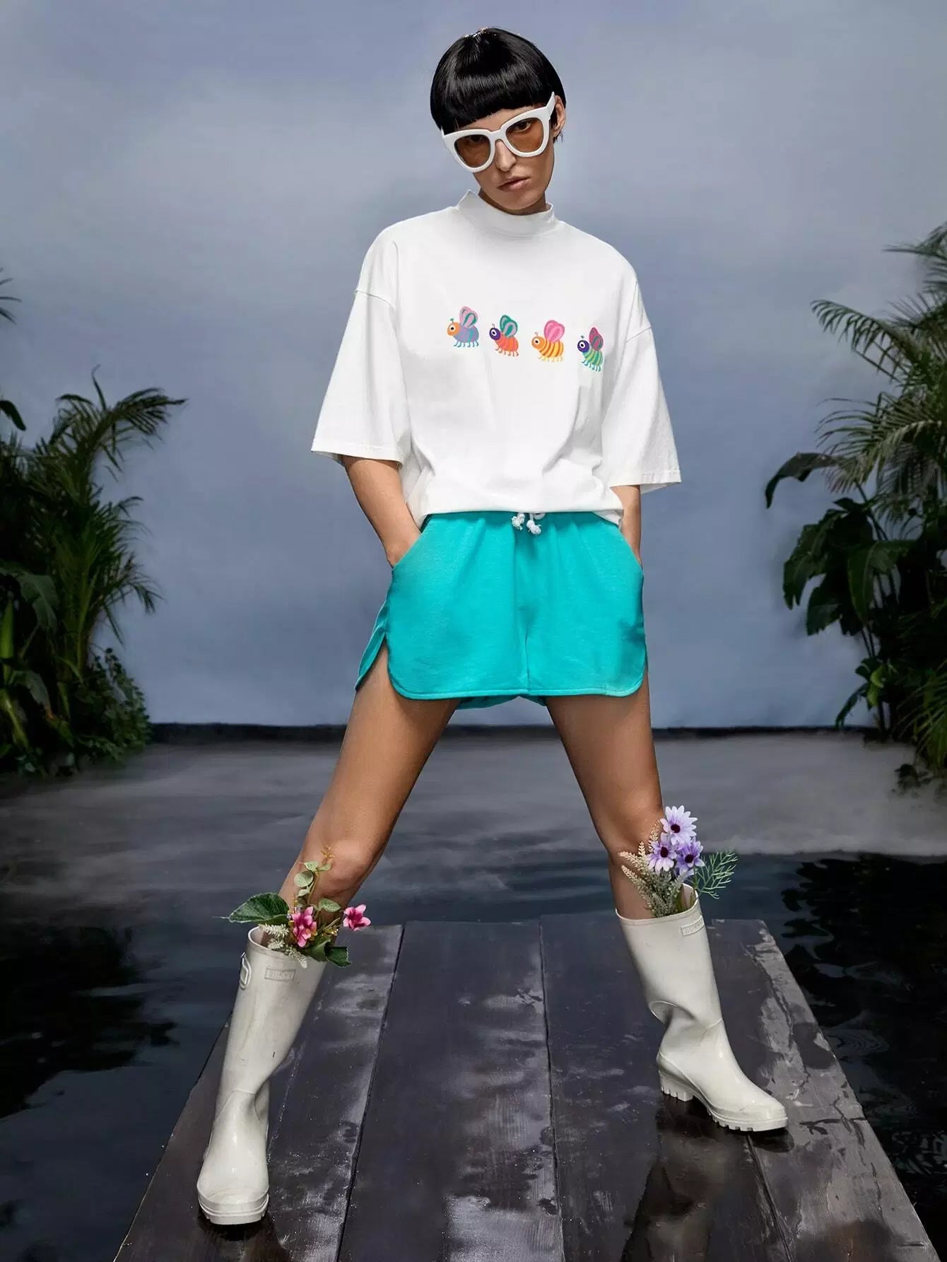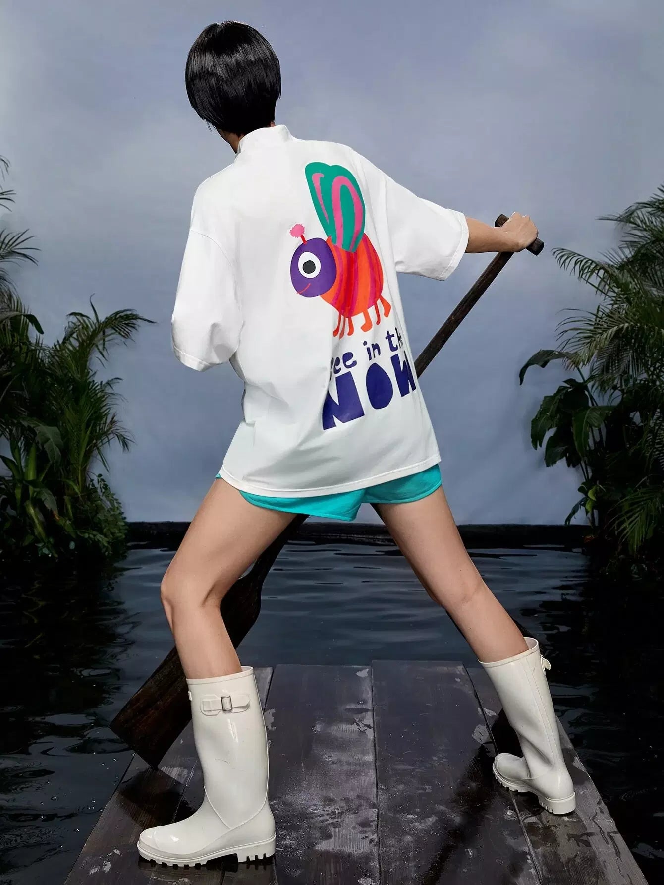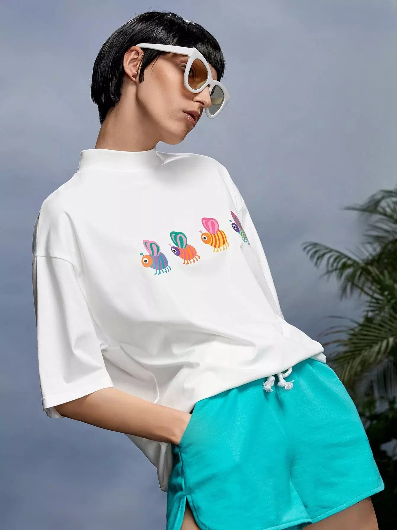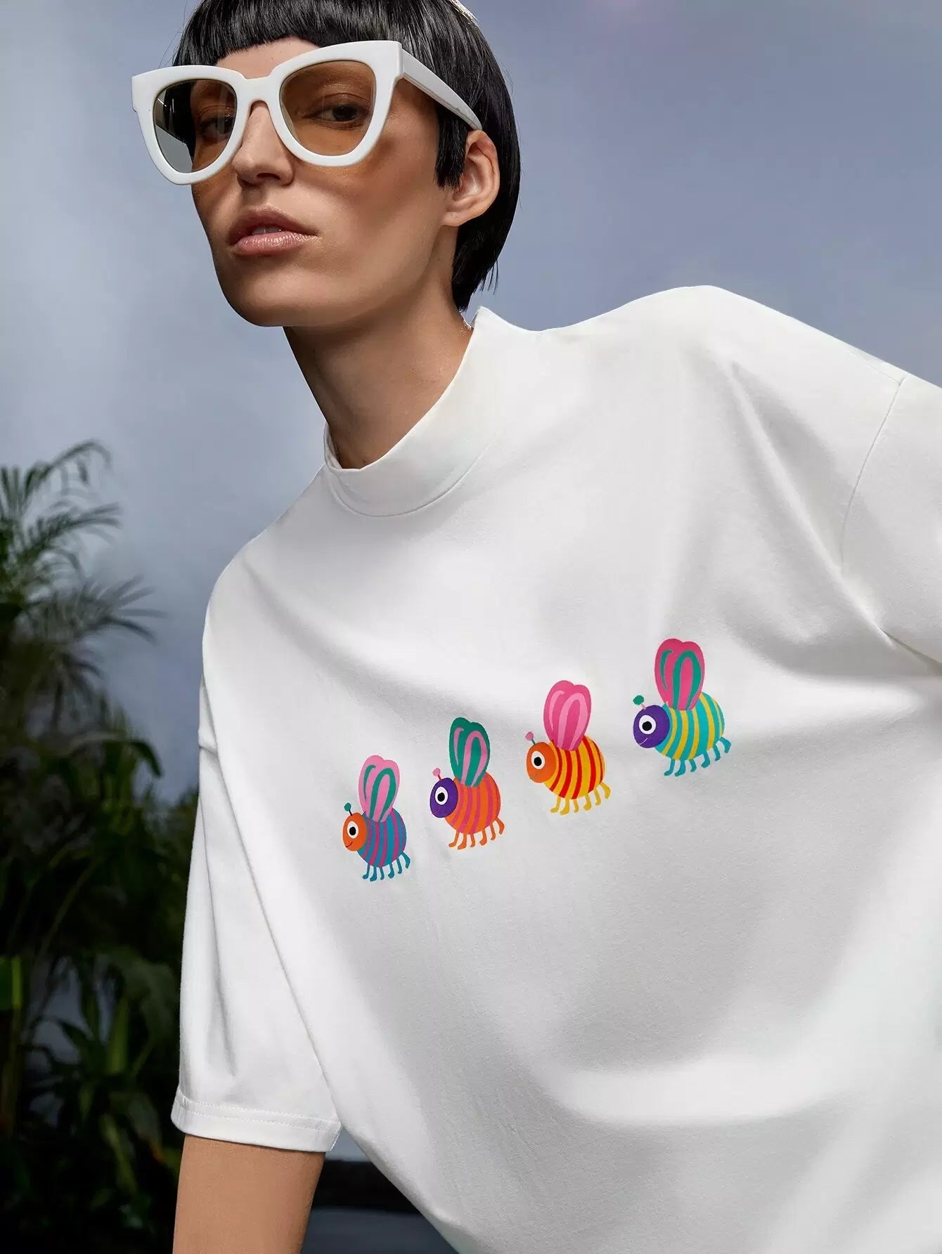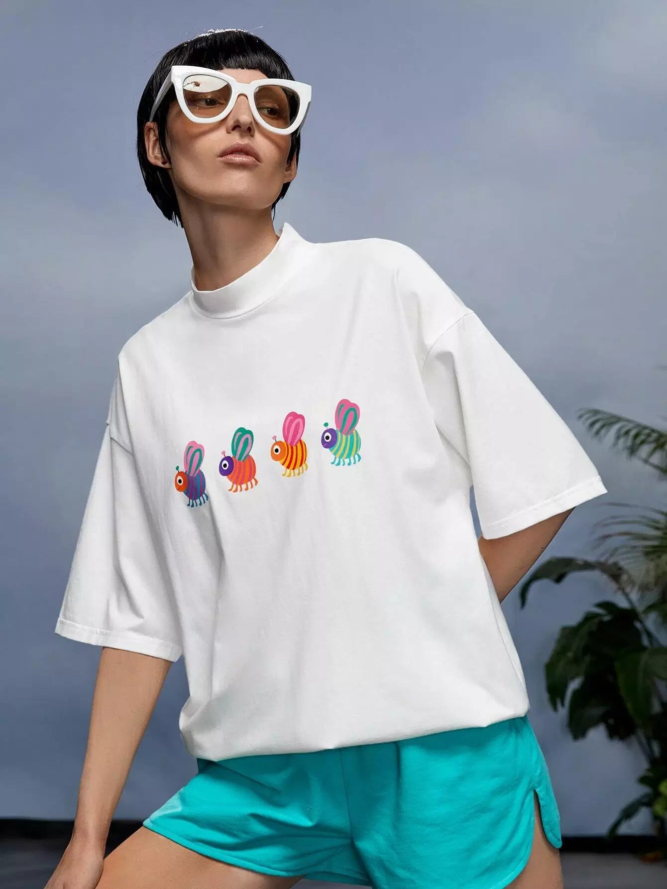 تي شيرت برقبة وهمية برسومات كرتونية