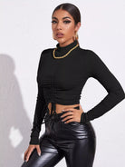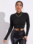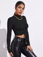 للنساء - تي شيرت قصير برباط أمامي برقبة وهمية