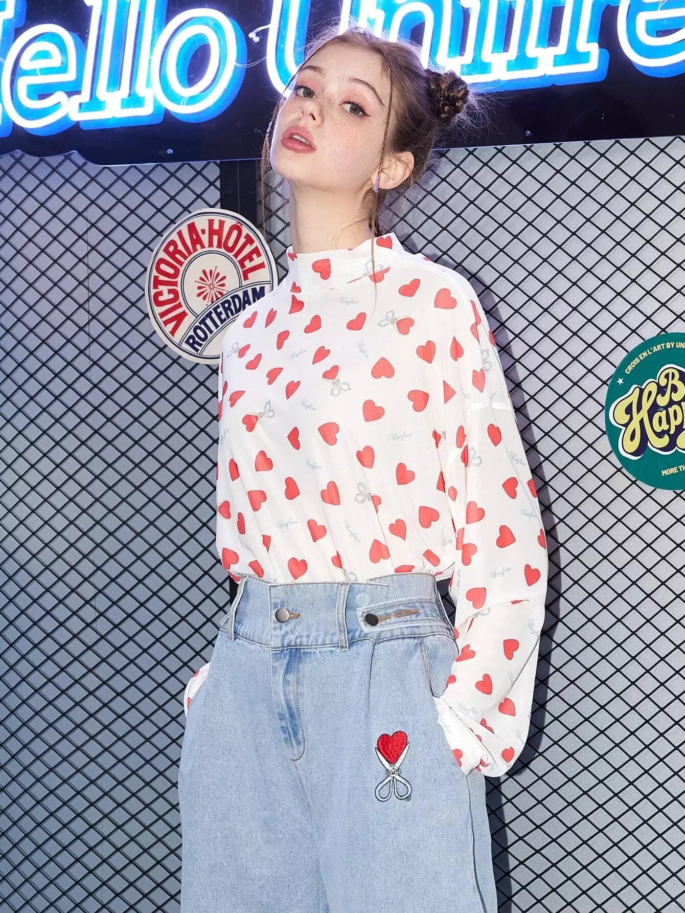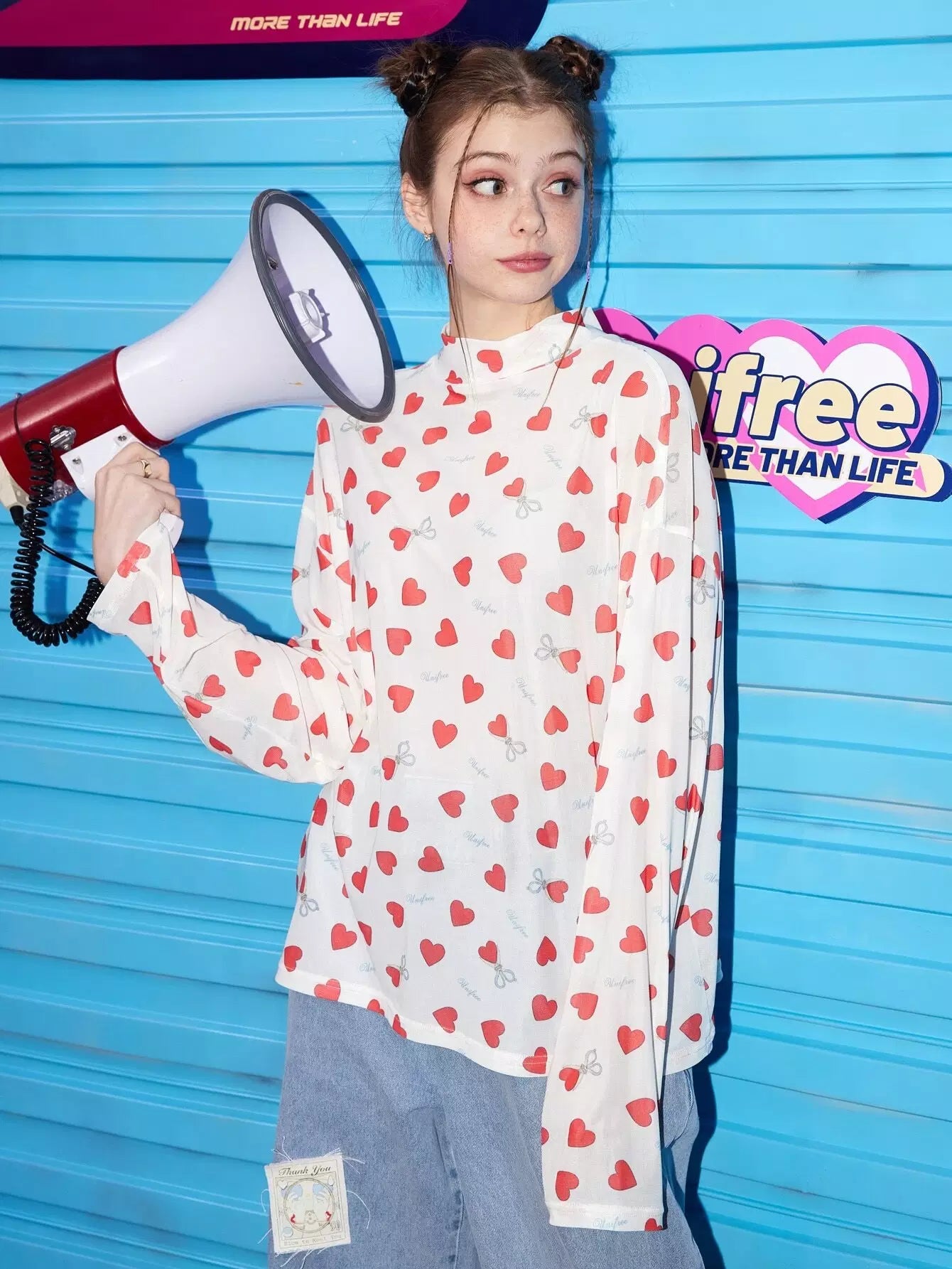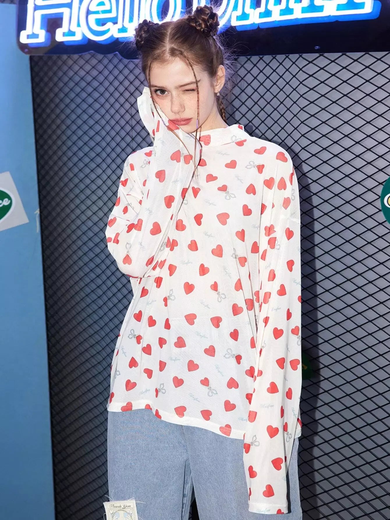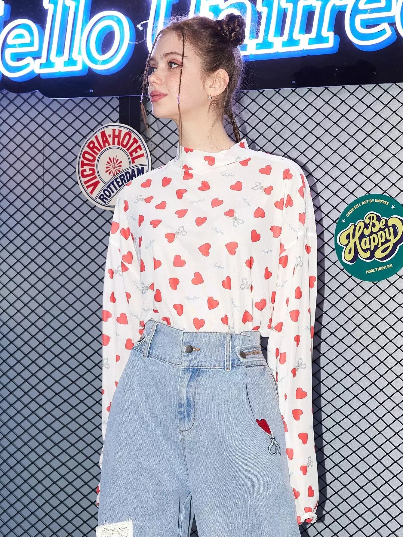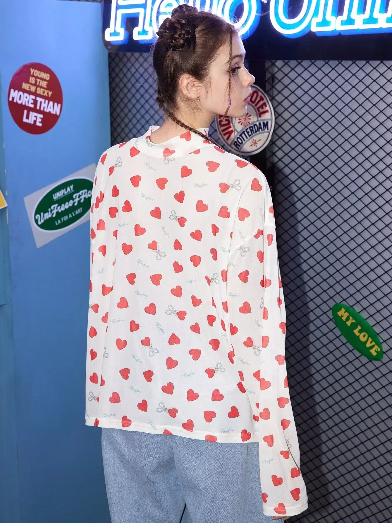 تي شيرت برقبة على شكل قلب مطبوع عليه بالكامل