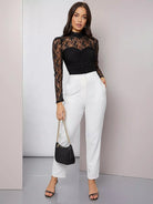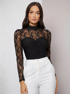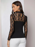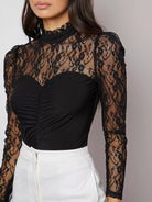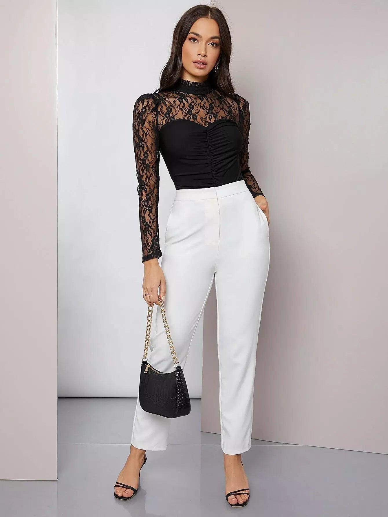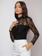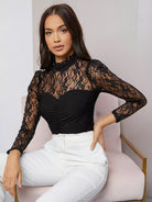 بلوزة بياقة دانتيل بياقة وأكمام دانتيل مكشكشة برقبة وهمية