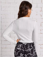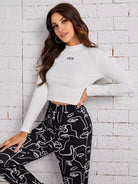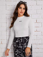توب قصير برقبة على شكل حرف جرافيك على شكل حرف