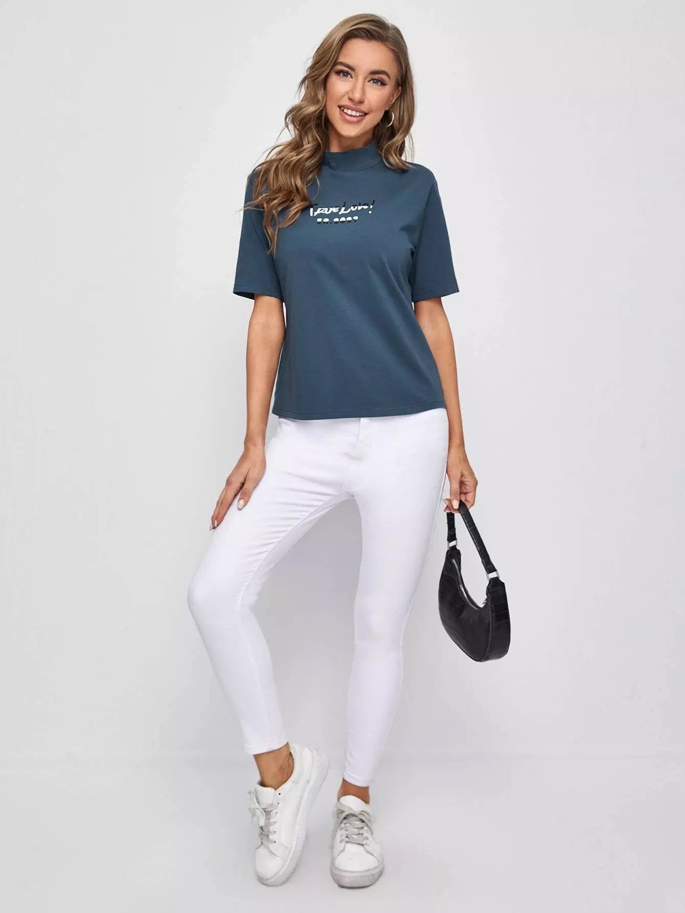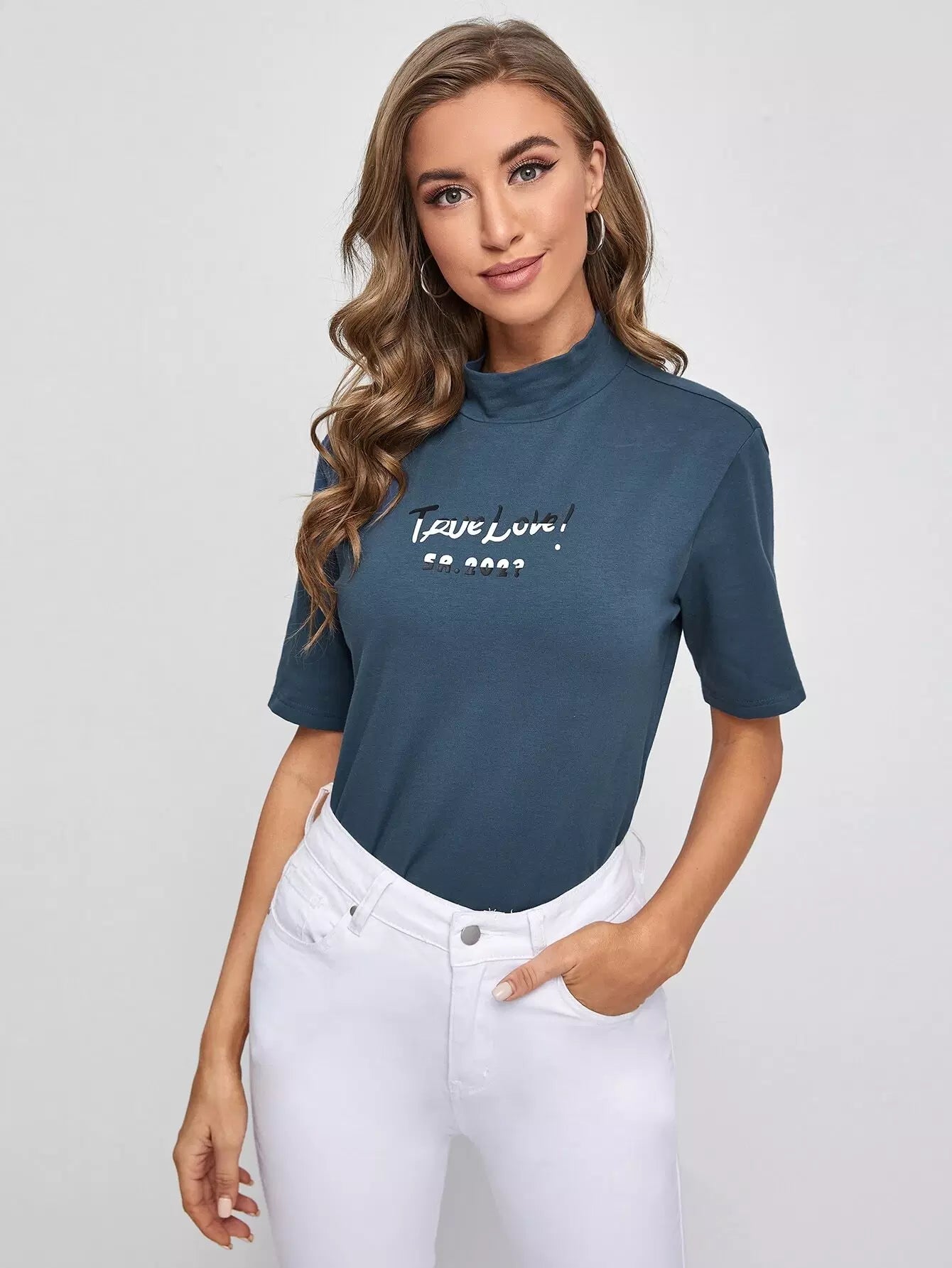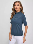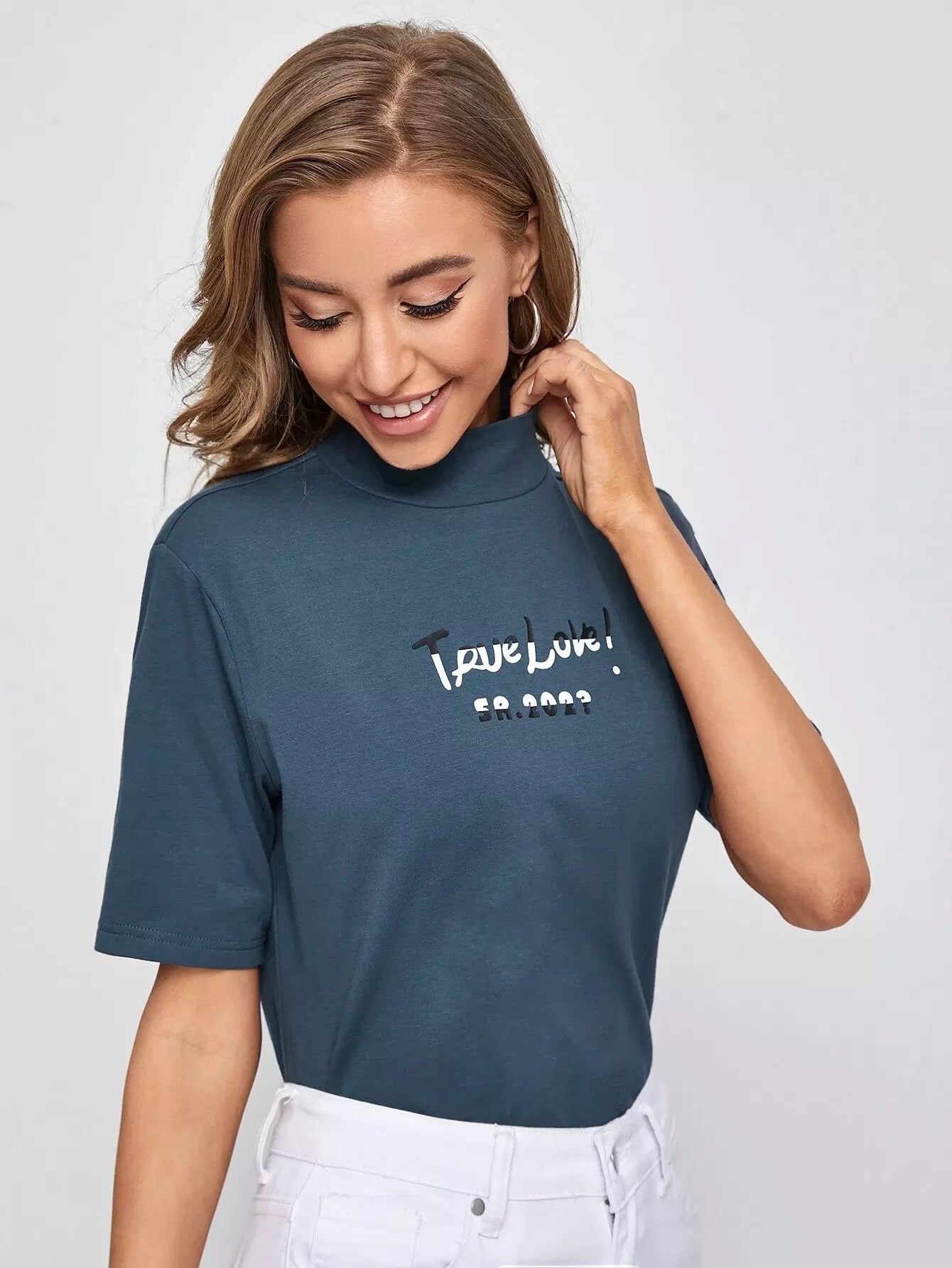 تي شيرت برقبة على شكل حرف جرافيك