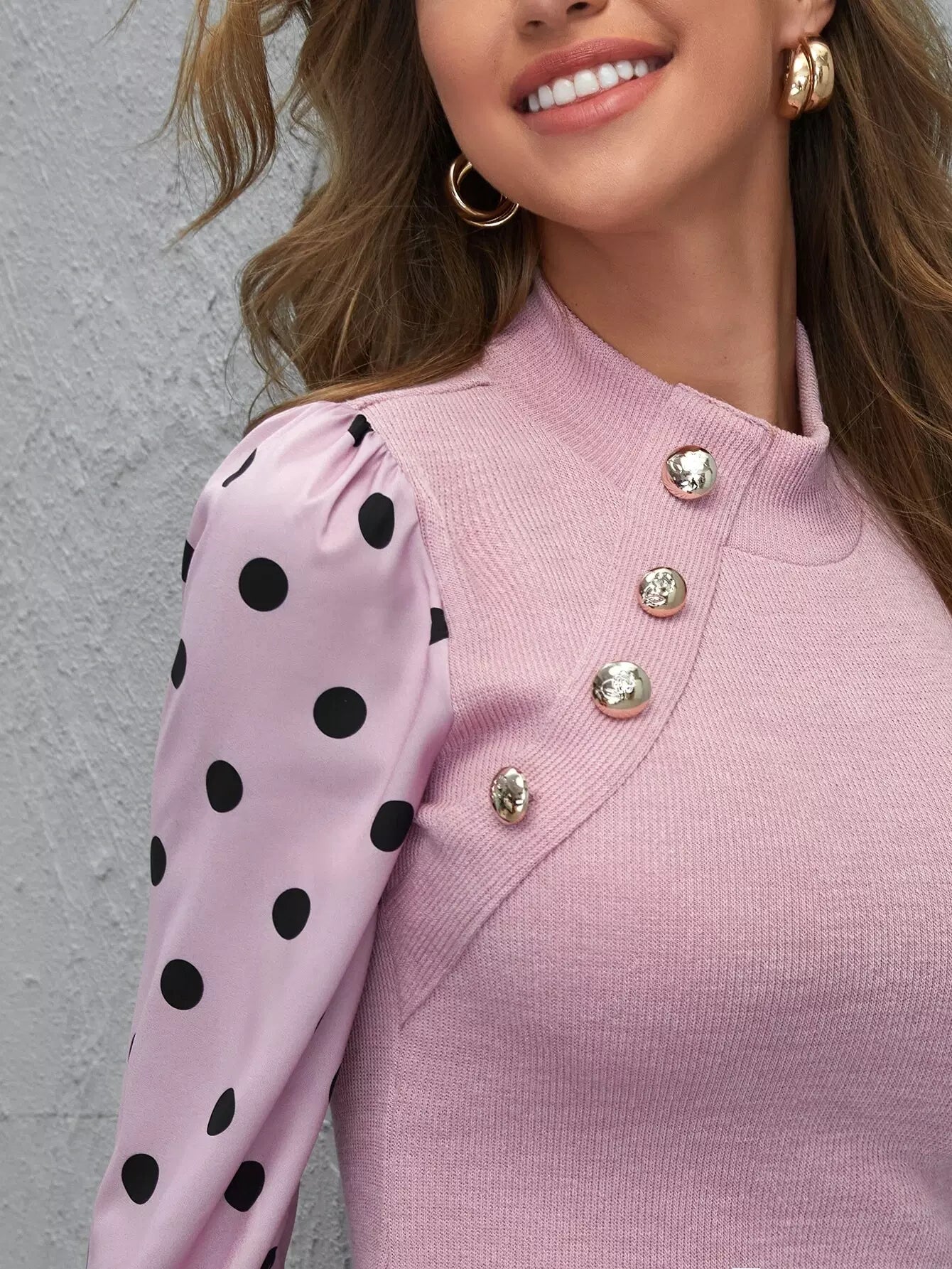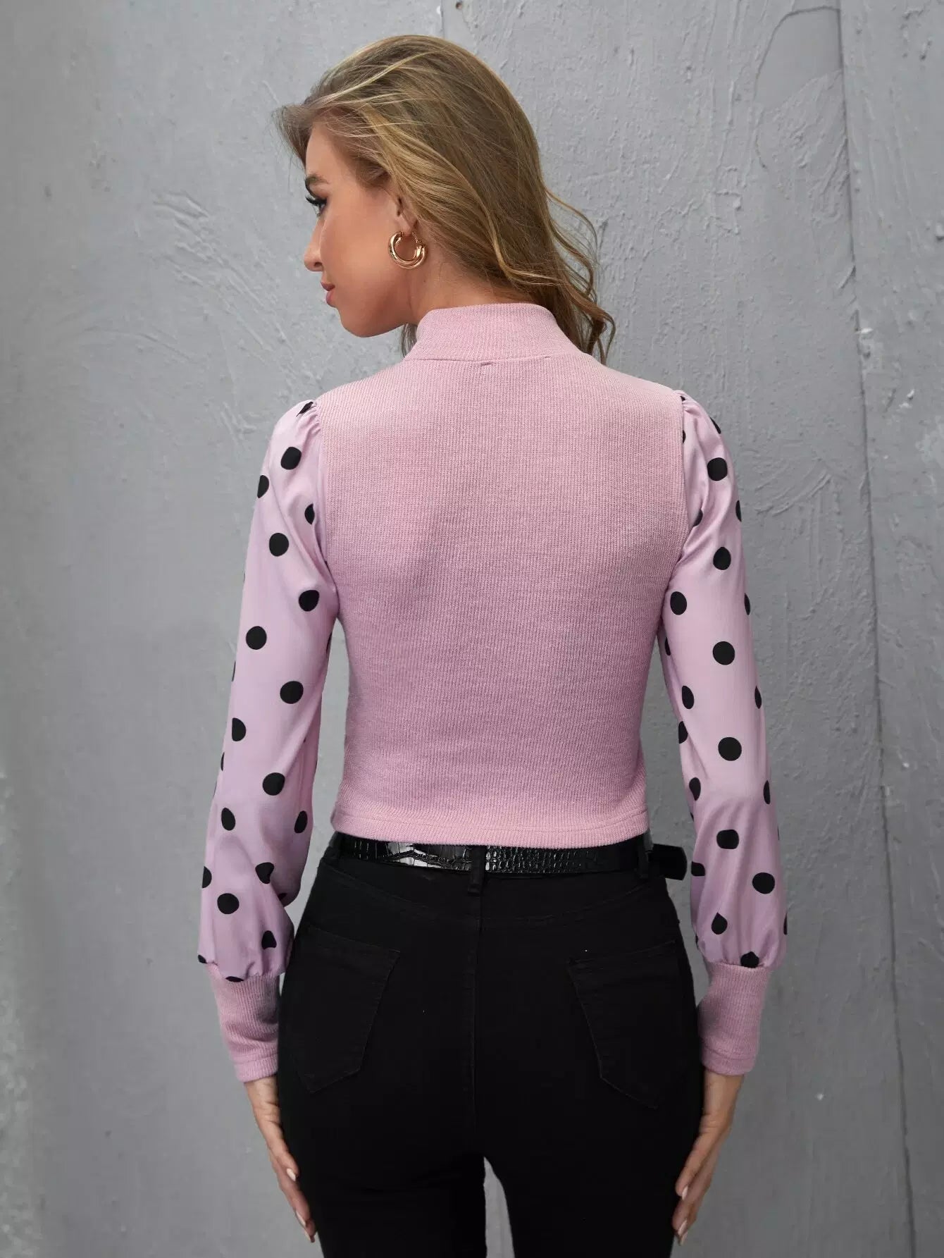 بلوزة قصيرة بأكمام منقطة برقبة وهمية بياقة منقطة