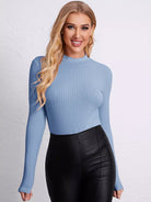 تي شيرت برقبة على شكل ضلع محبوك برقبة جورب