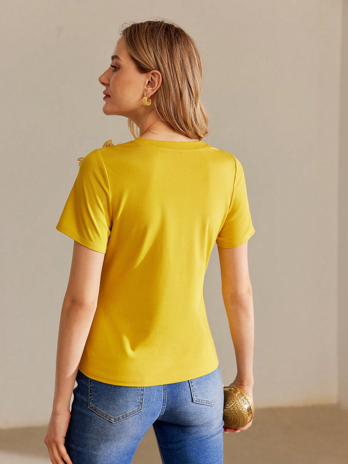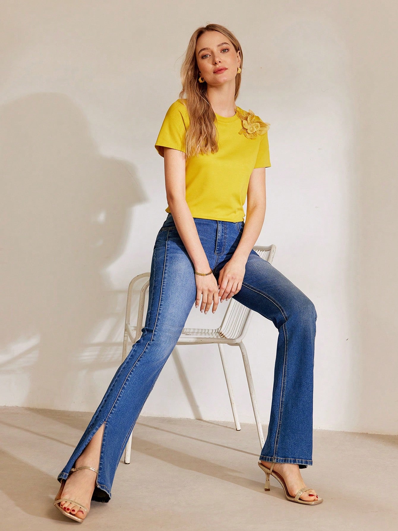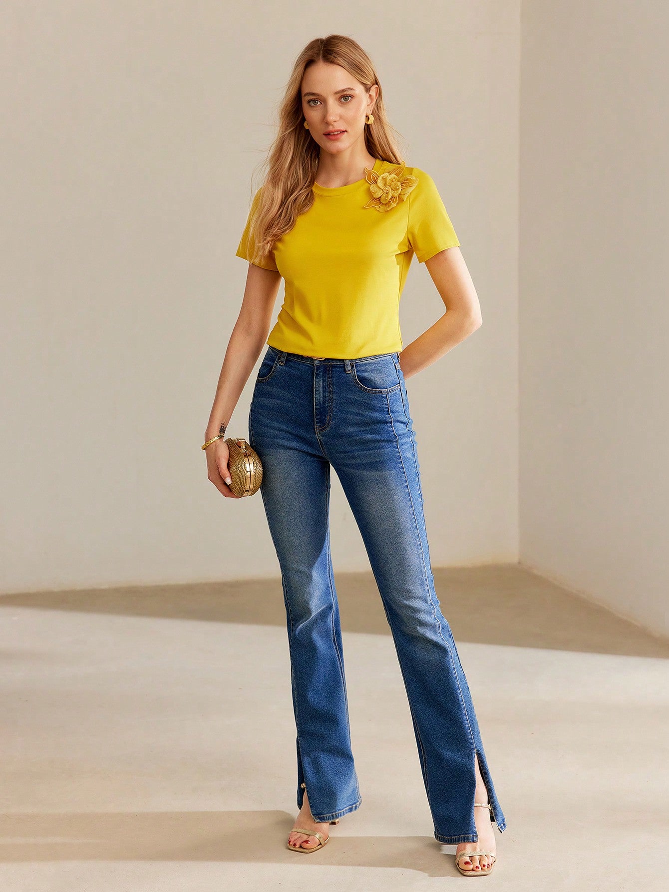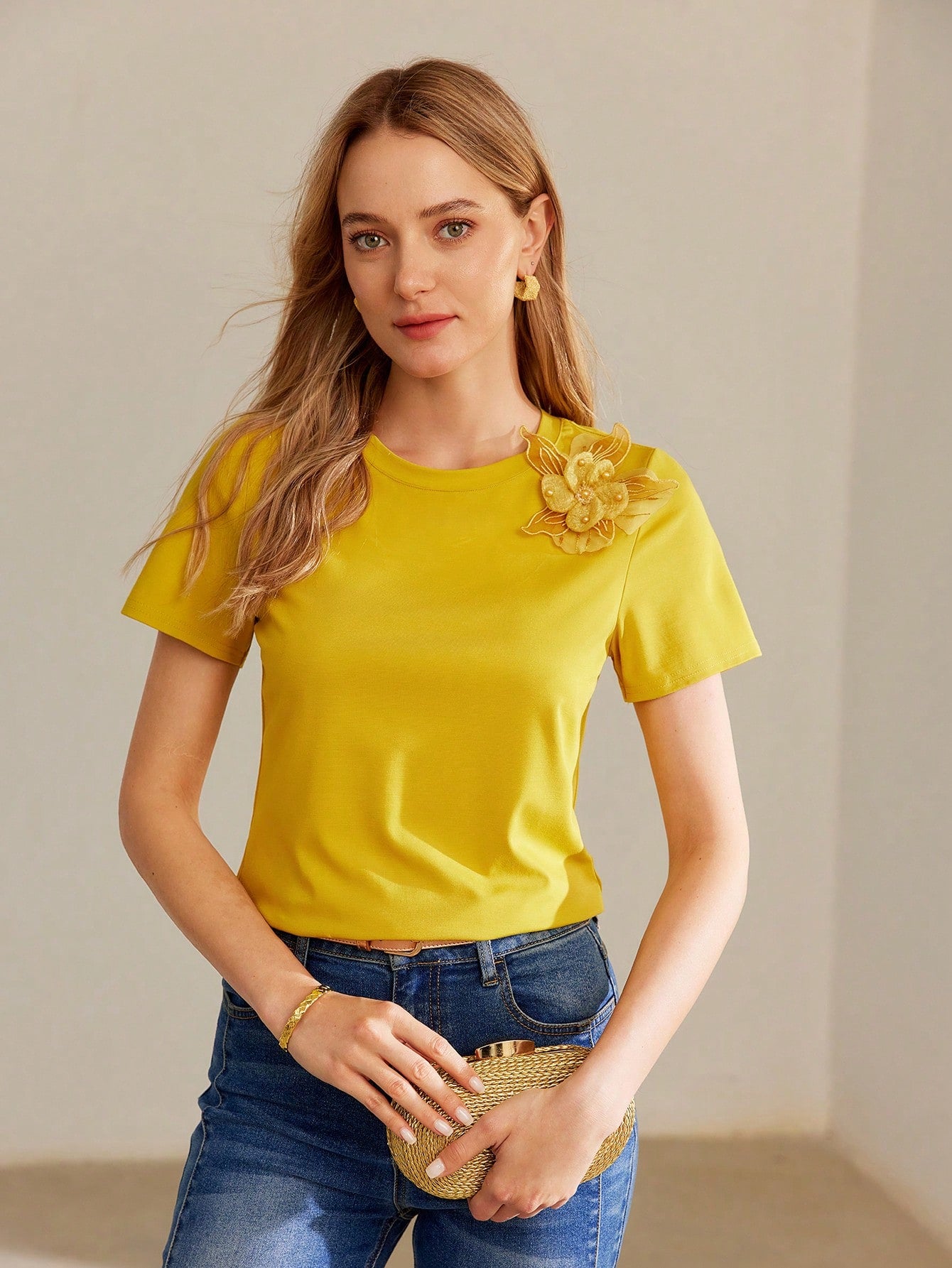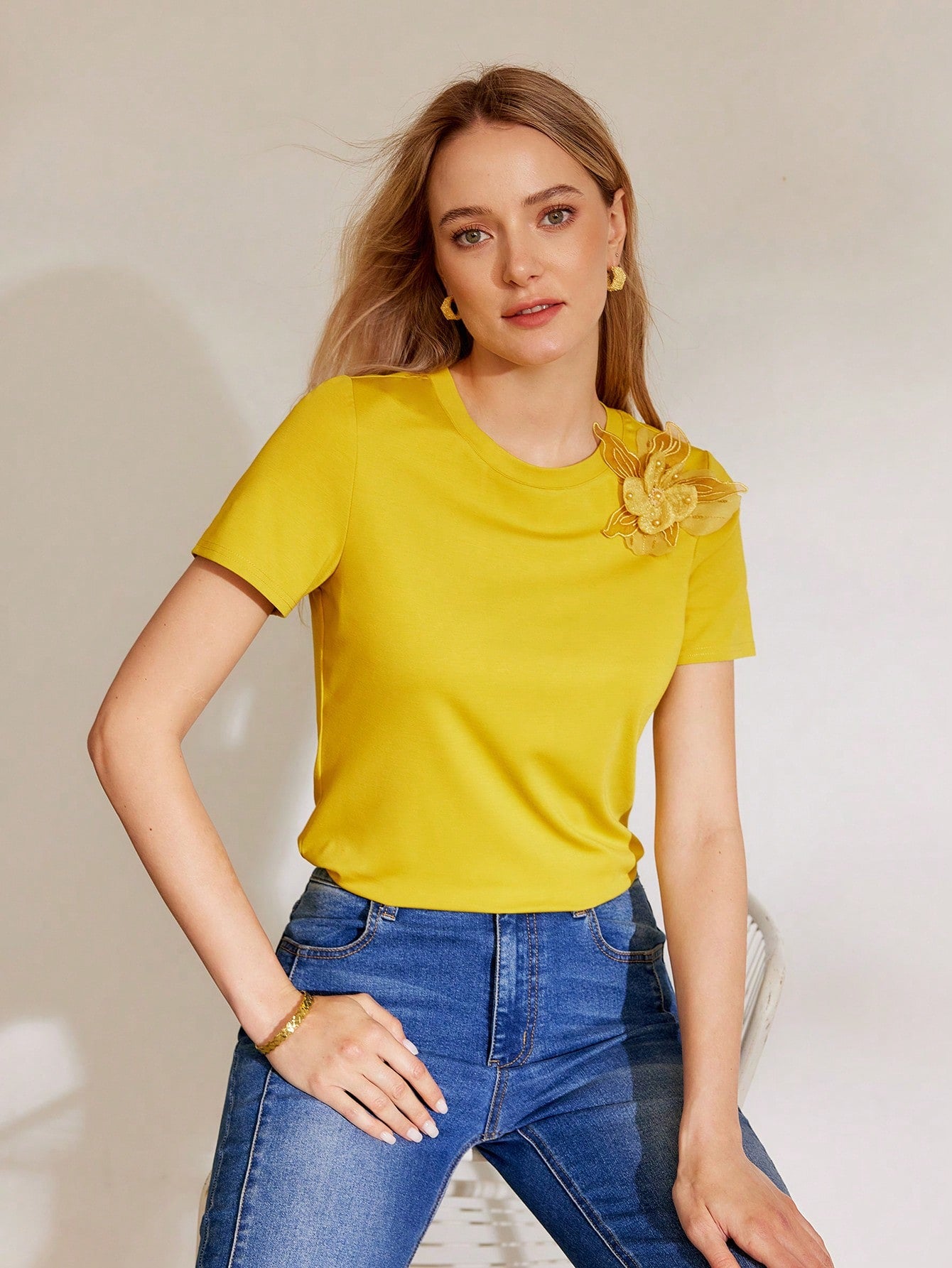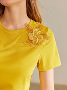 MOTF PREMIUM FLORAL PATCH FITTED T-SHIRT,SUMMER OUTFITS
