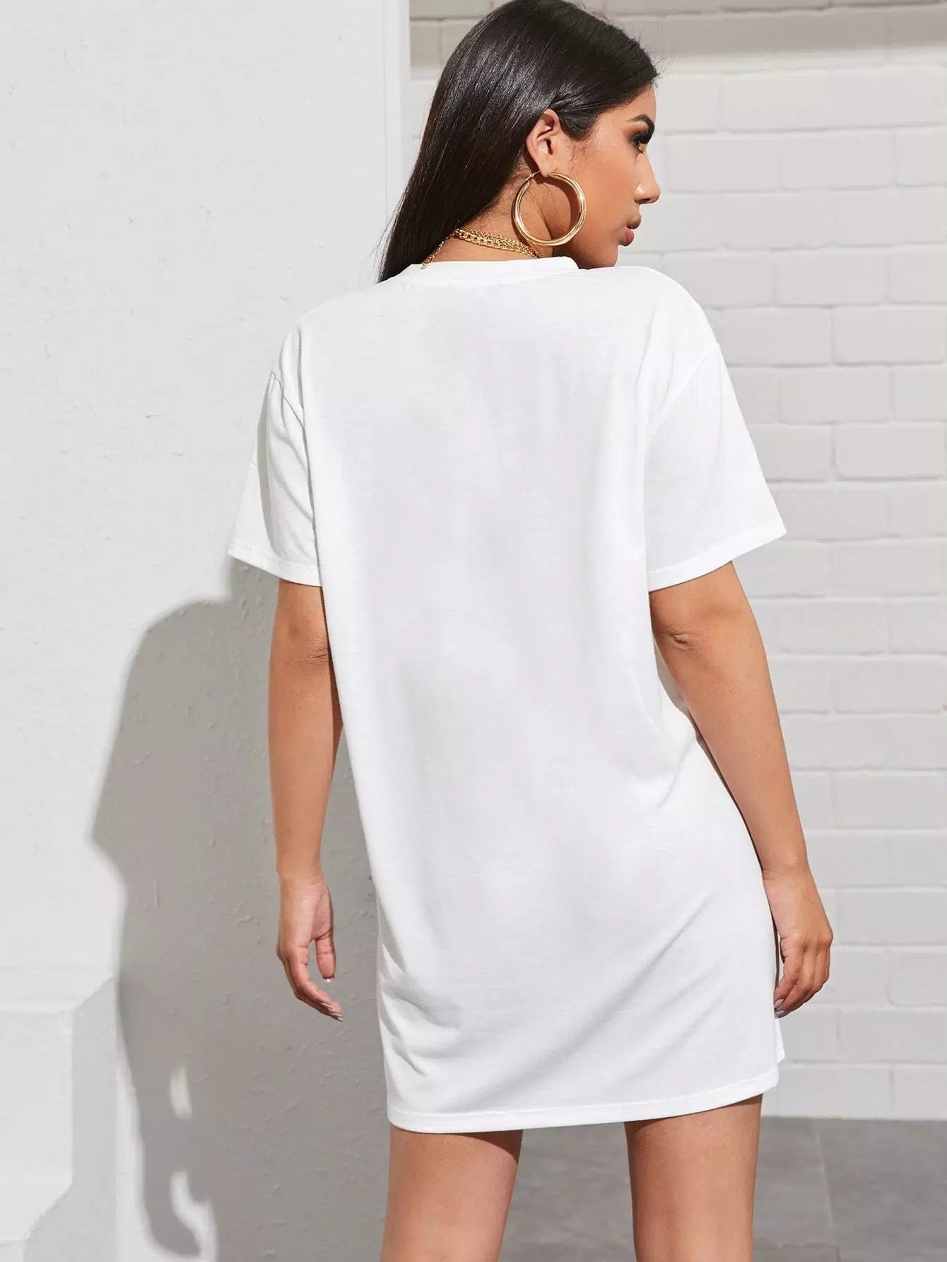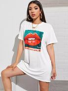 للنساء - تي شيرت طويل بطباعة الفم