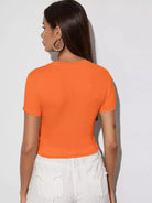 توب قصير قصير برسومات حروف برتقالية نيون
