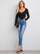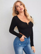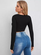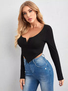 تي شيرت قصير برقبة غير متناسقة بحافة غير متناظرة