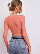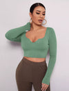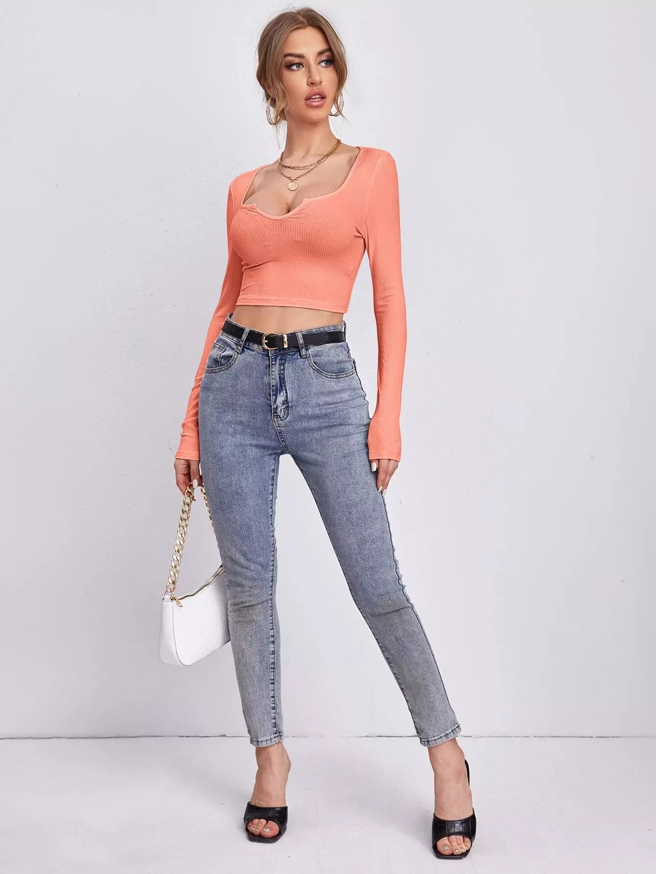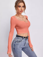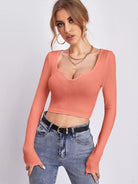 تي شيرت قصير برقبة ضلع محبوك بفتحة رقبة متماسكة