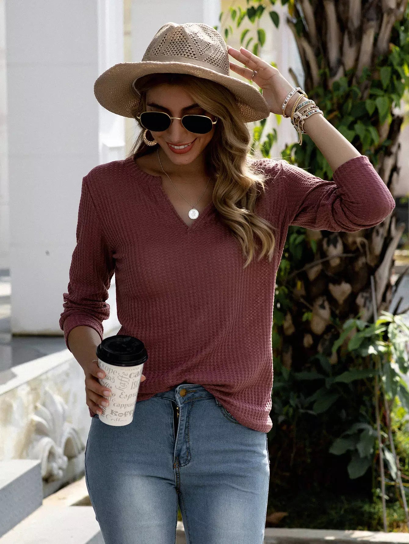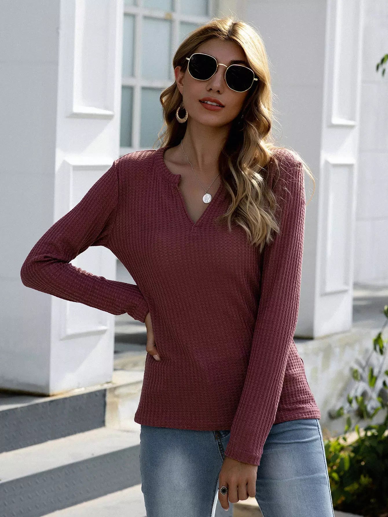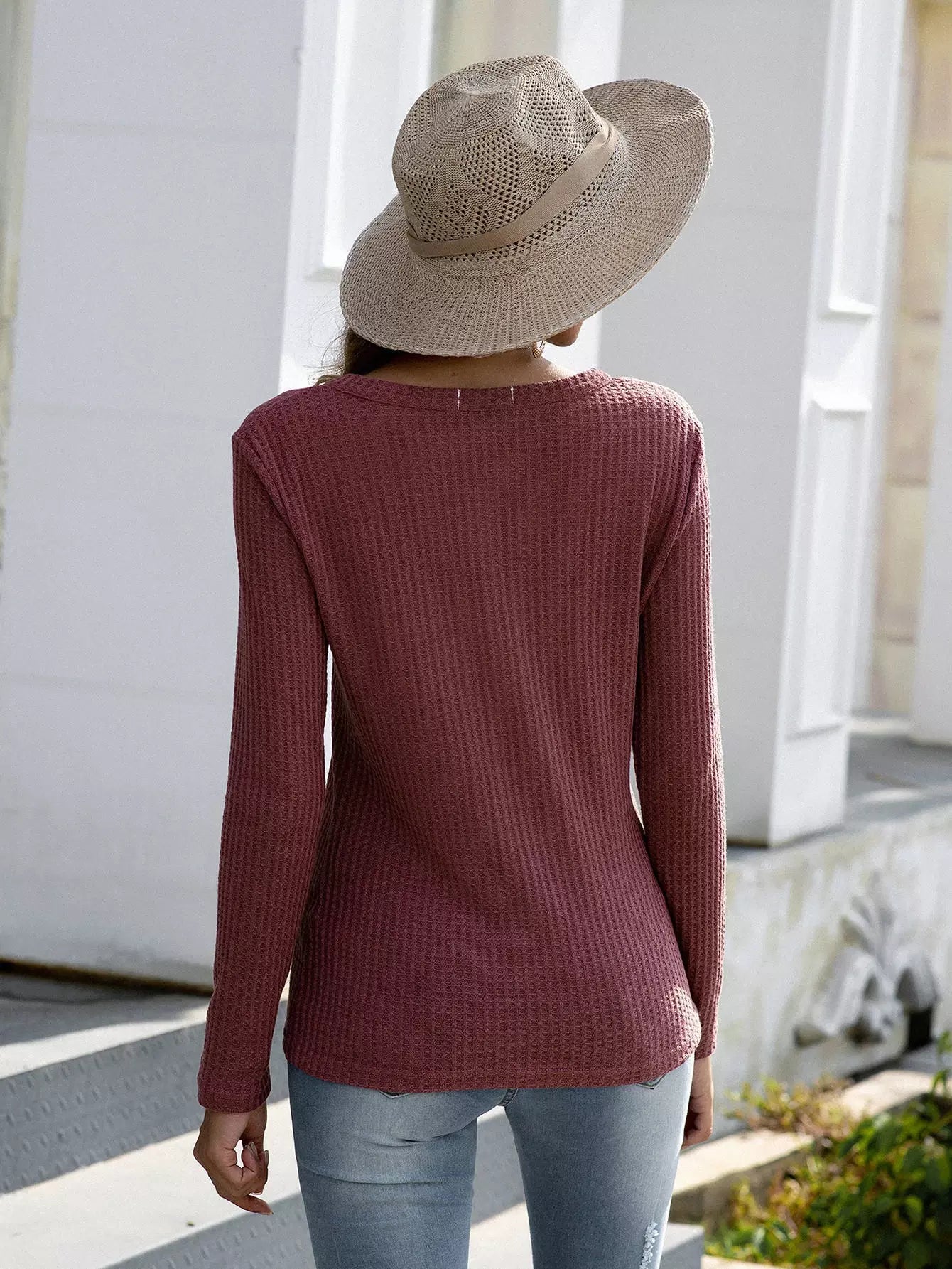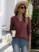 تي شيرت برقبة محبوكة بفتحة رقبة محبوكة
