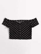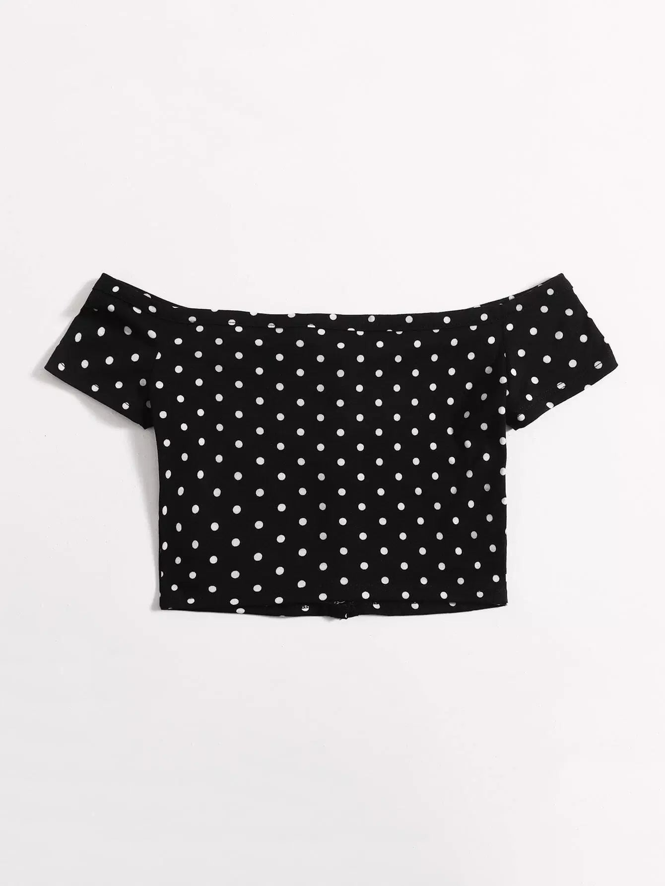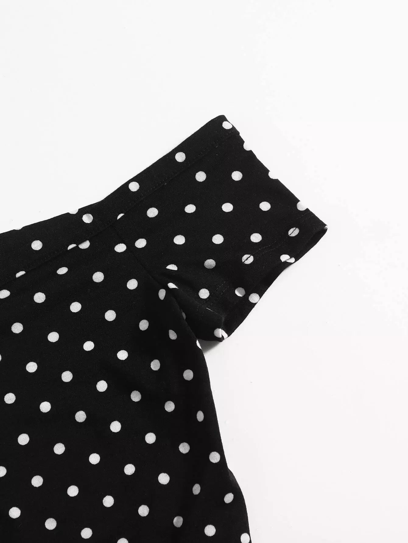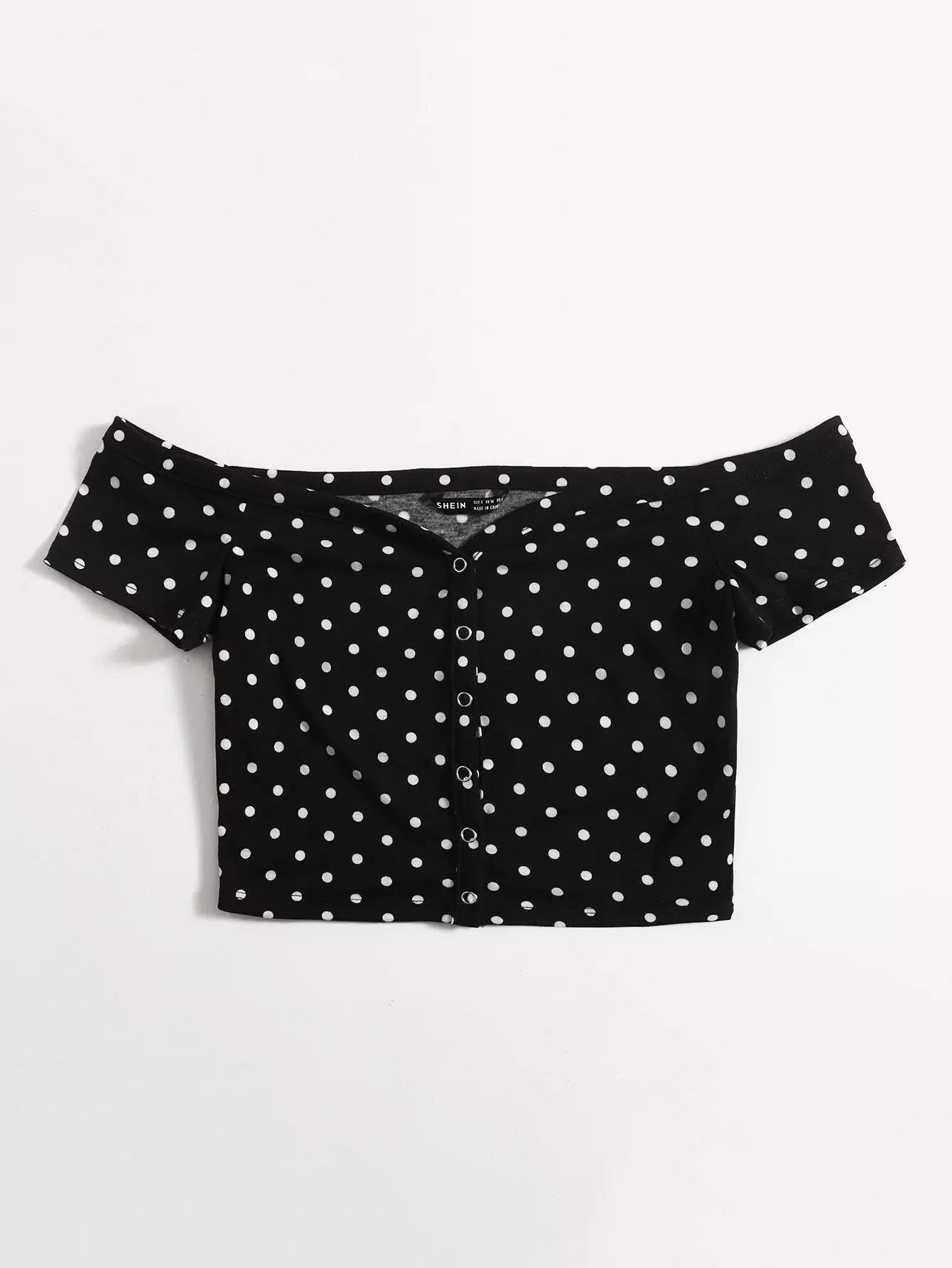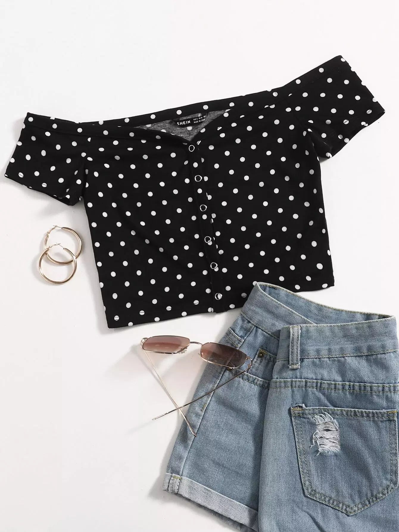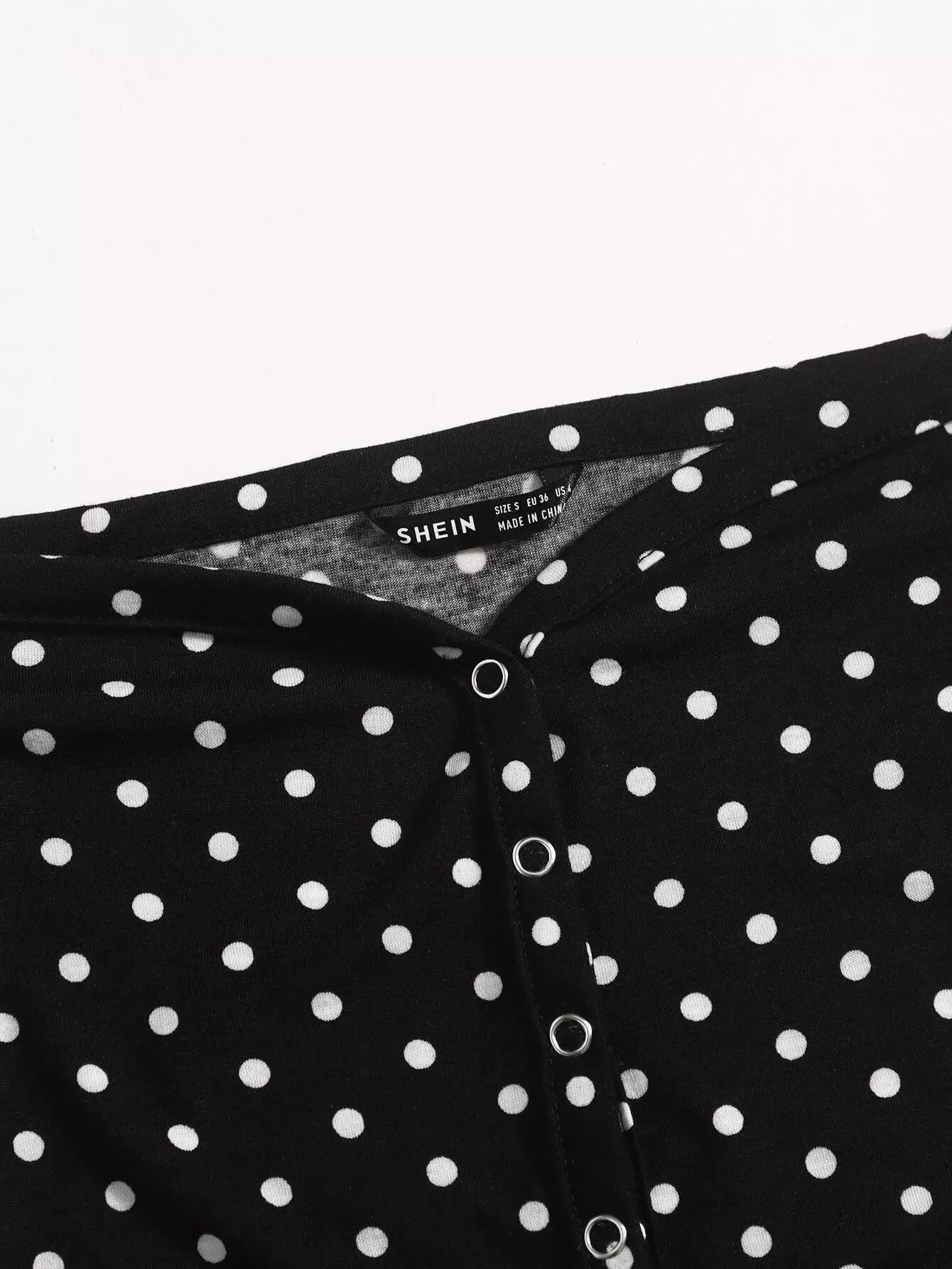تي شيرت بأزرار أمامية بأزرار منقّطة من دون أكتاف