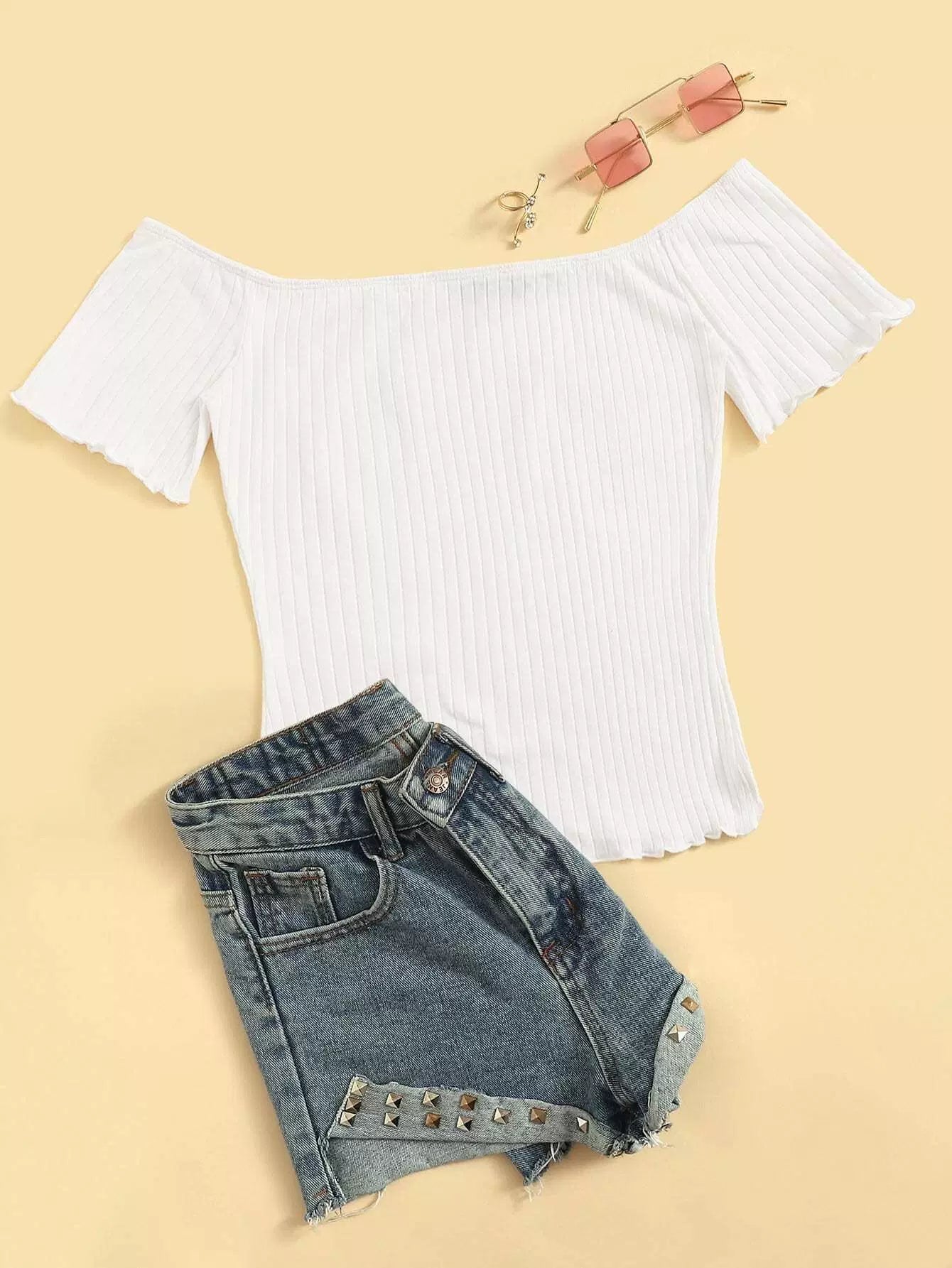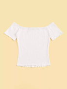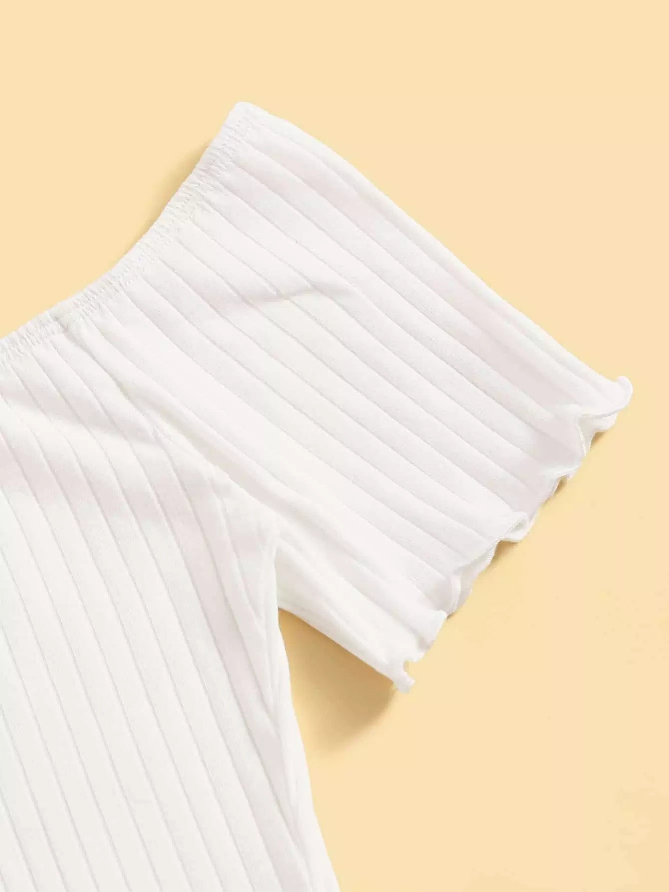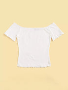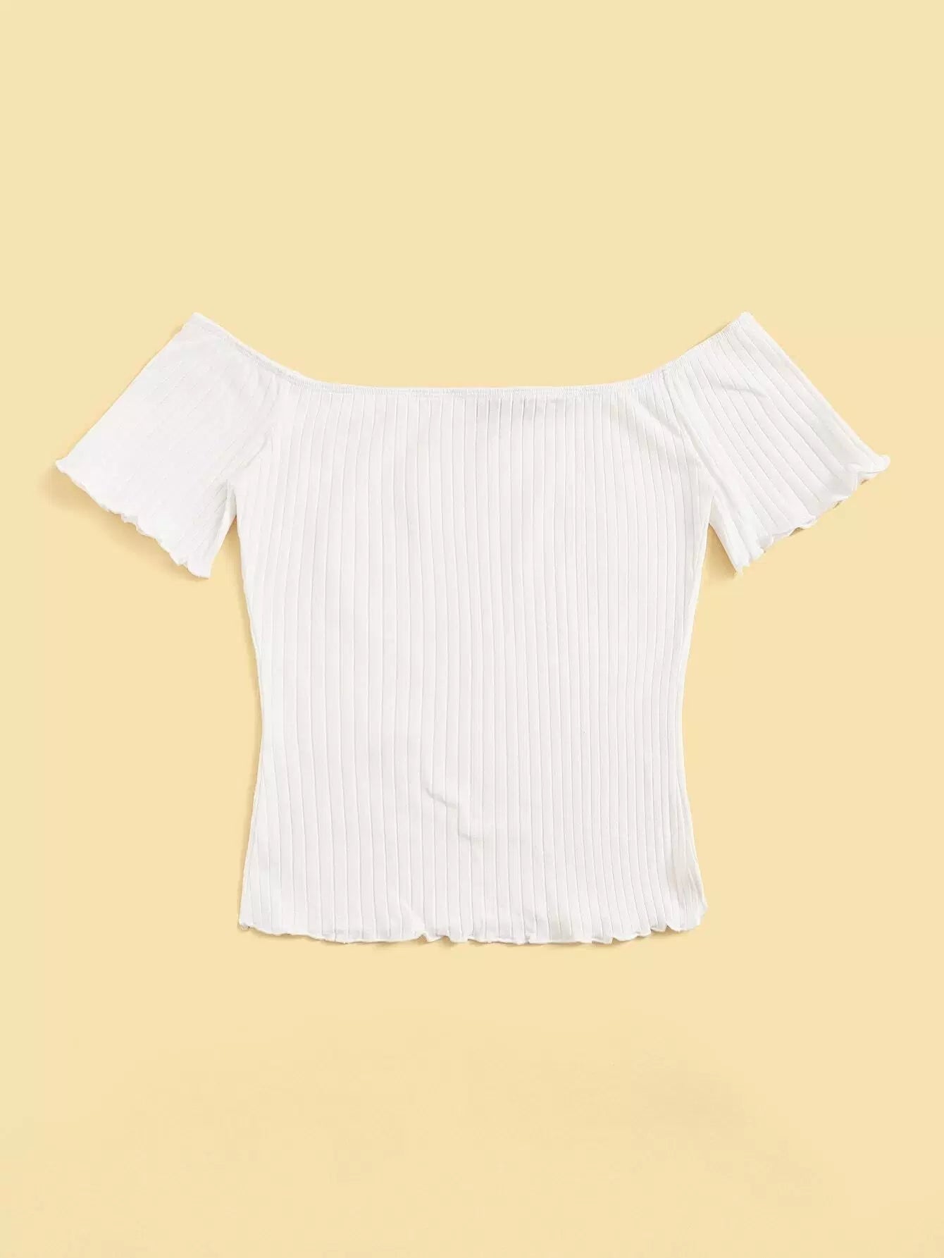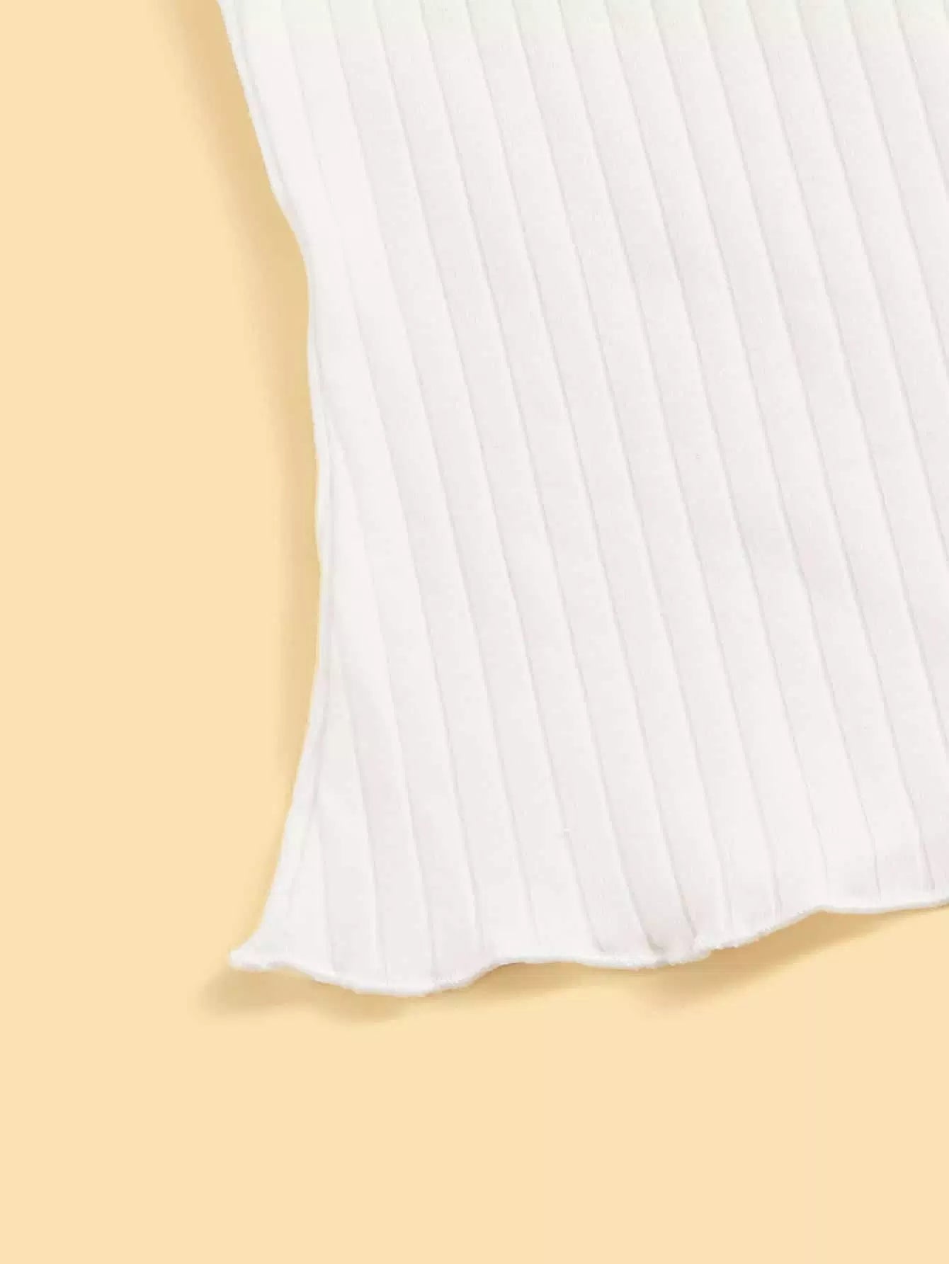تي شيرت بحواف من دون أكتاف بحواف من الخس محبوكة على شكل ضلع