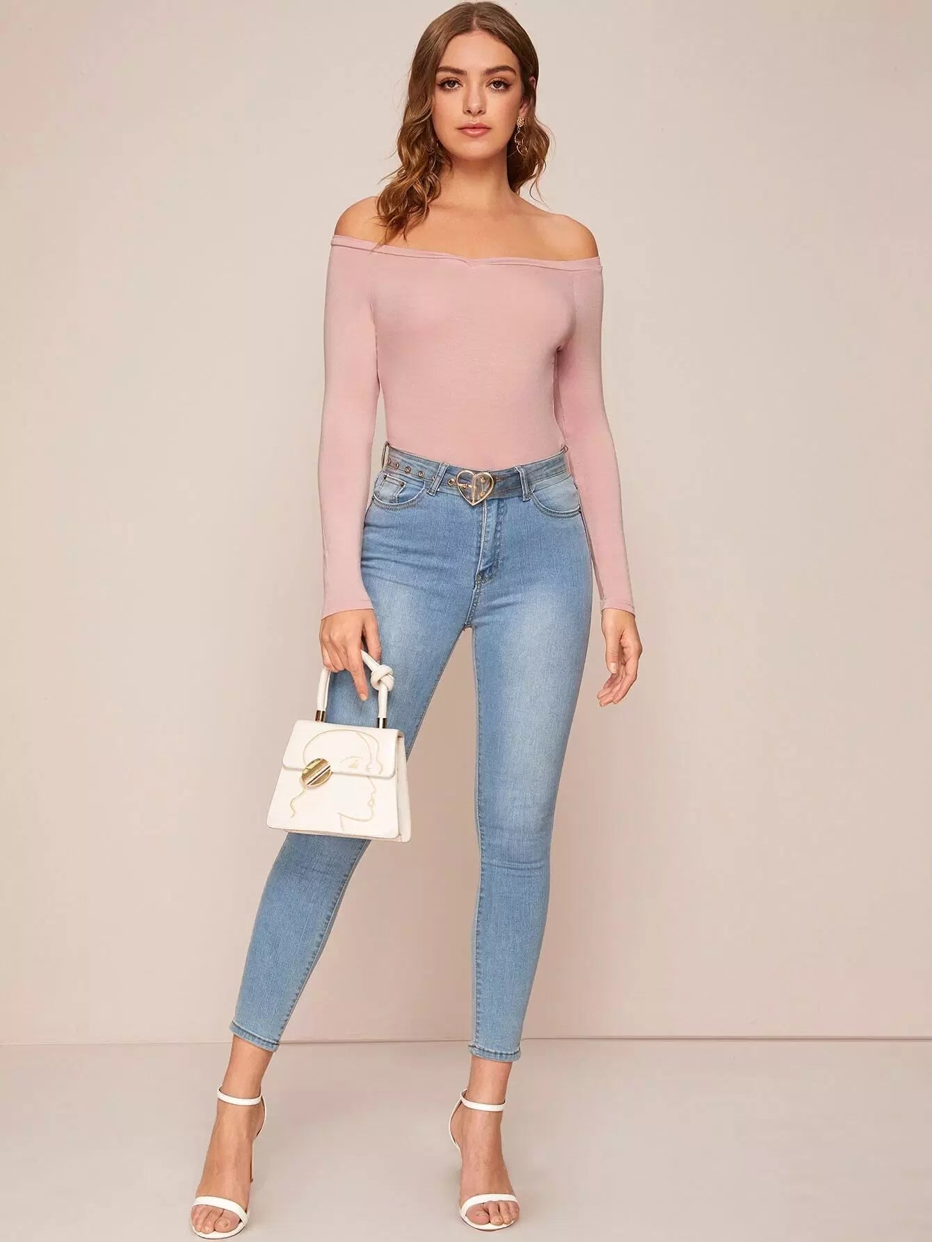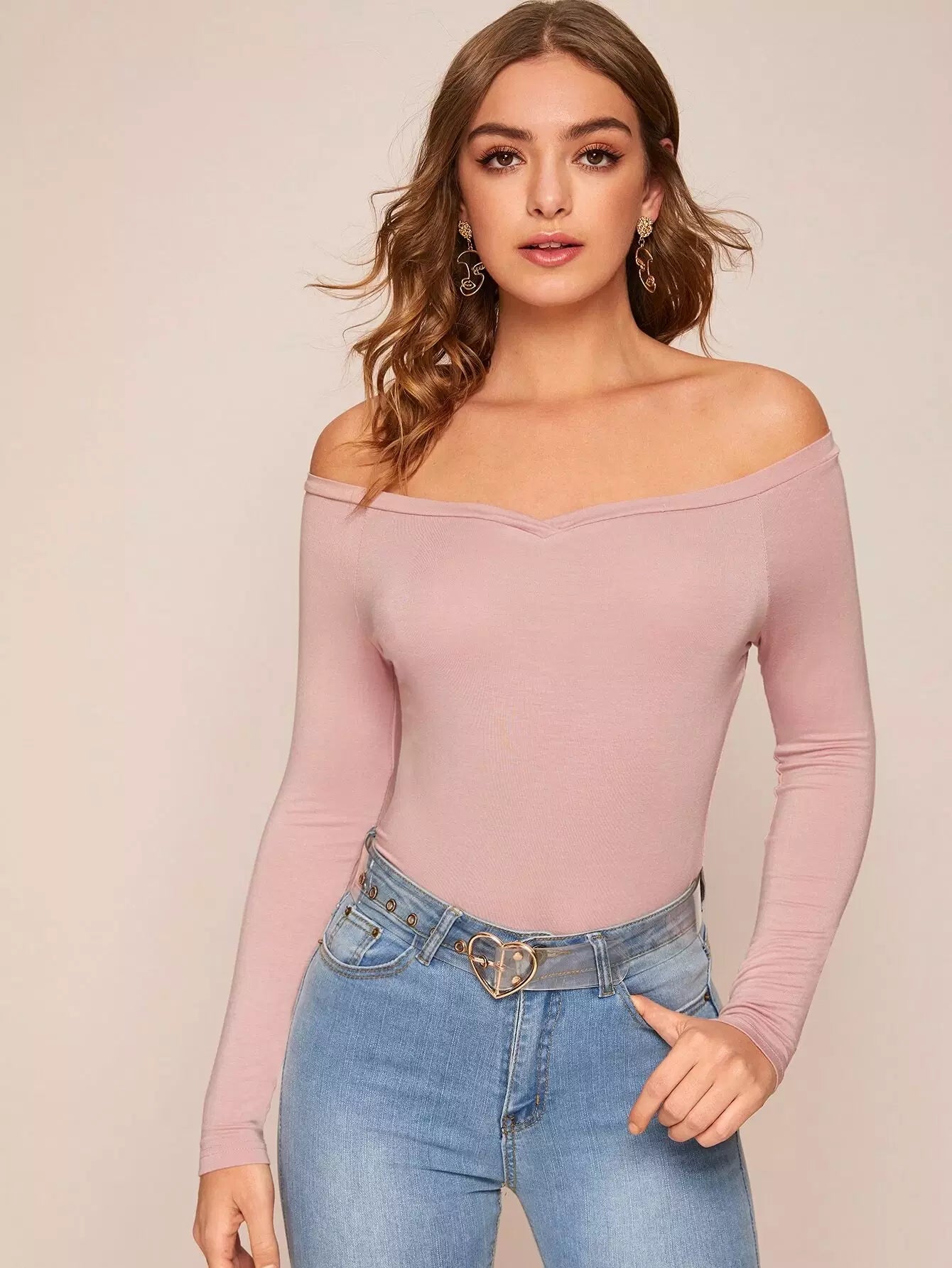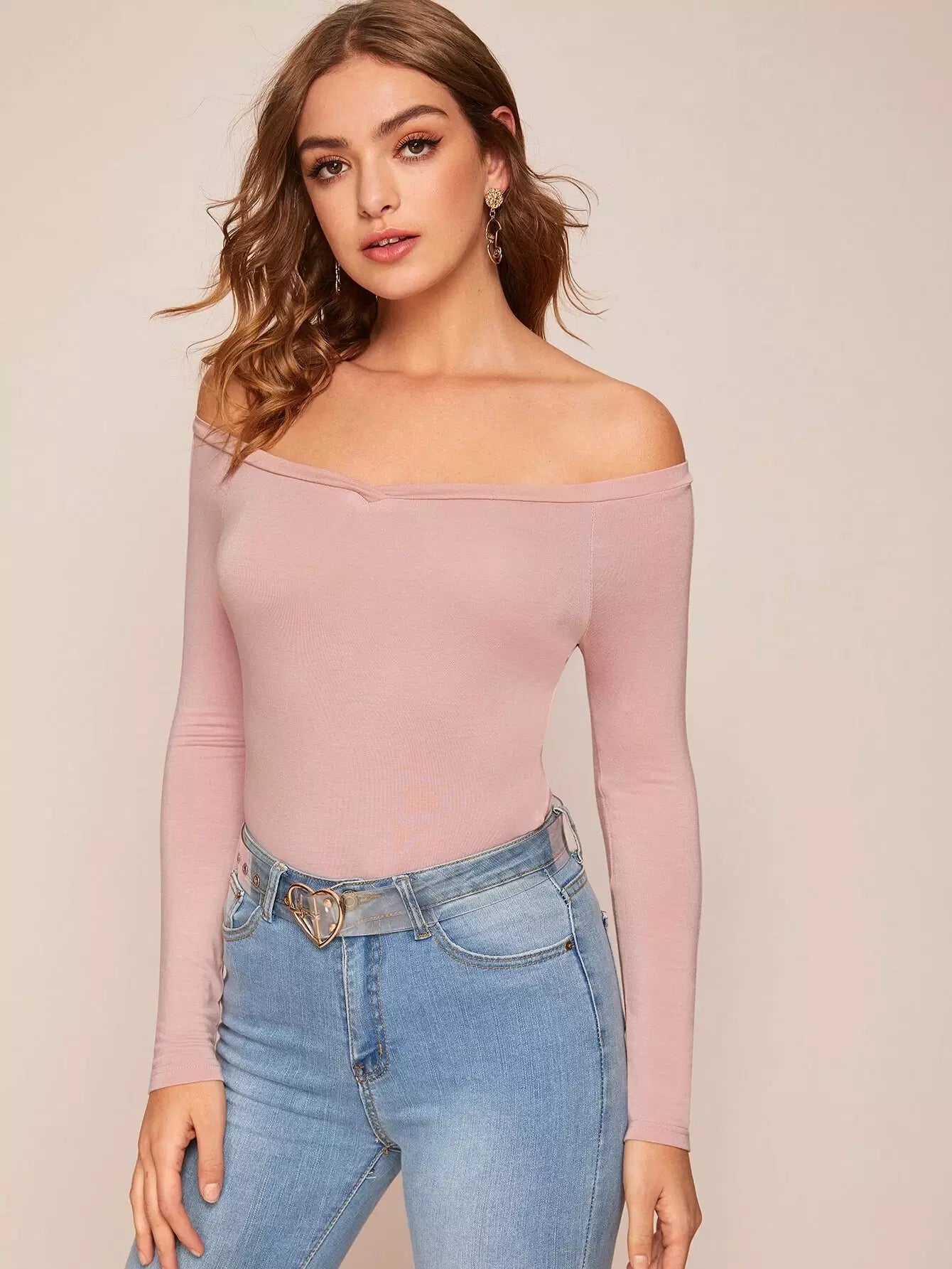 بلوزة سادة بدون أكتاف مجهزة ومكشوفة الأكتاف
