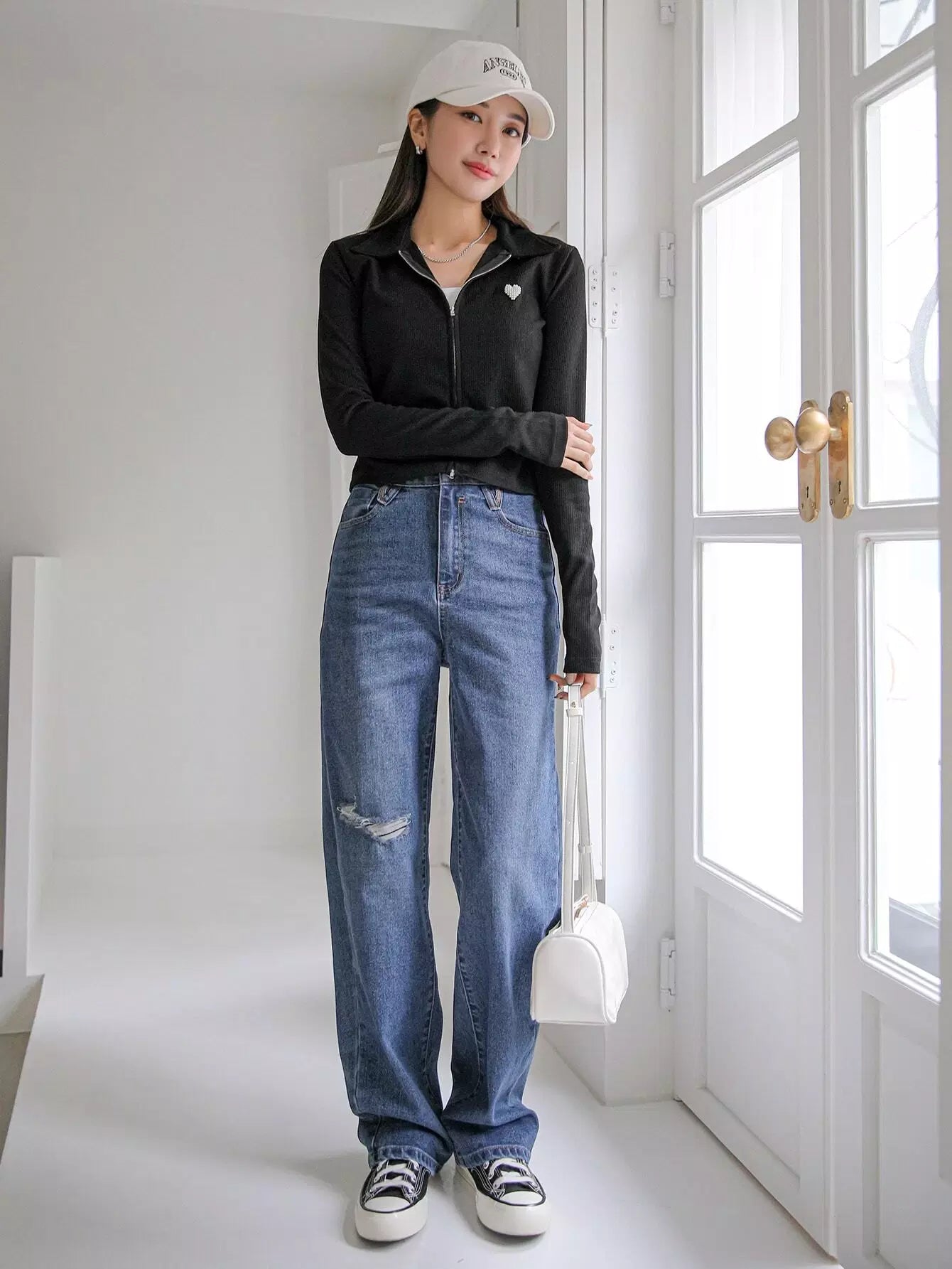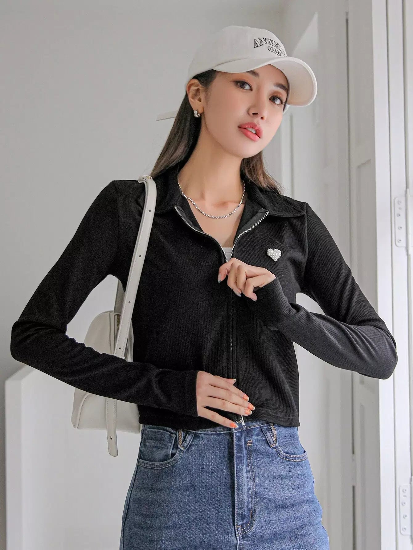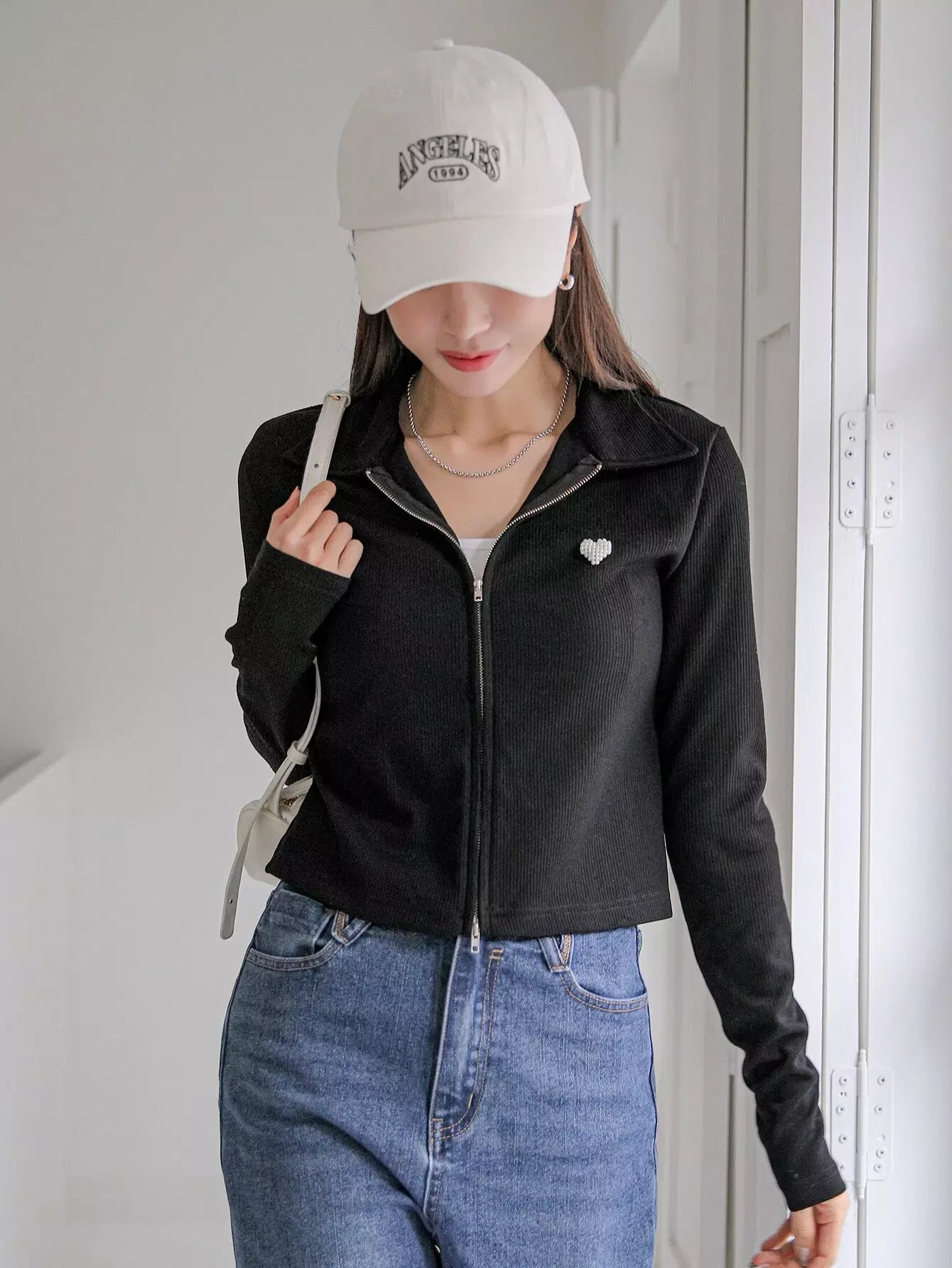 تي شيرت مزين باللآلئ بنقشة قلب مطرز بالخرز بسحاب