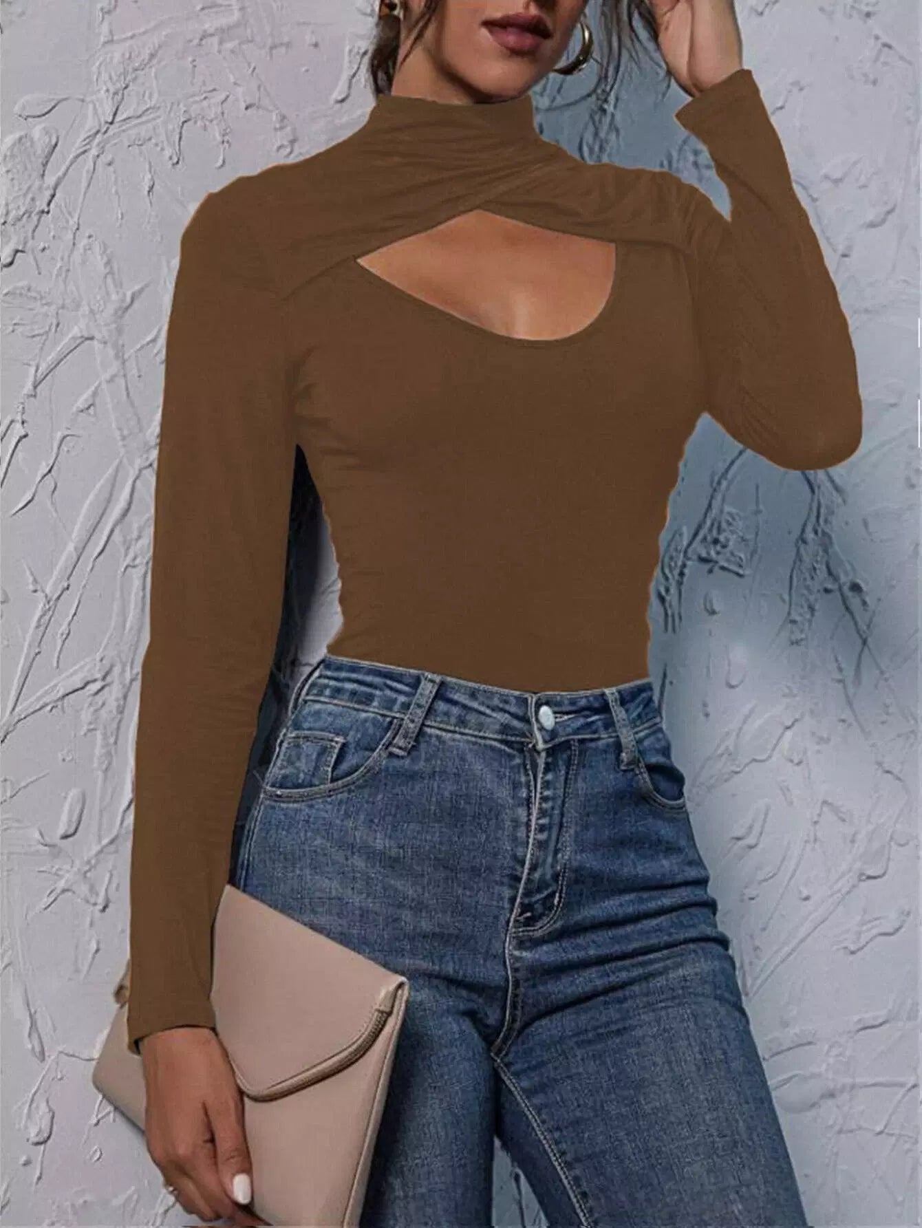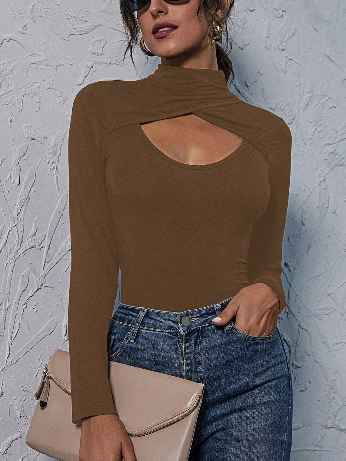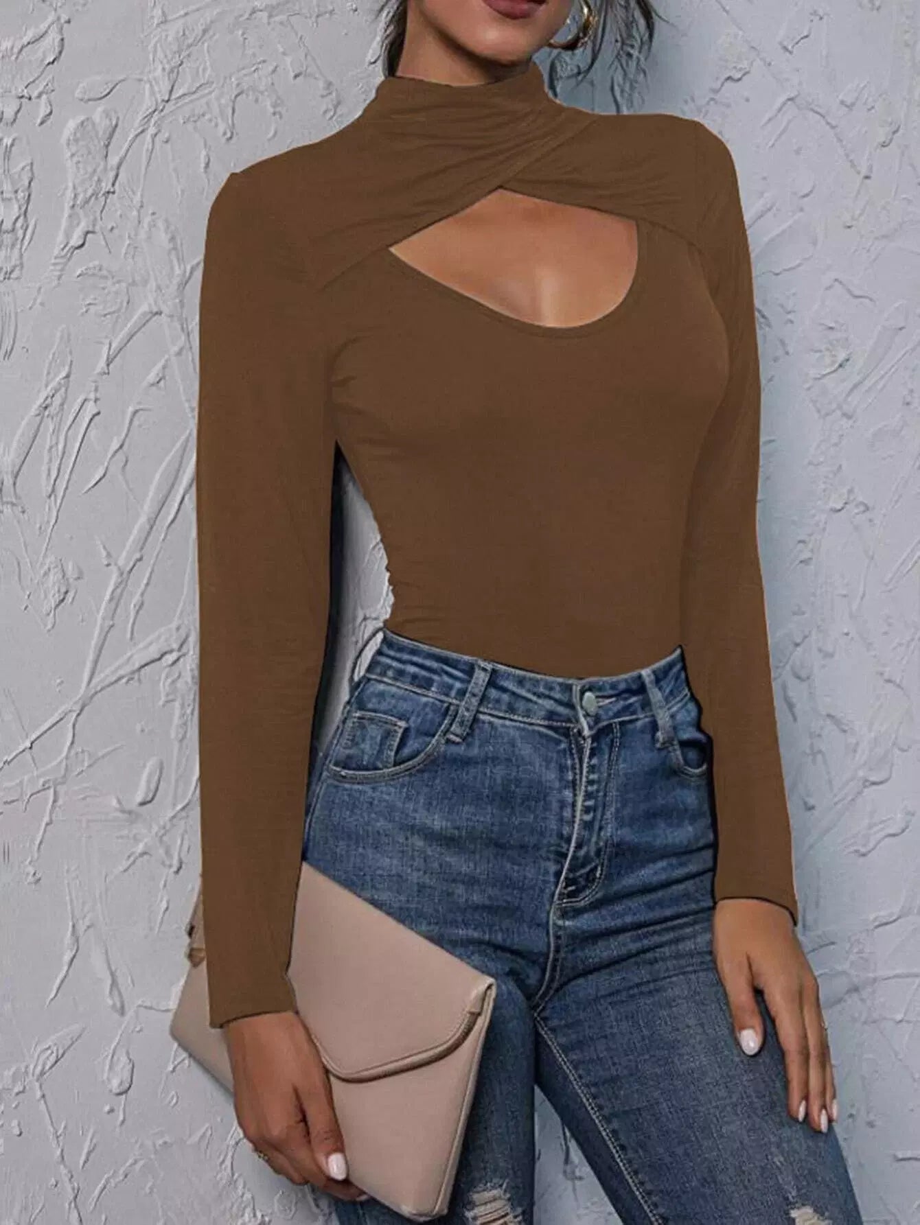 تي شيرت برقبة أمامية بقصّة بيكابو برقبة ضيقة من الأمام