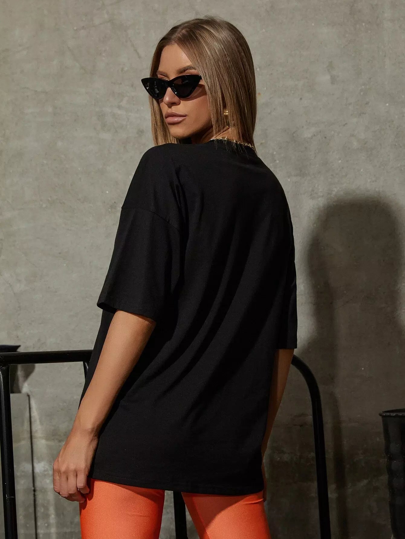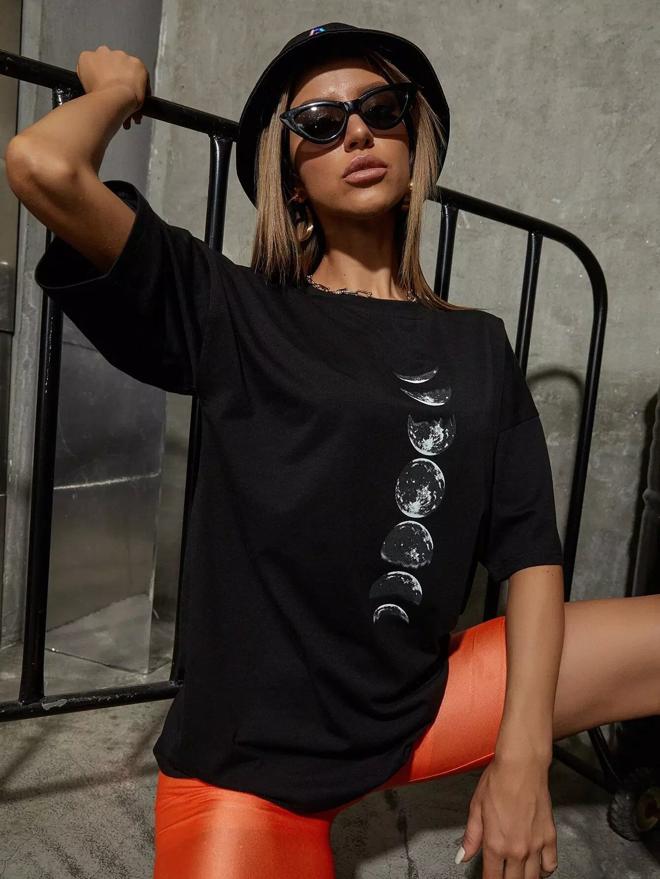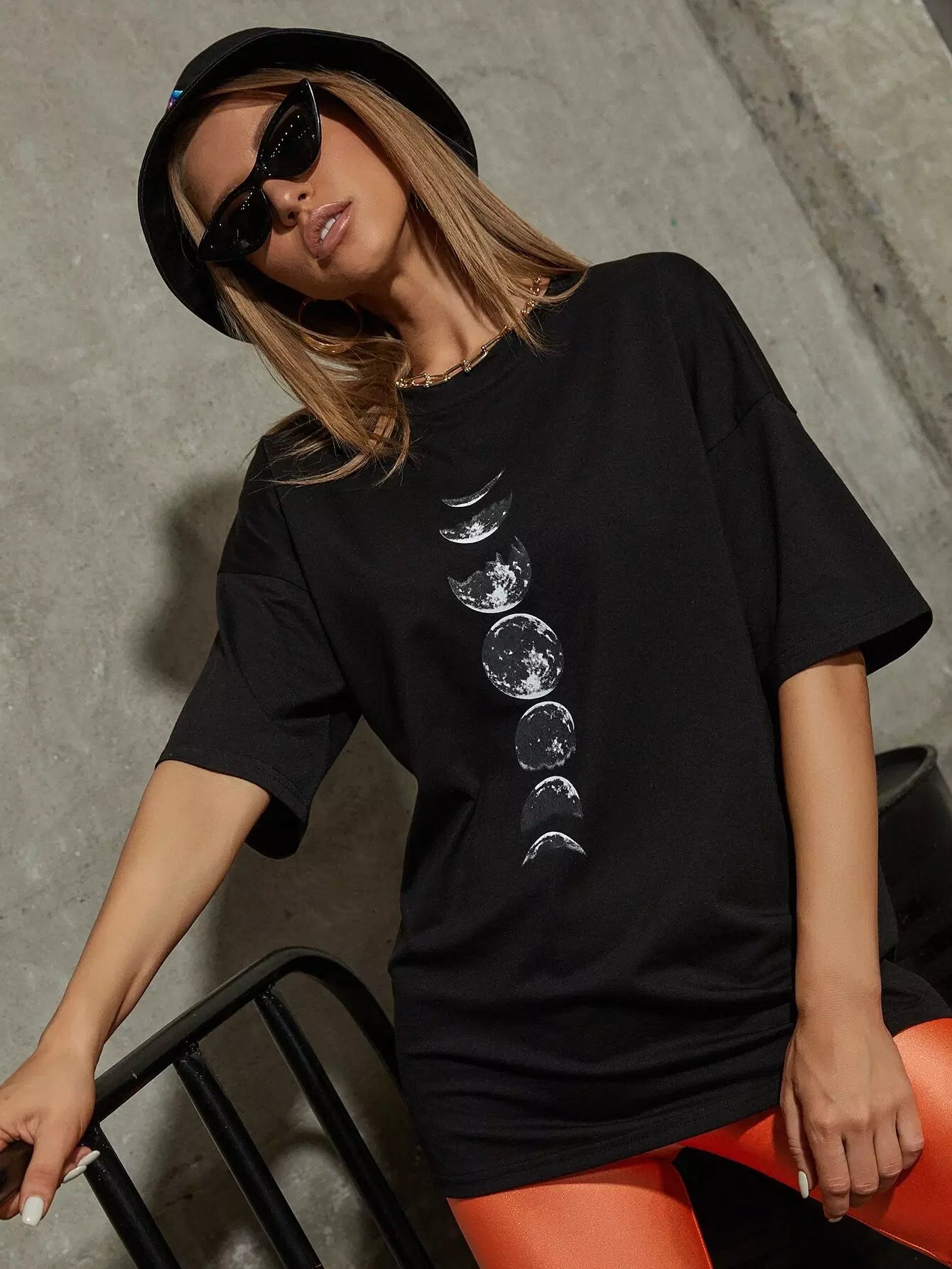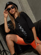 تي شيرت كبير الحجم بطبعة كوكبية وأكتاف منسدلة