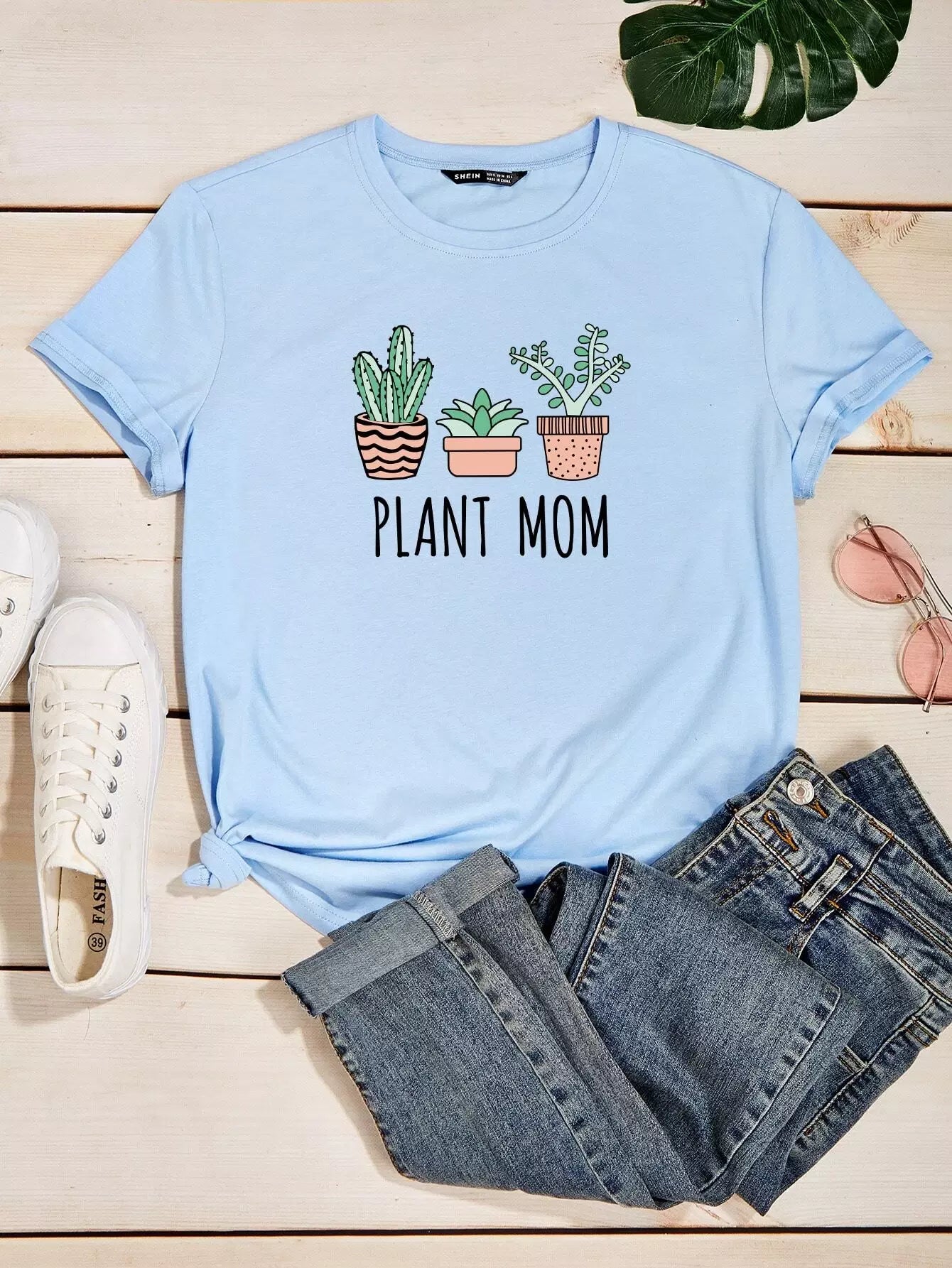 تي شيرت برسومات نباتات وحروف
