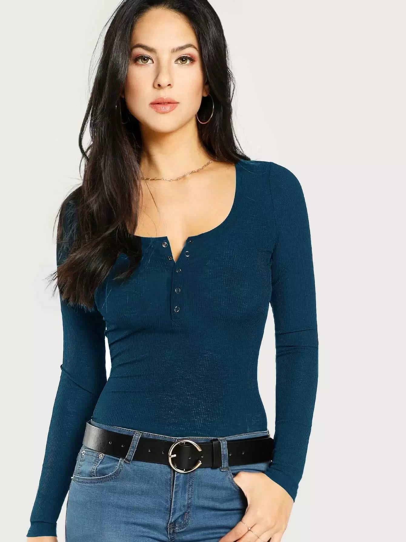 تي شيرت بأزرار مضغوطة بأزرار ضيقة
