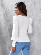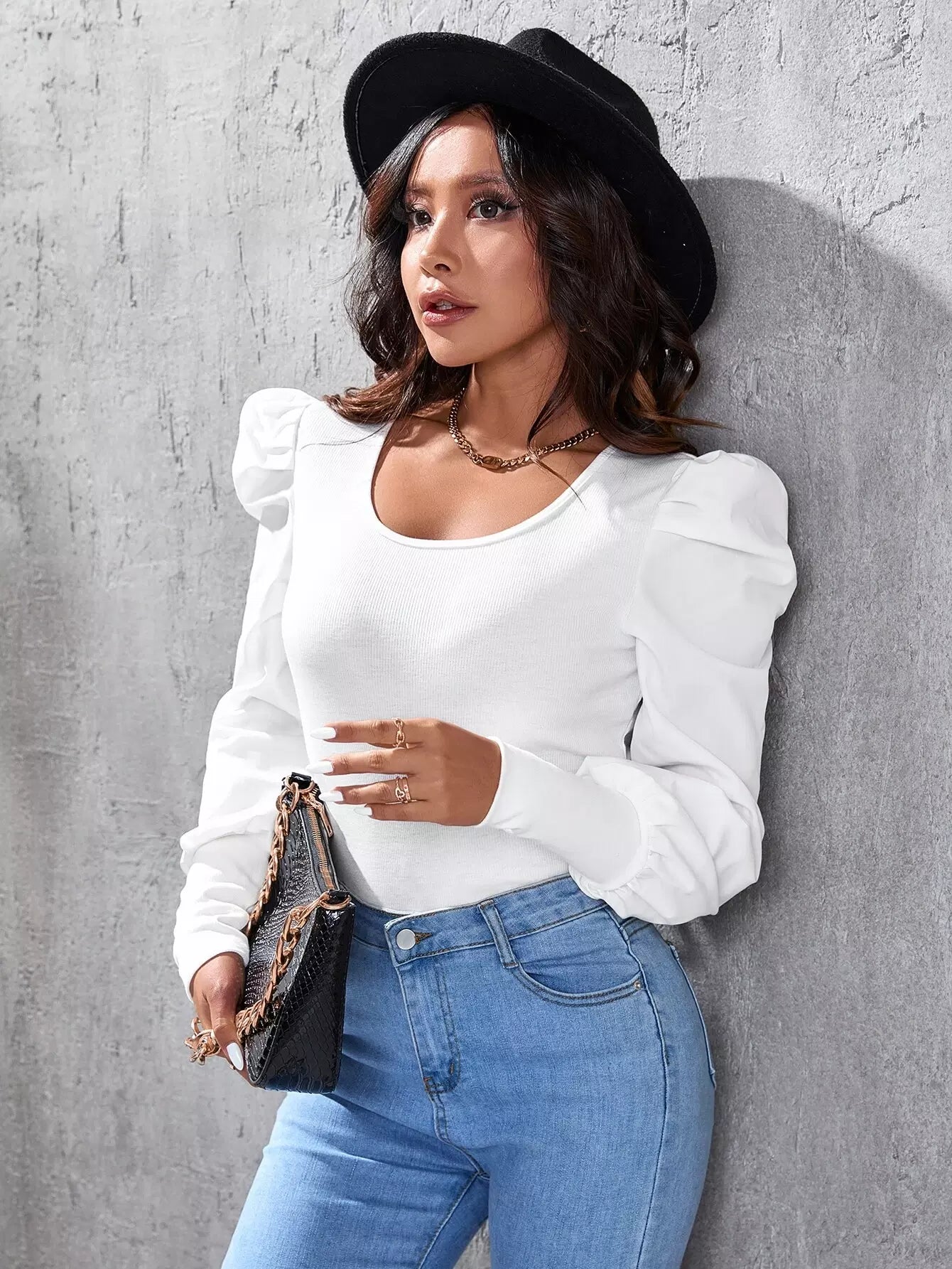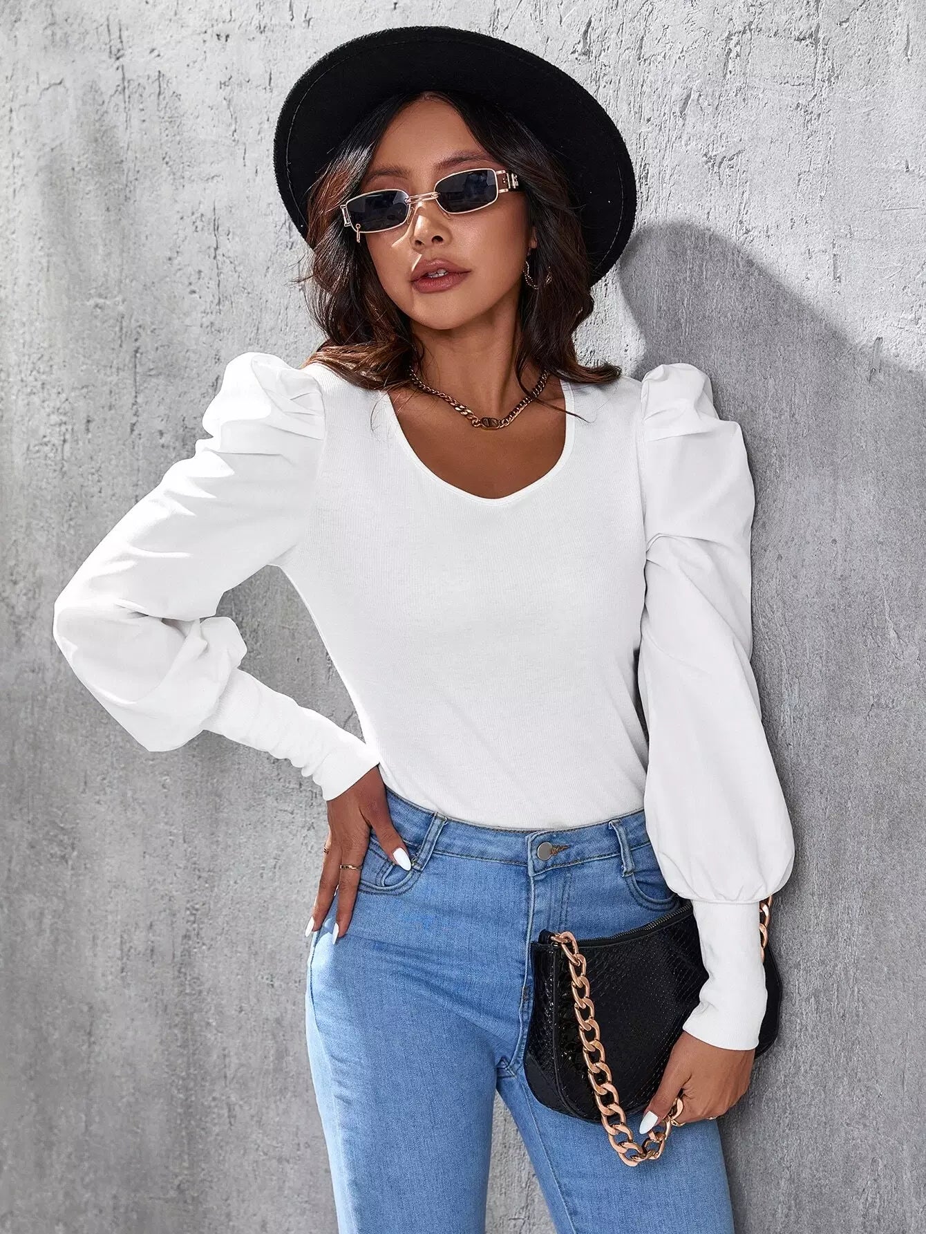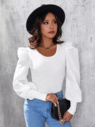 تي شيرت بأكمام منفوشة برقبة دائرية