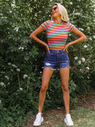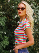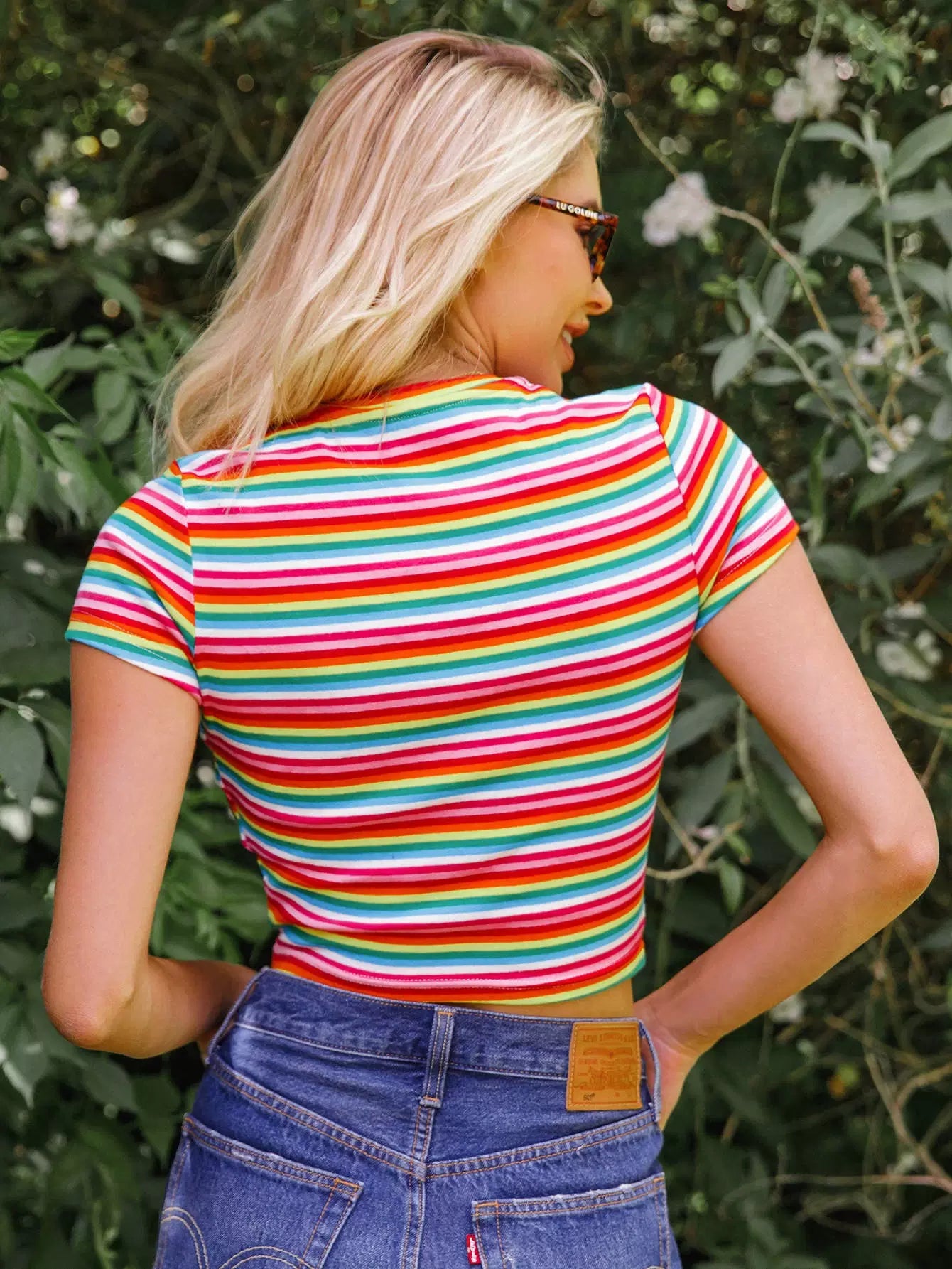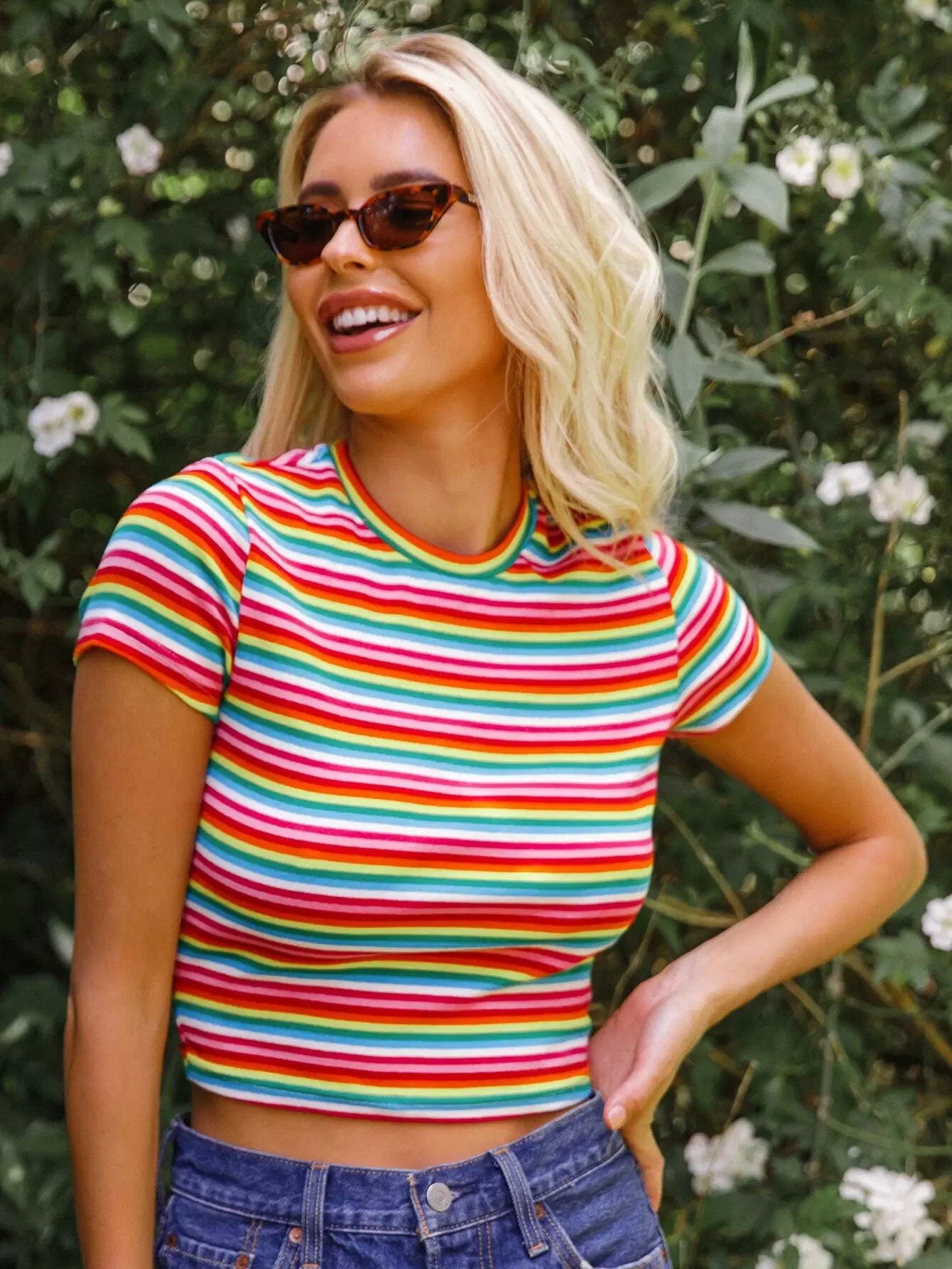 بلوزة قصيرة مخططة بألوان قوس قزح