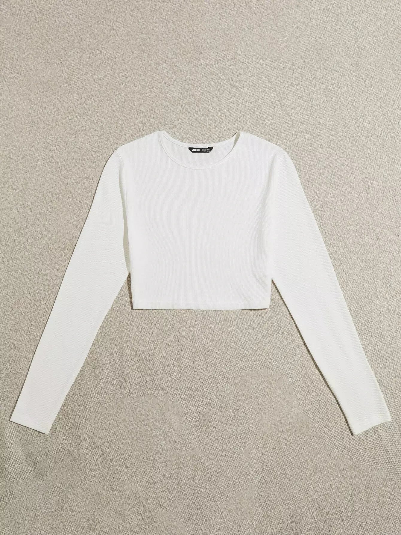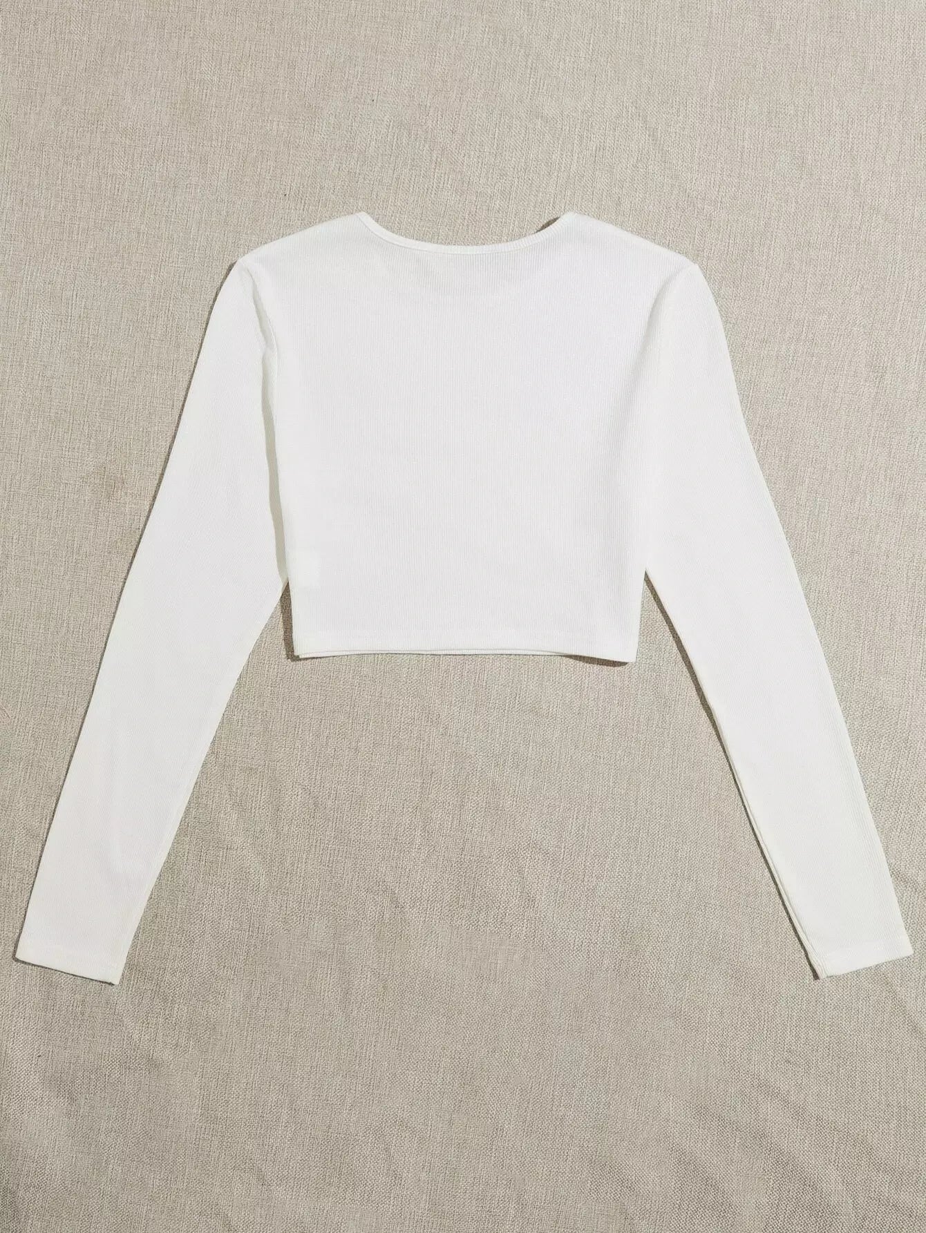 بلوزة قصيرة محبوكة على شكل ضلع محبوكة