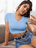بلوزة قصيرة محبوكة على شكل ضلع محبوكة