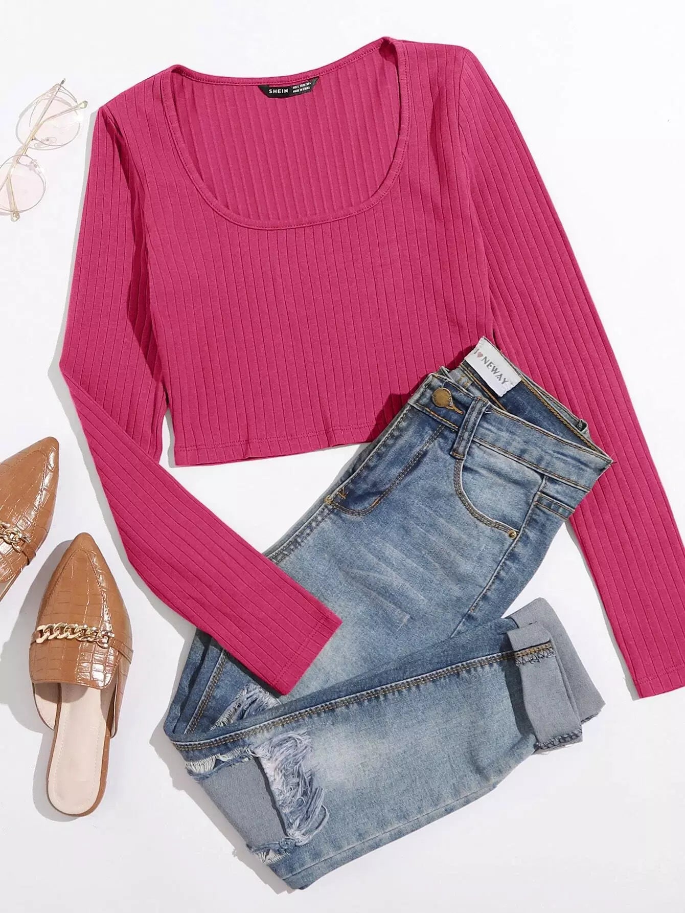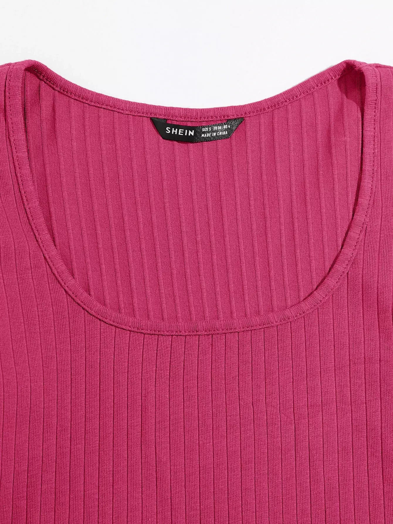 تي شيرت قصير ضيق محبوك على شكل ضلع محبوك