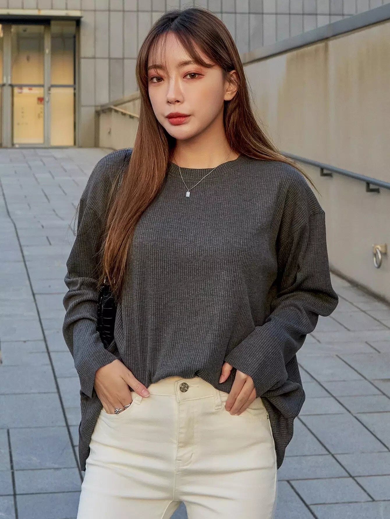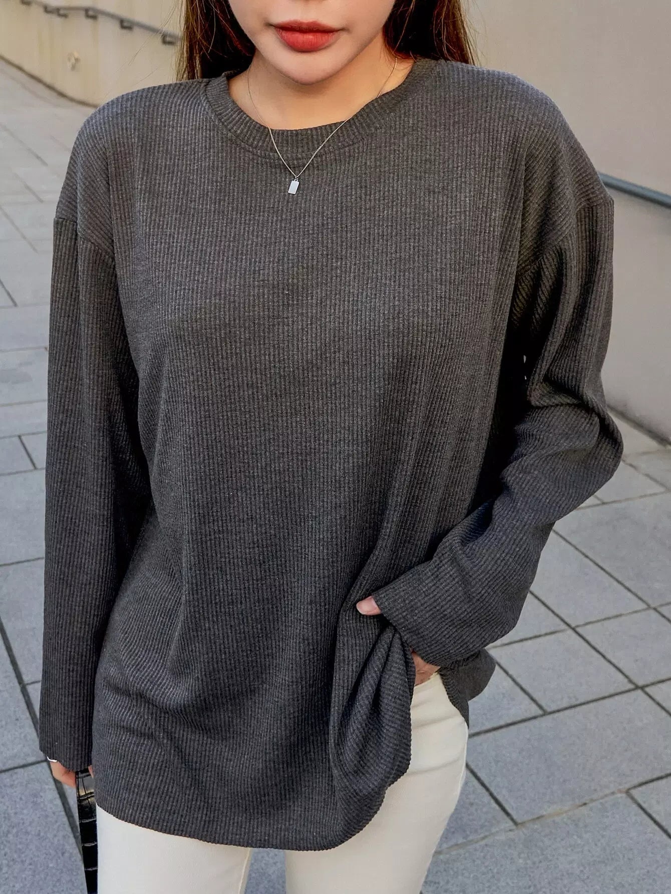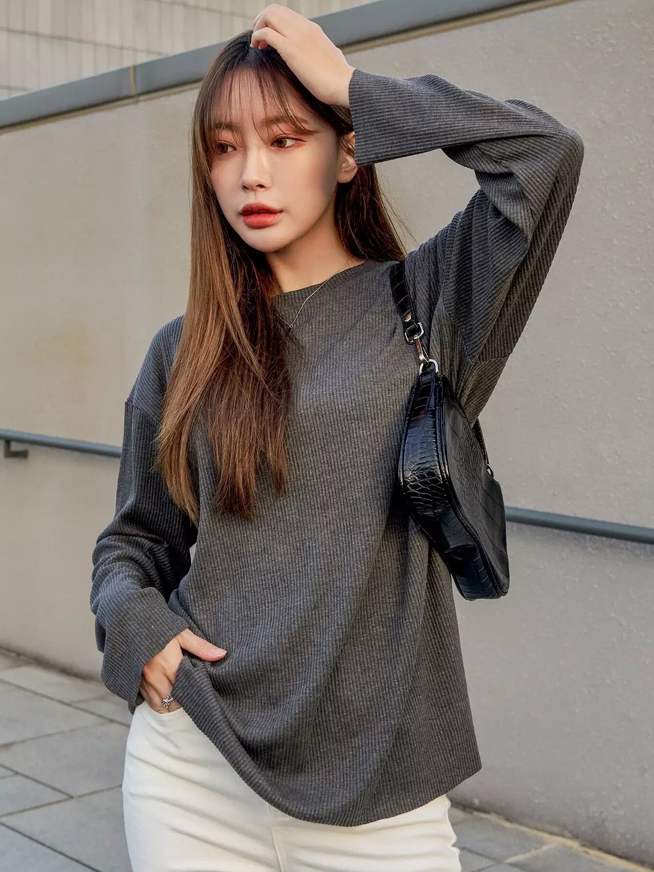 تي شيرت ذو أكتاف منسدلة محبوكة مضلعة