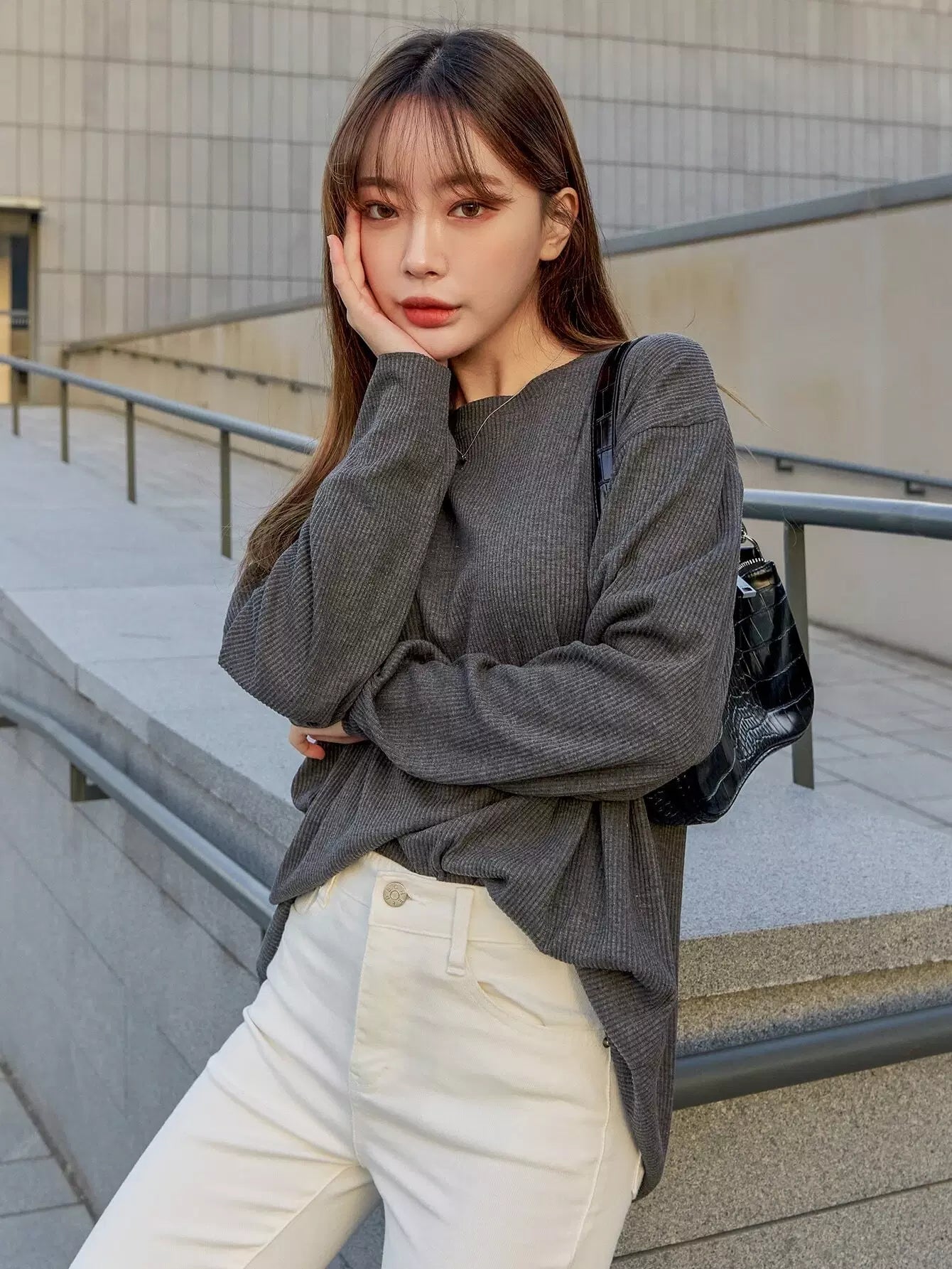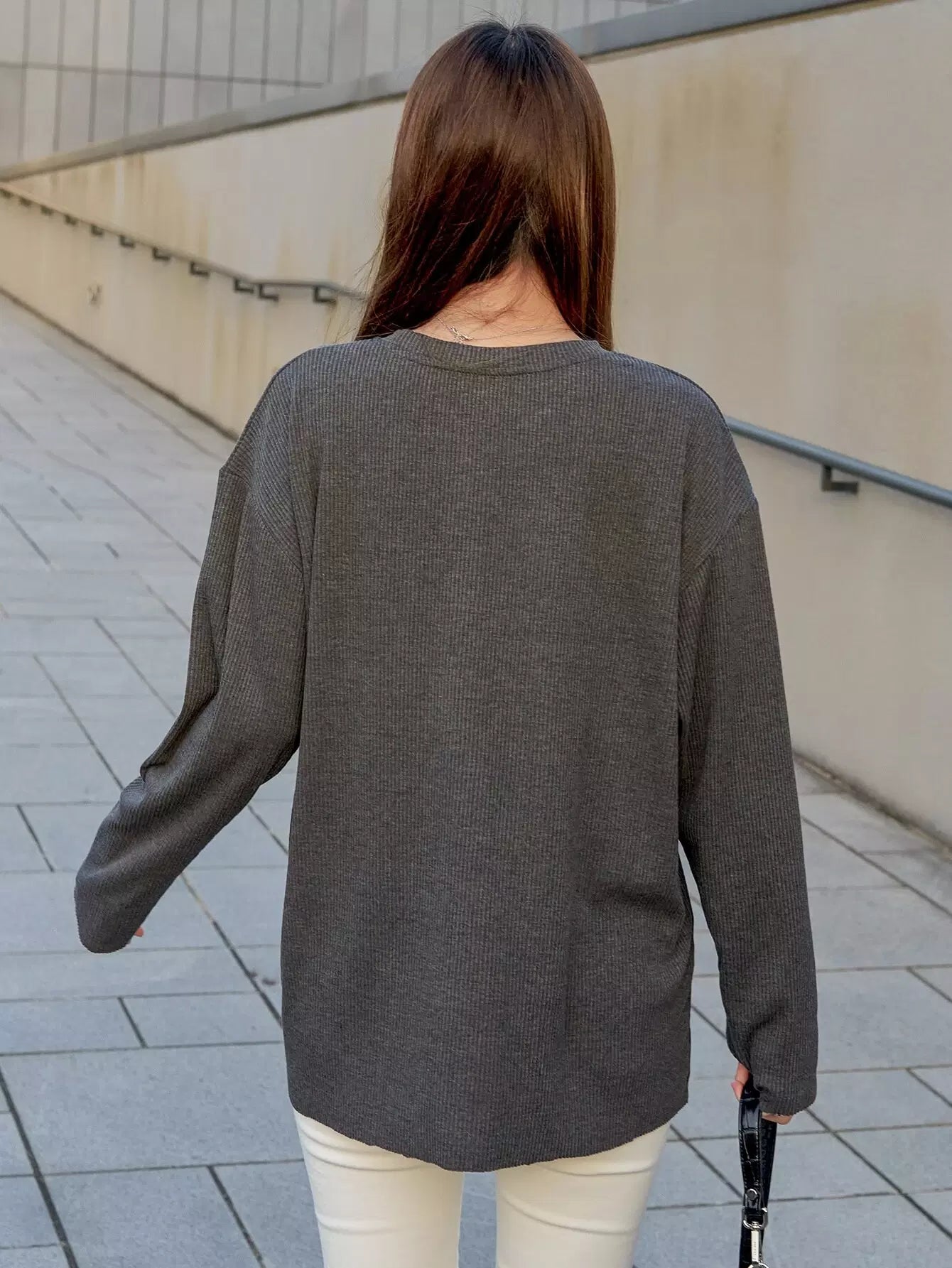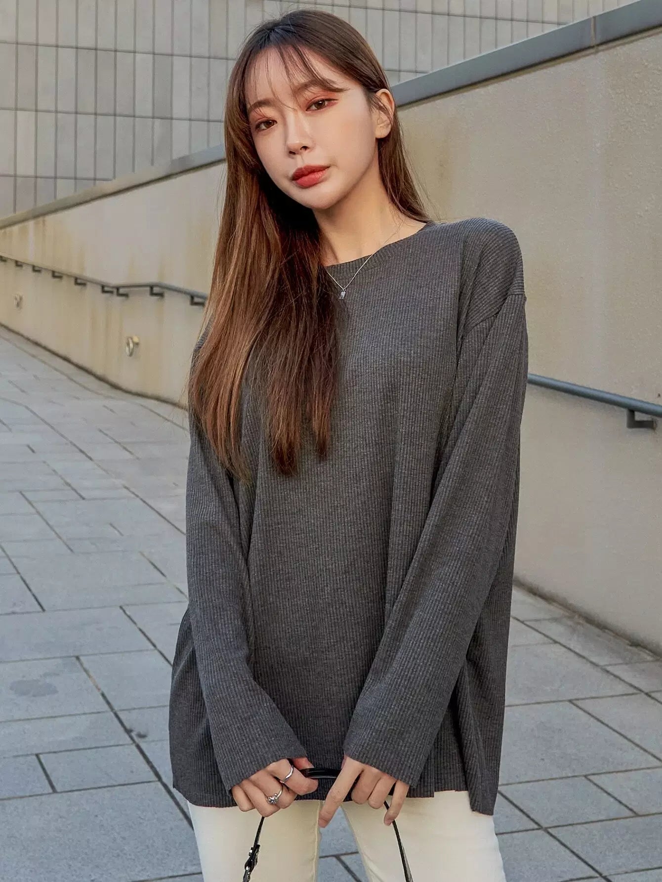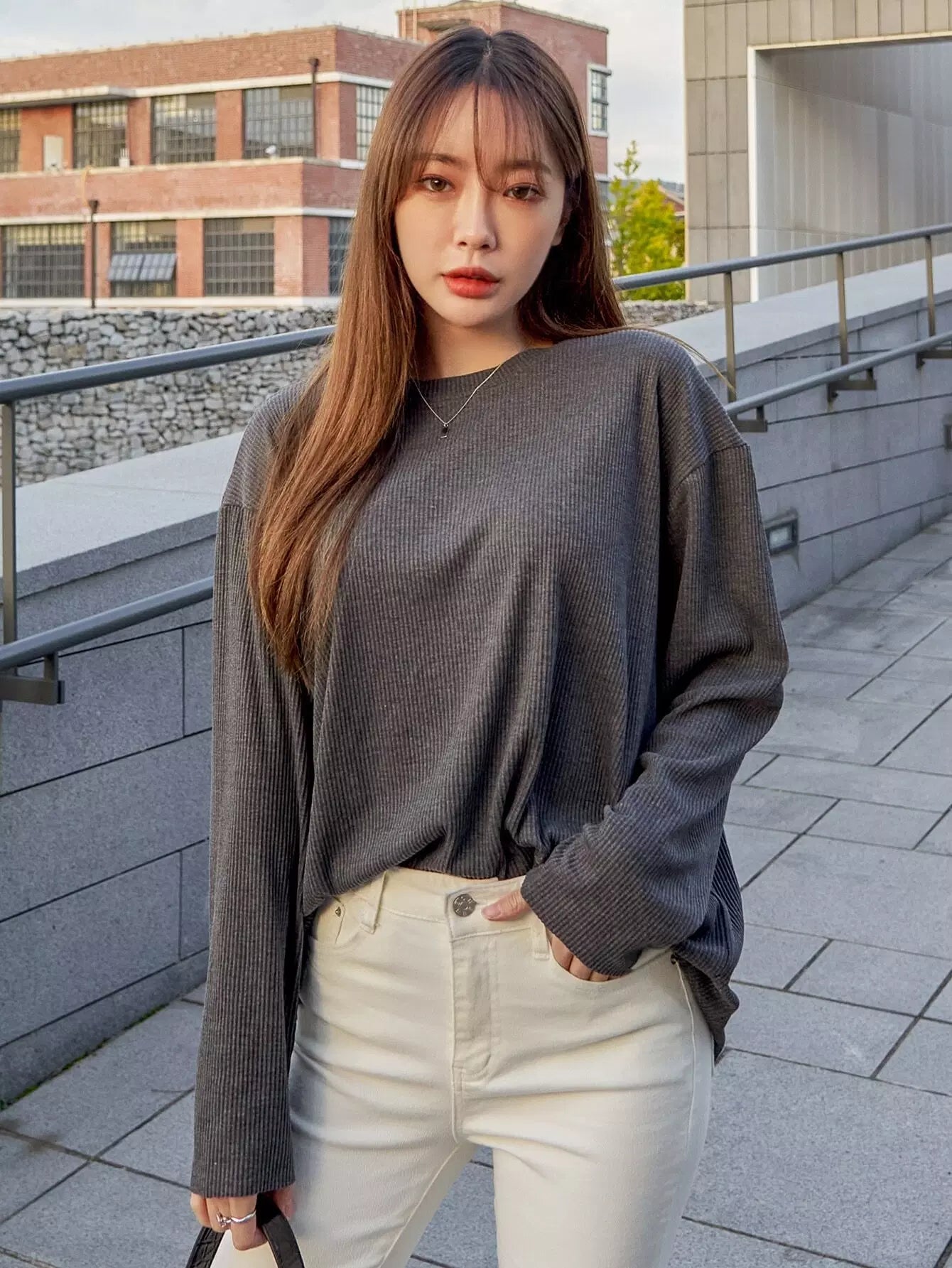 تي شيرت ذو أكتاف منسدلة محبوكة مضلعة