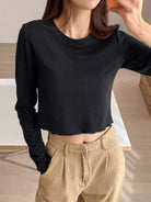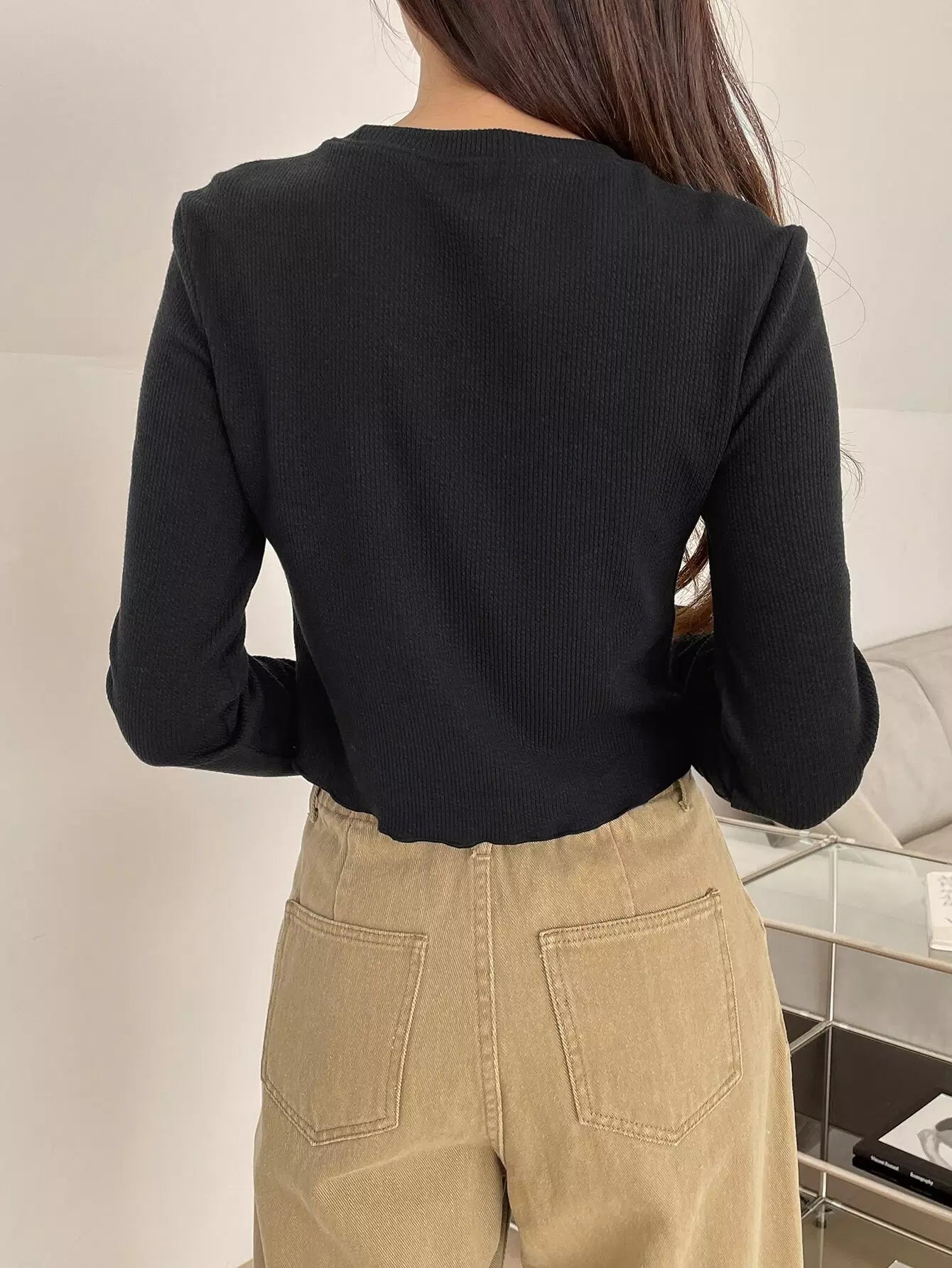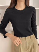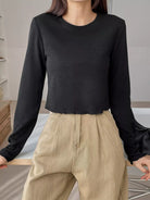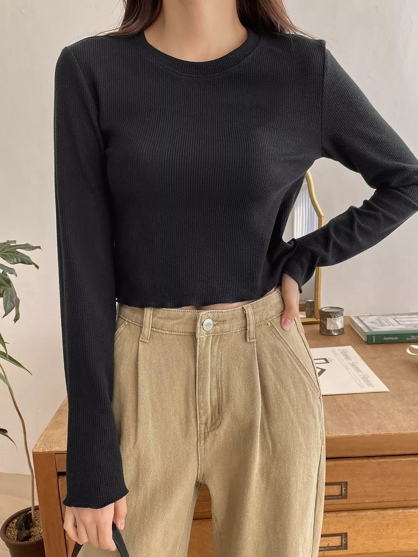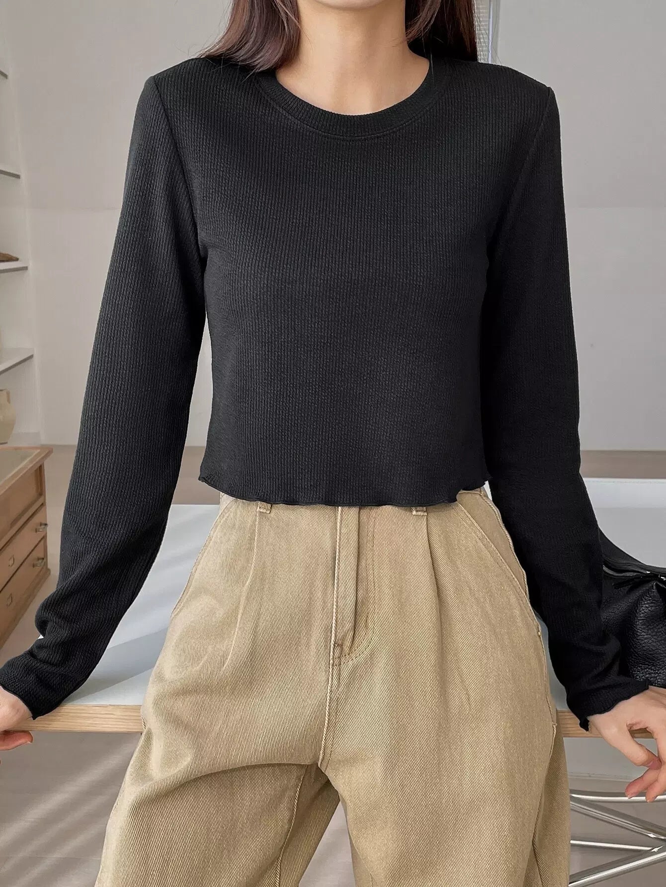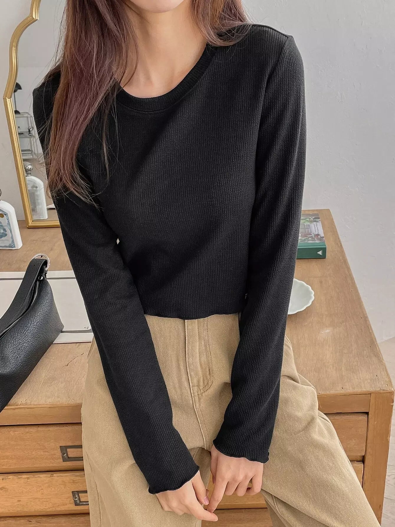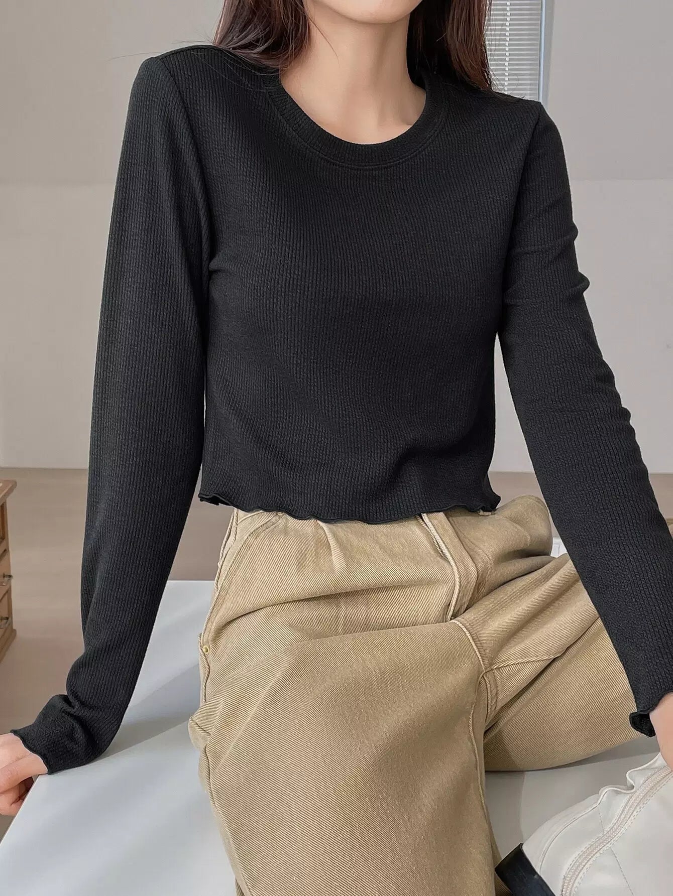 تي شيرت بحياكة مضلعة محبوكة بحواف من الخس