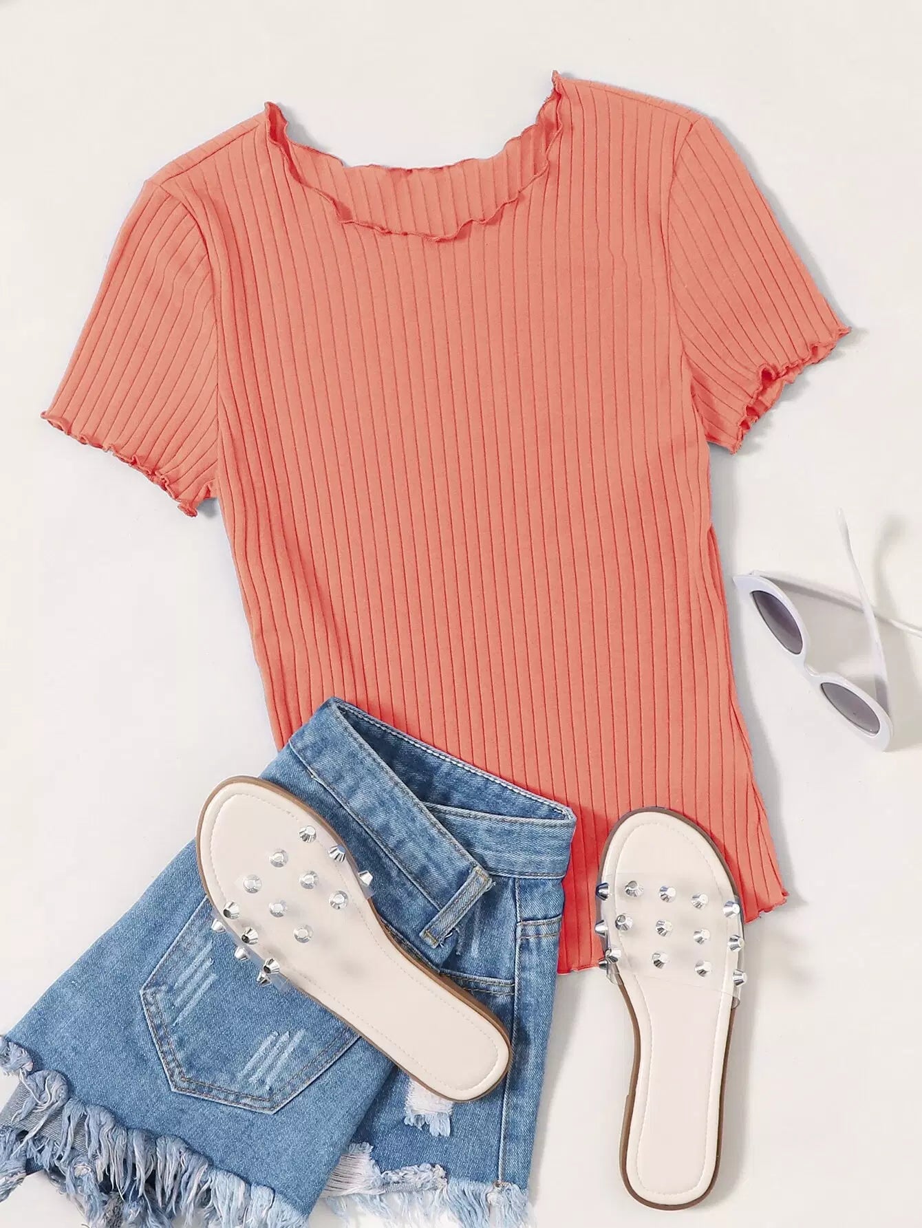 بلوزة مضلعة ذات حافة مضلعة على شكل خس مضلعة