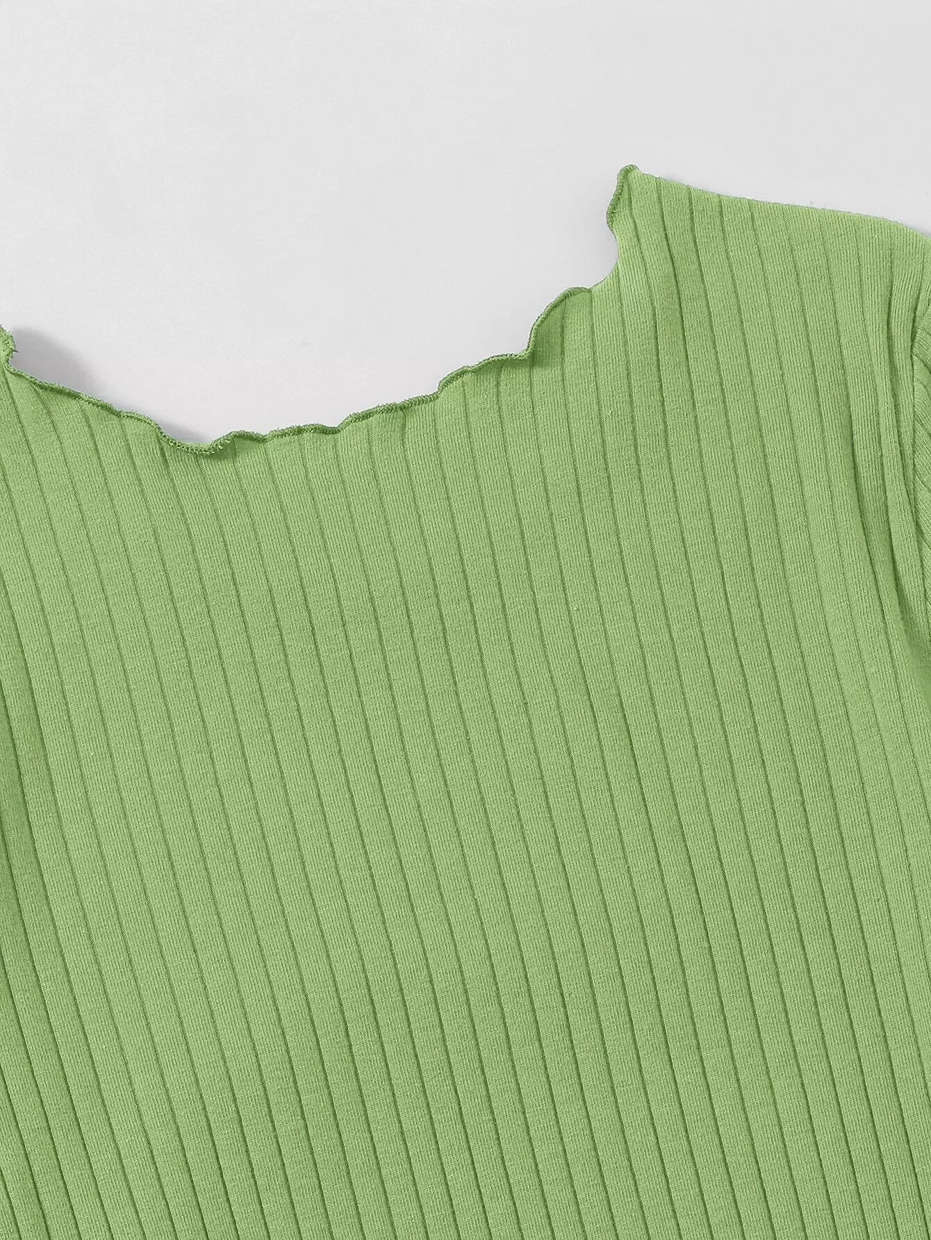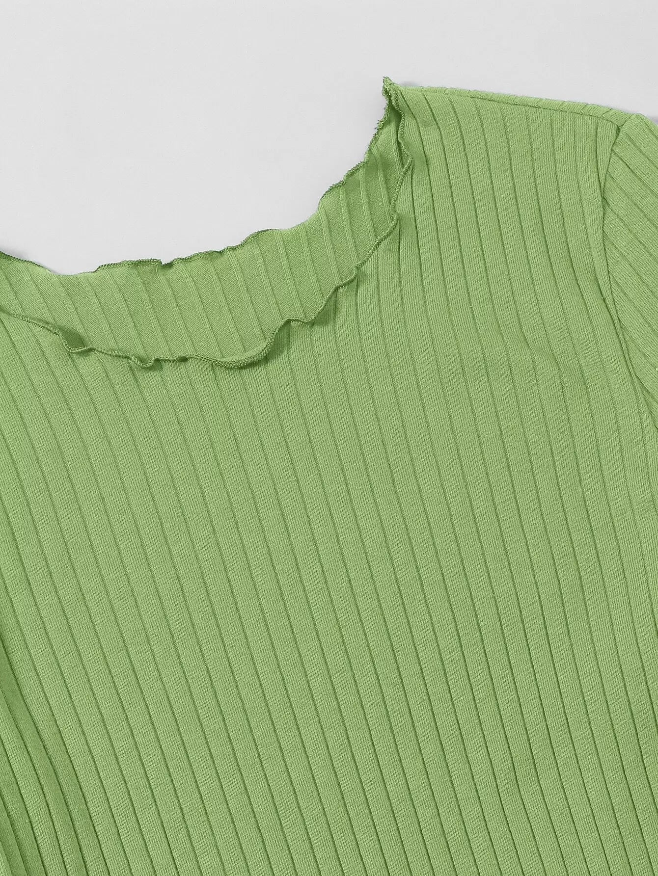 بلوزة مضلعة ذات حافة مضلعة على شكل خس مضلعة