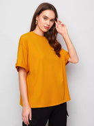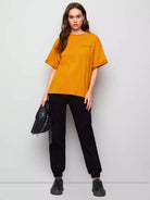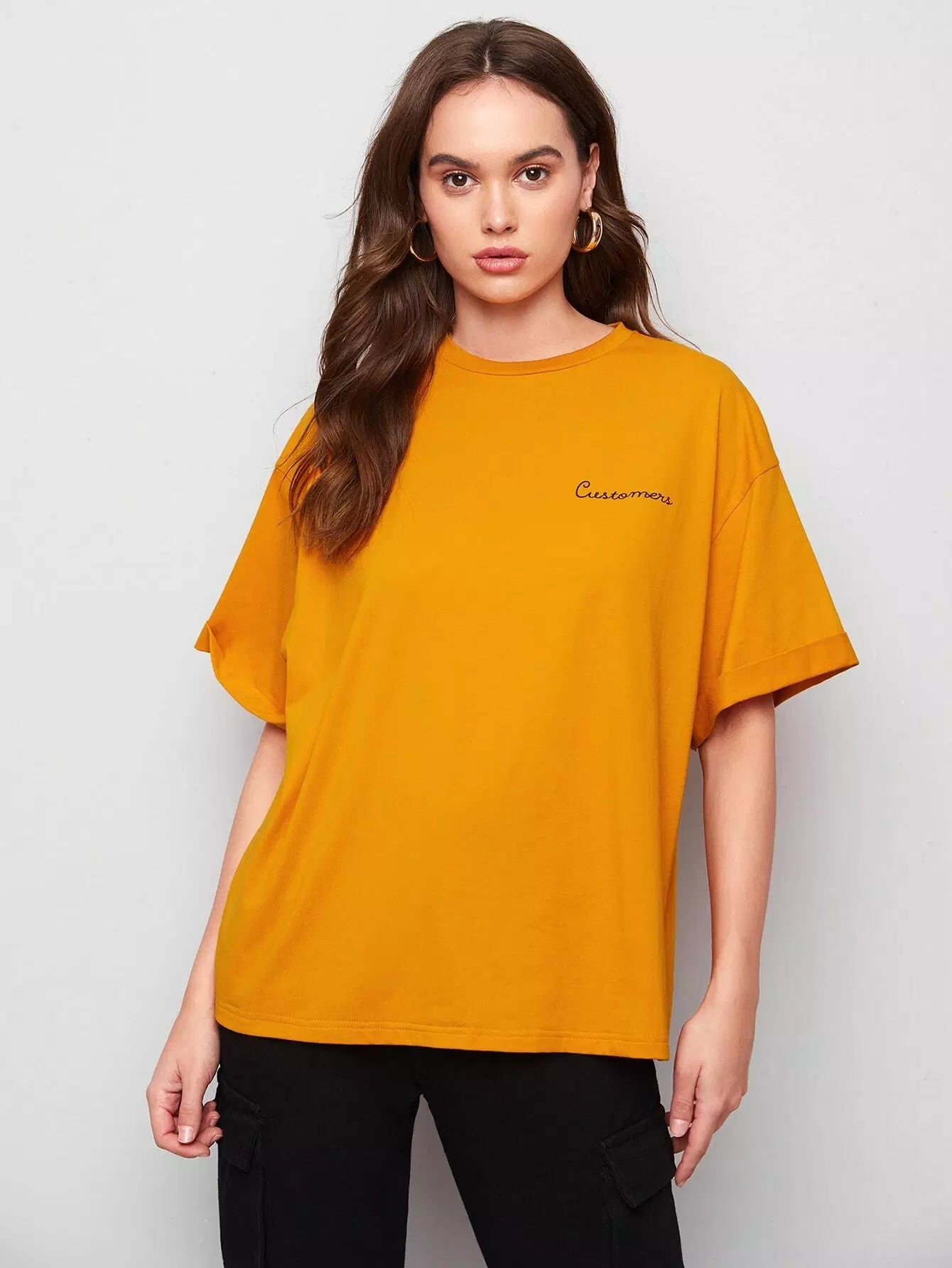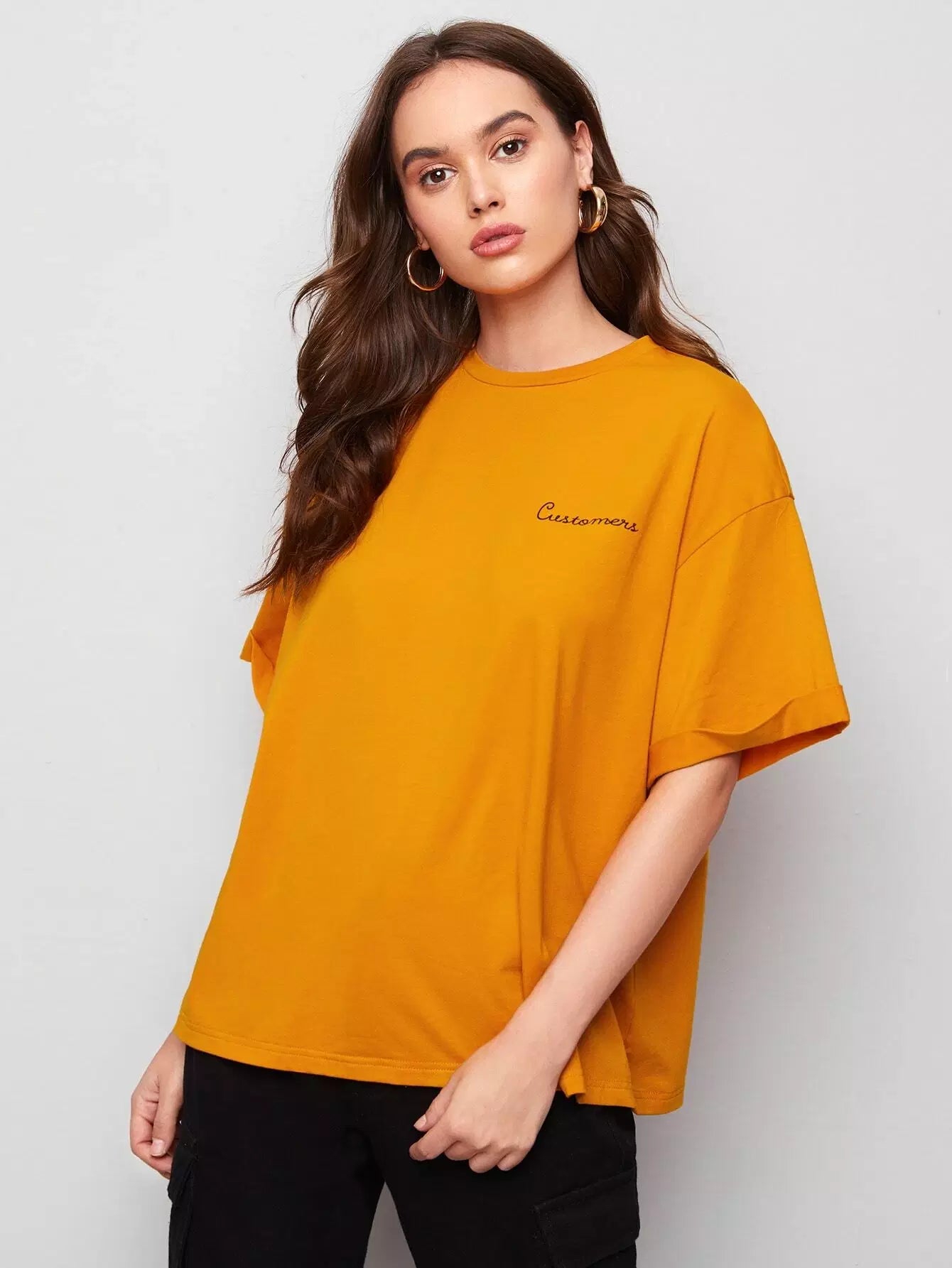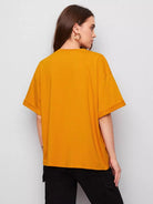 تي شيرت بأكمام ملفوفة على شكل حرف جرافيك