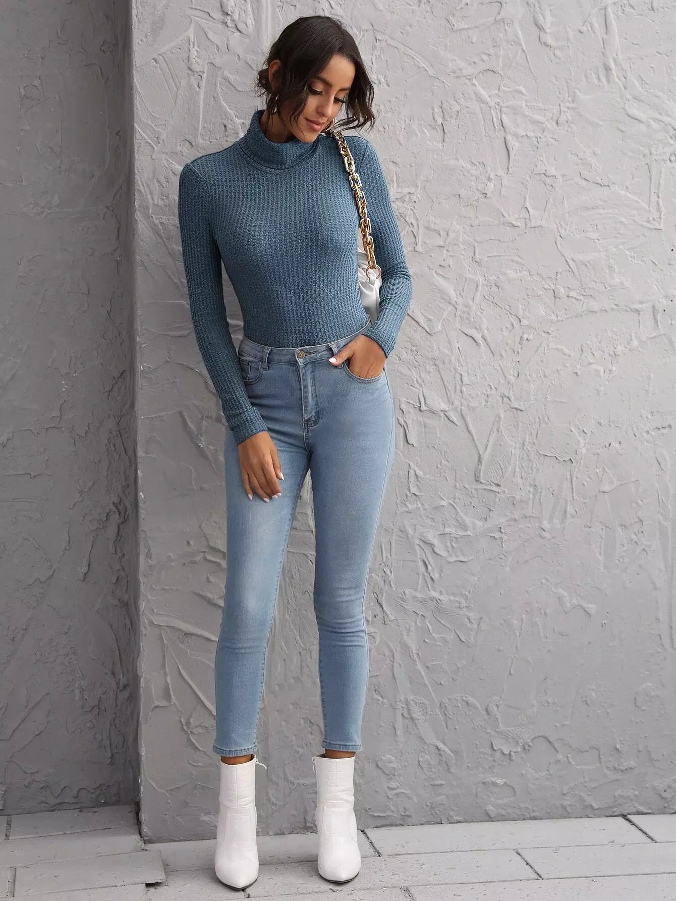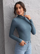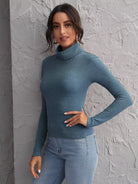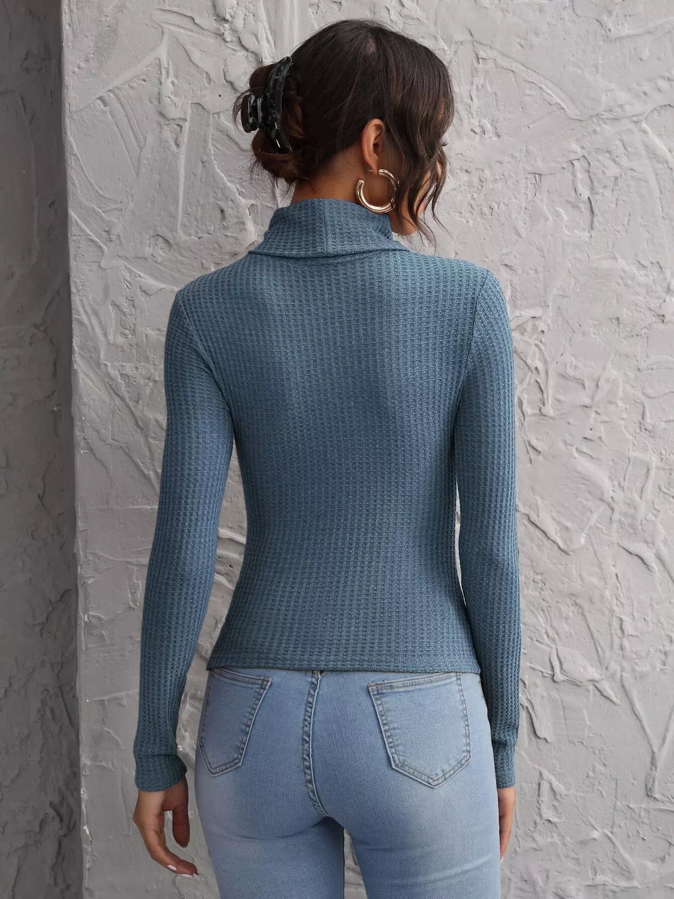 تي شيرت برقبة ملفوفة بفتحة رقبة ملفوفة متماسكة