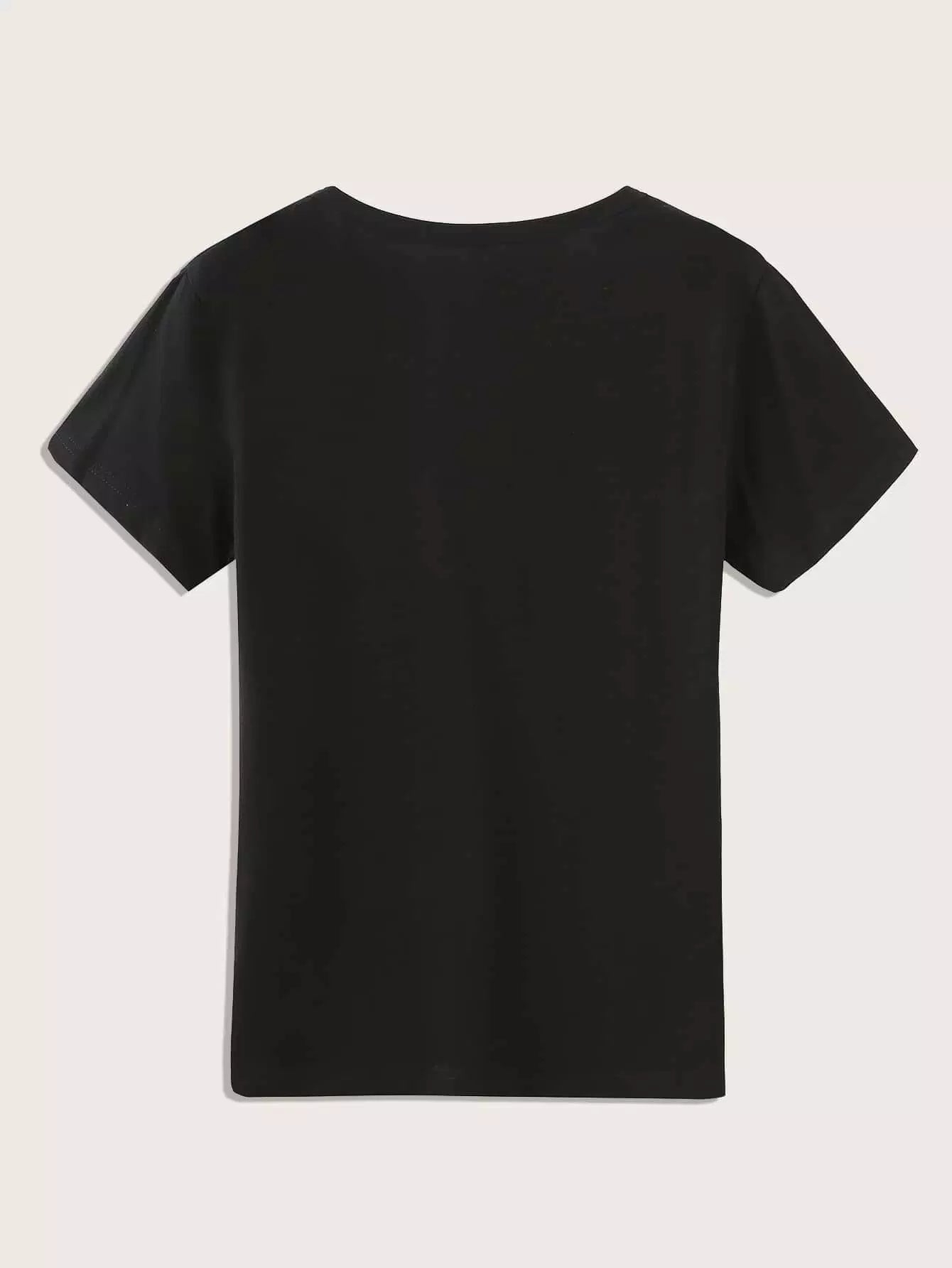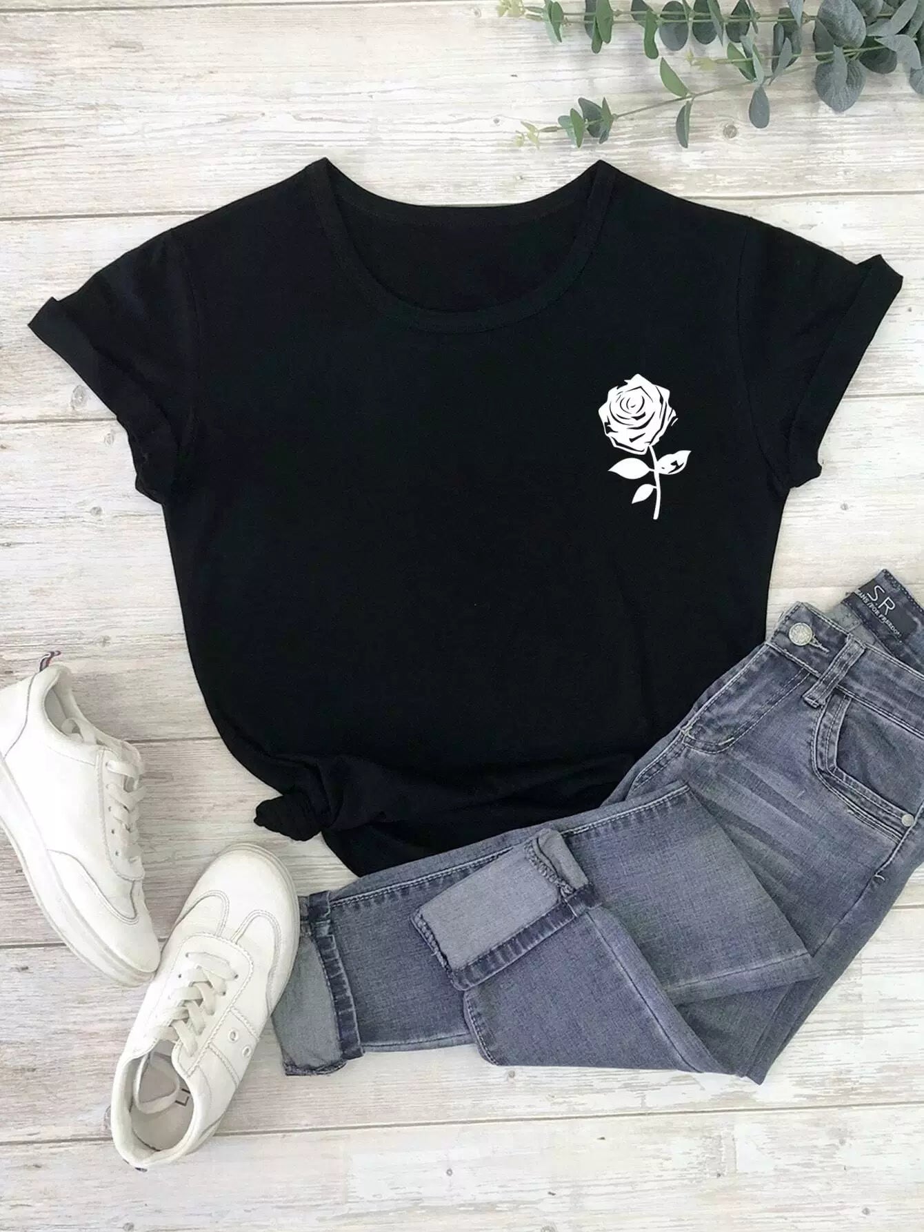 تي شيرت بأكمام قصيرة بطبعة ورود