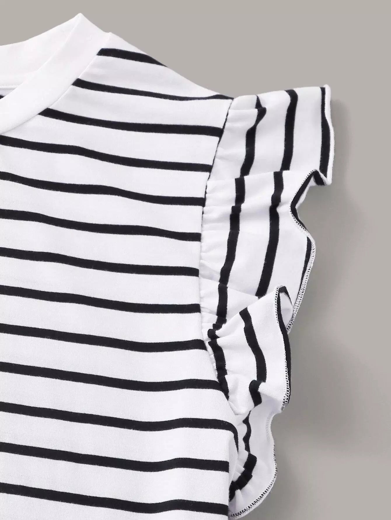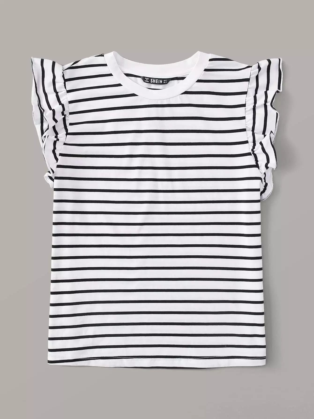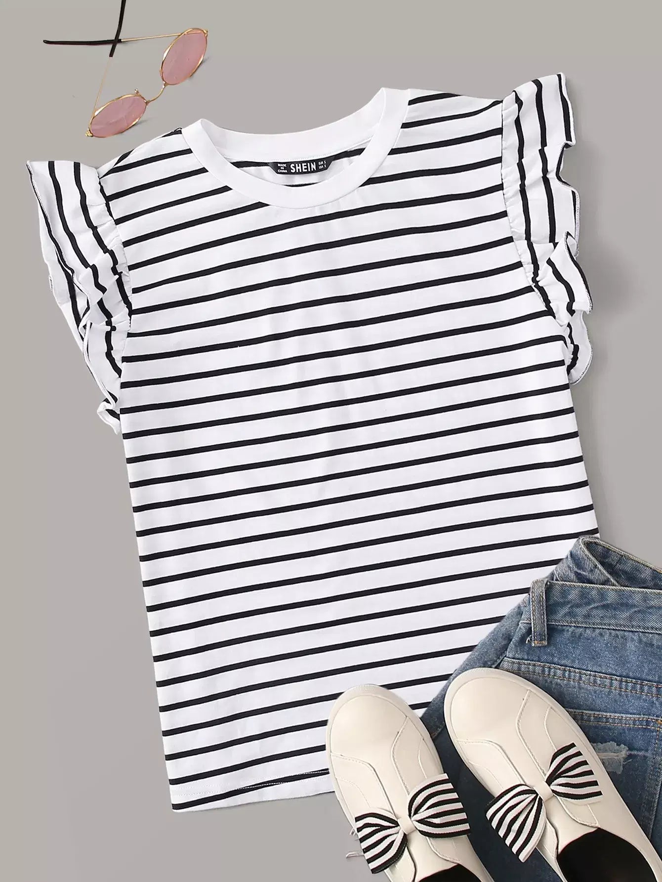 بلوزة مخططة بفتحات أذرع مكشكشة مخططة