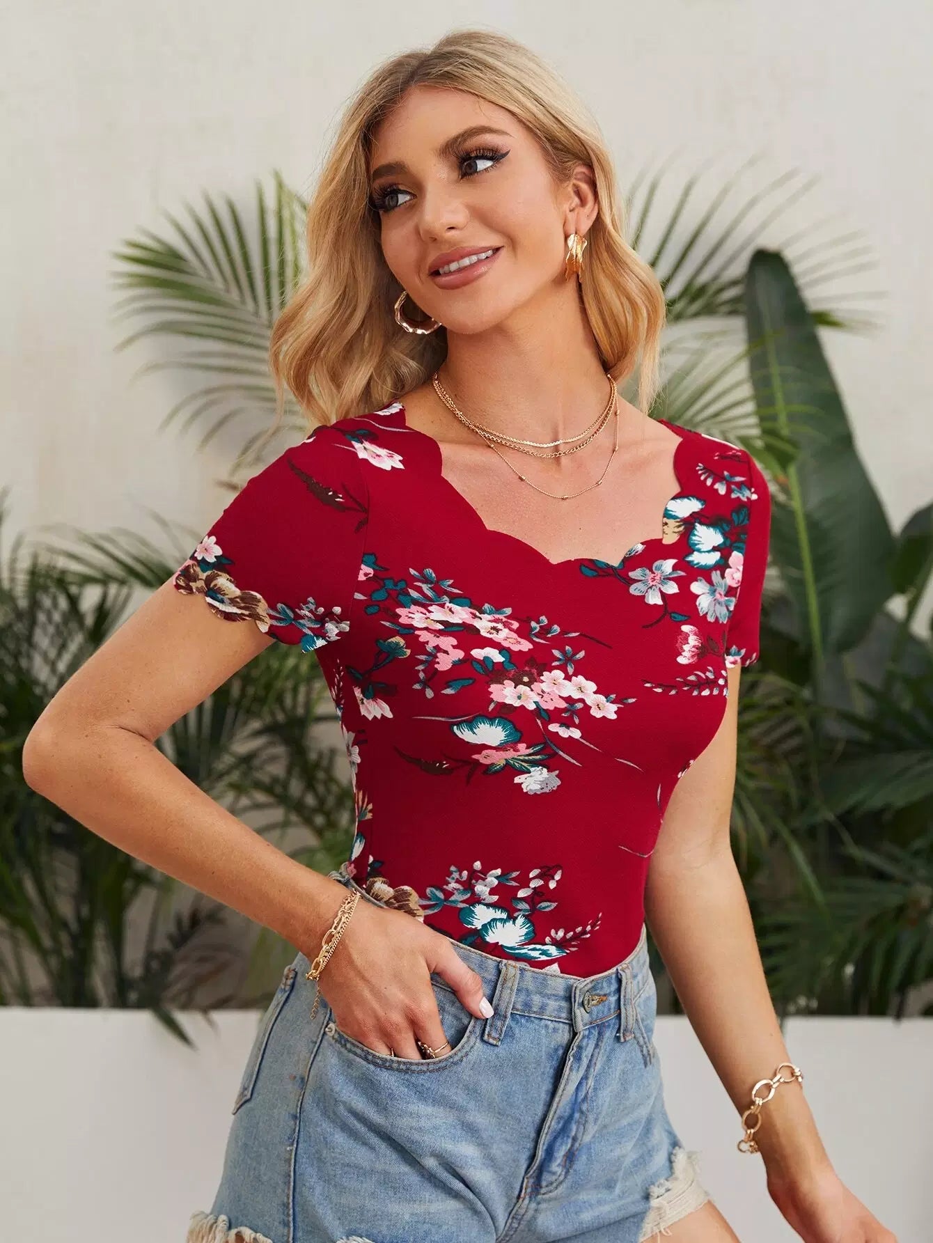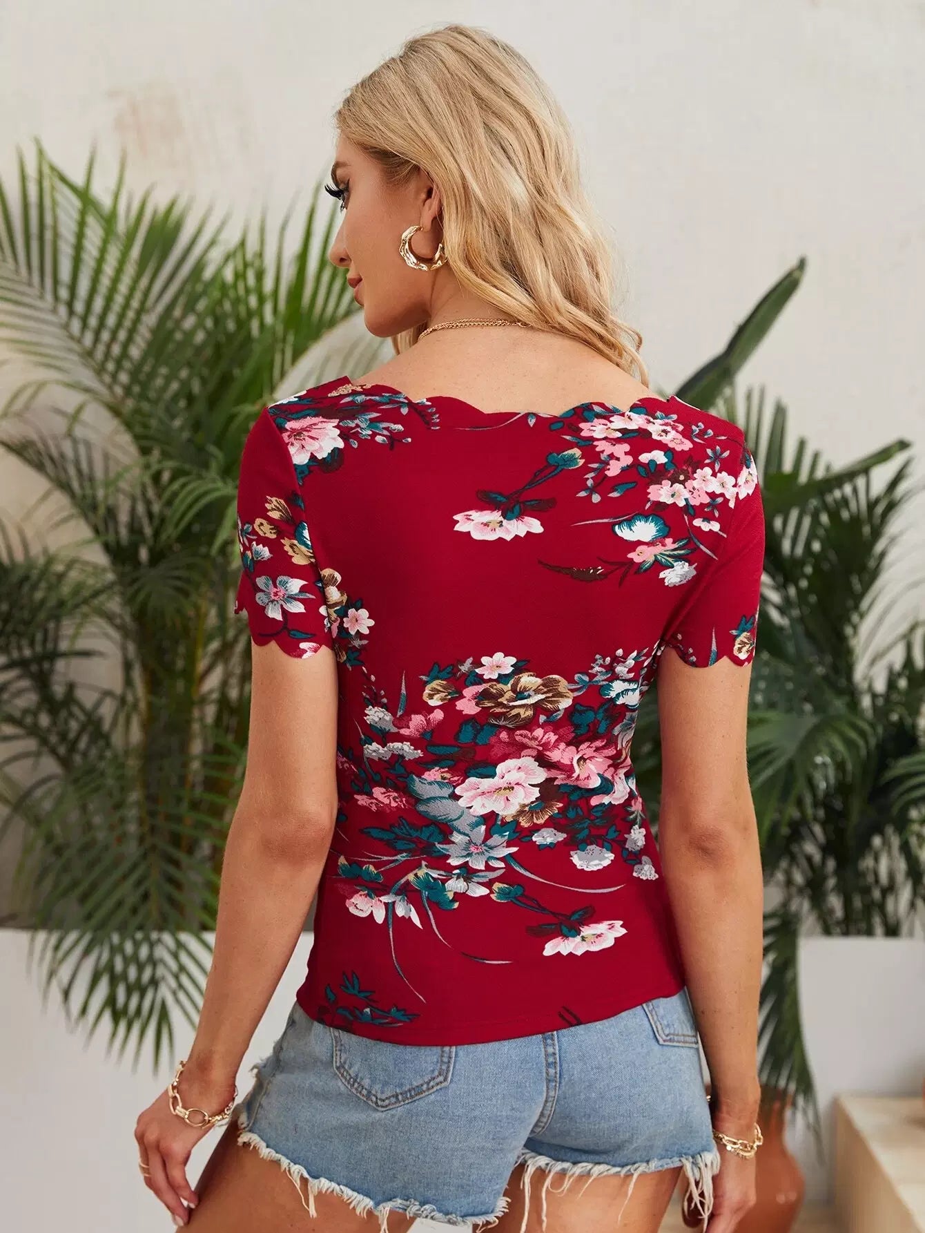 النساء - بلوزة مزهرة بزخرفة صدفية