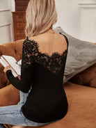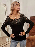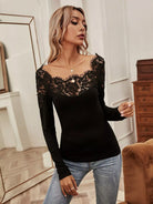 تي شيرت برقبة دانتيل برقبة دانتيل ضيقة