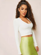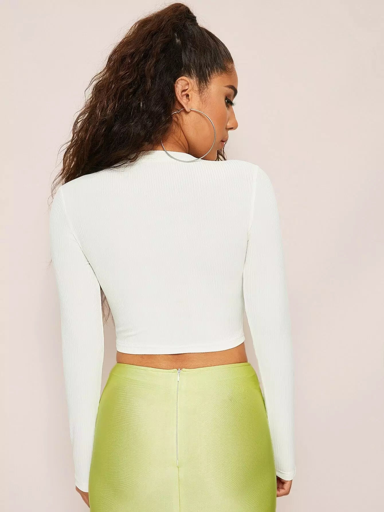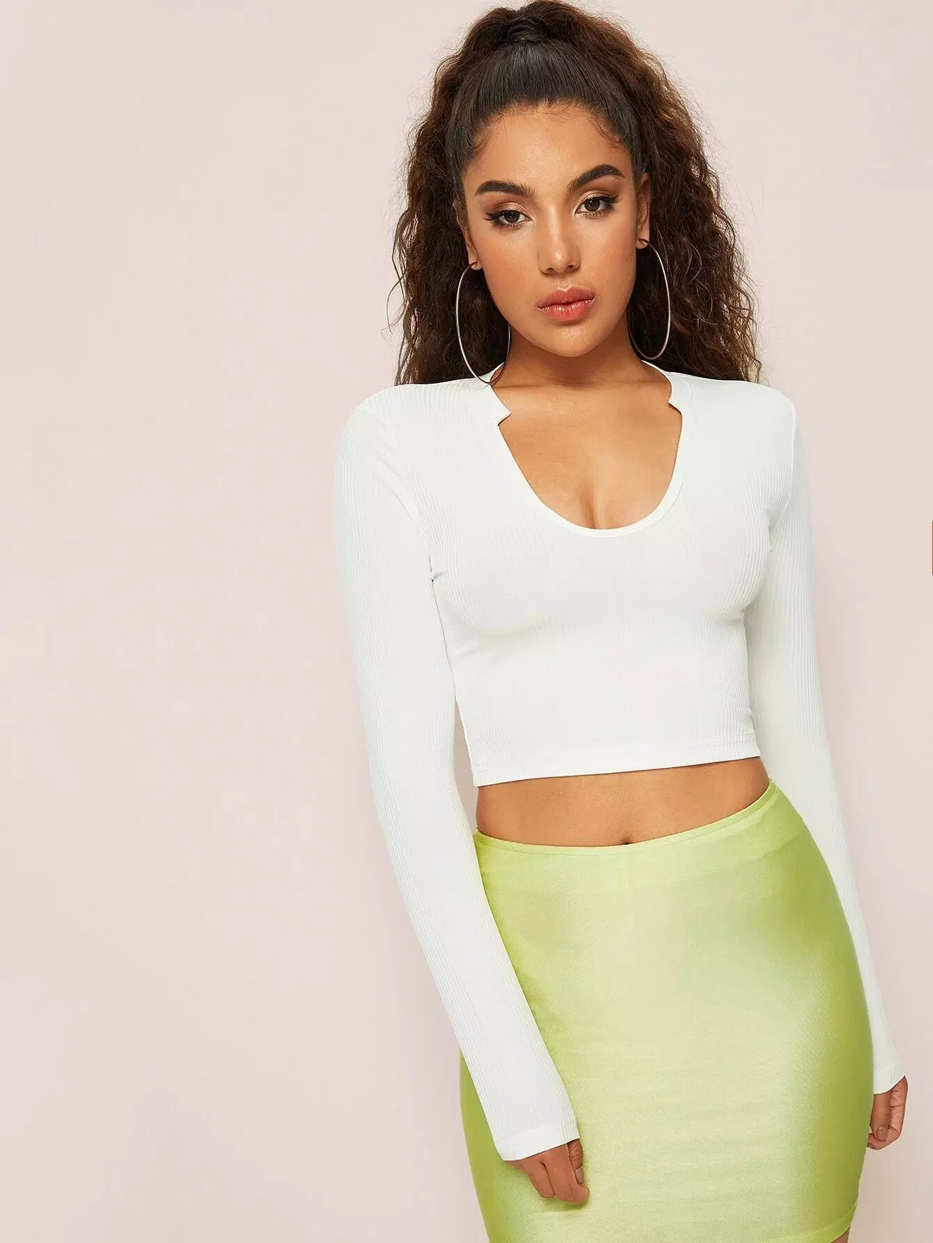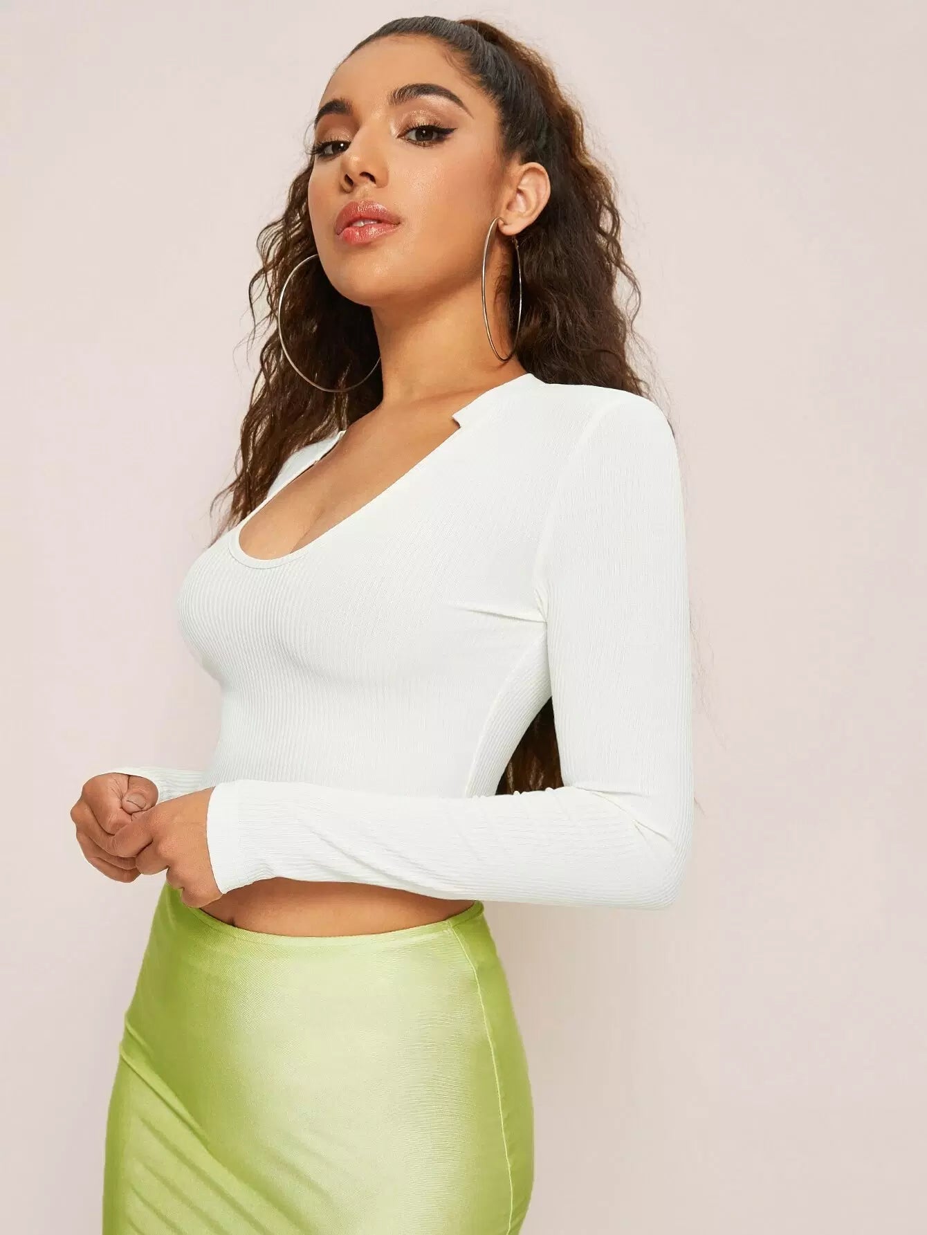 بلوزة برقبة دائرية بفتحة رقبة دائرية محبوكة على شكل ضلع محبوكة