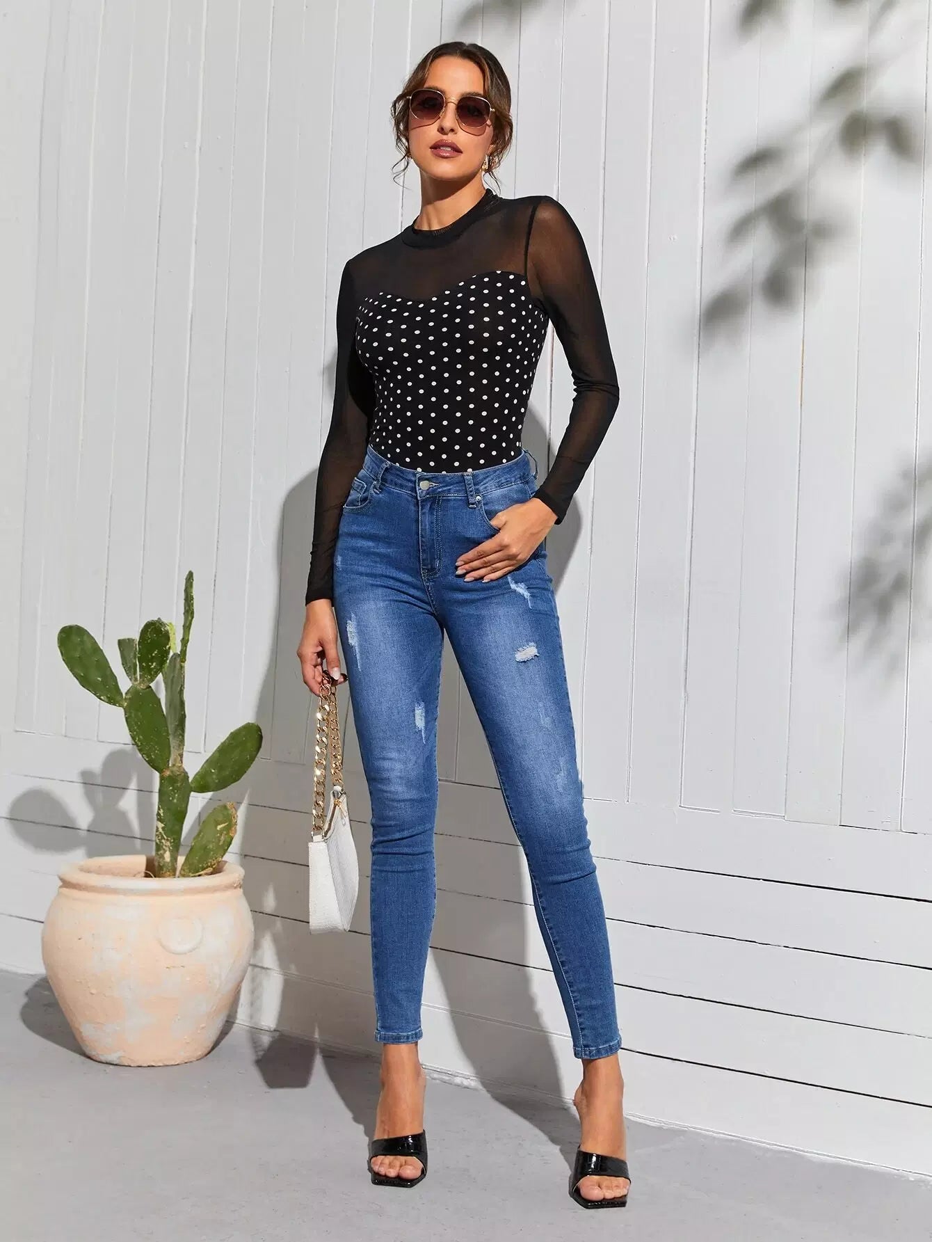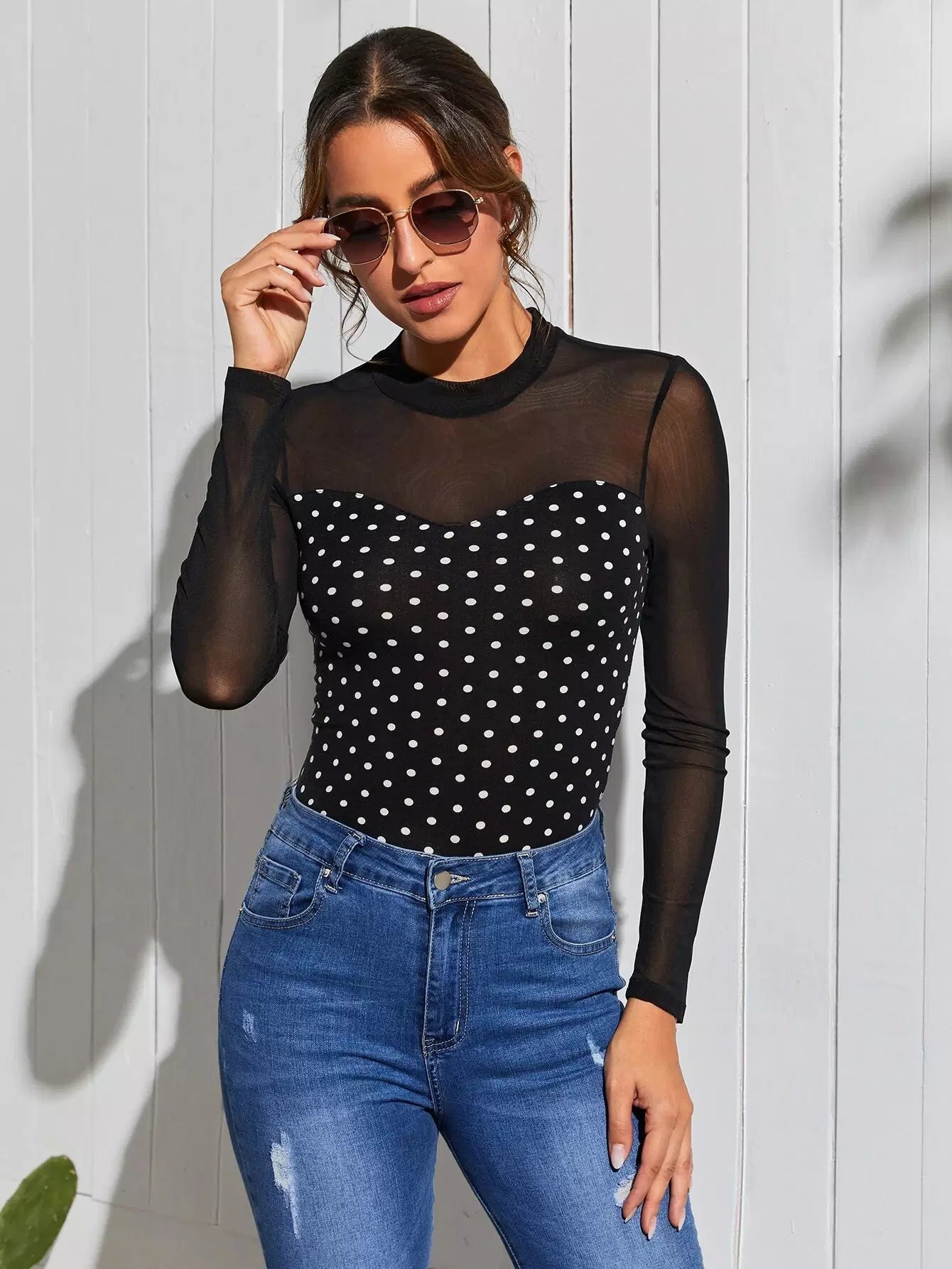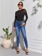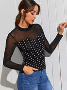 تي شفاف بنقشة شبكية شفافة منقوشة بنقشة البولكا دوت