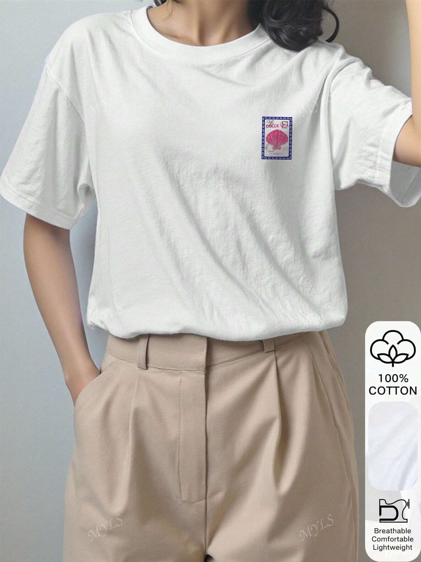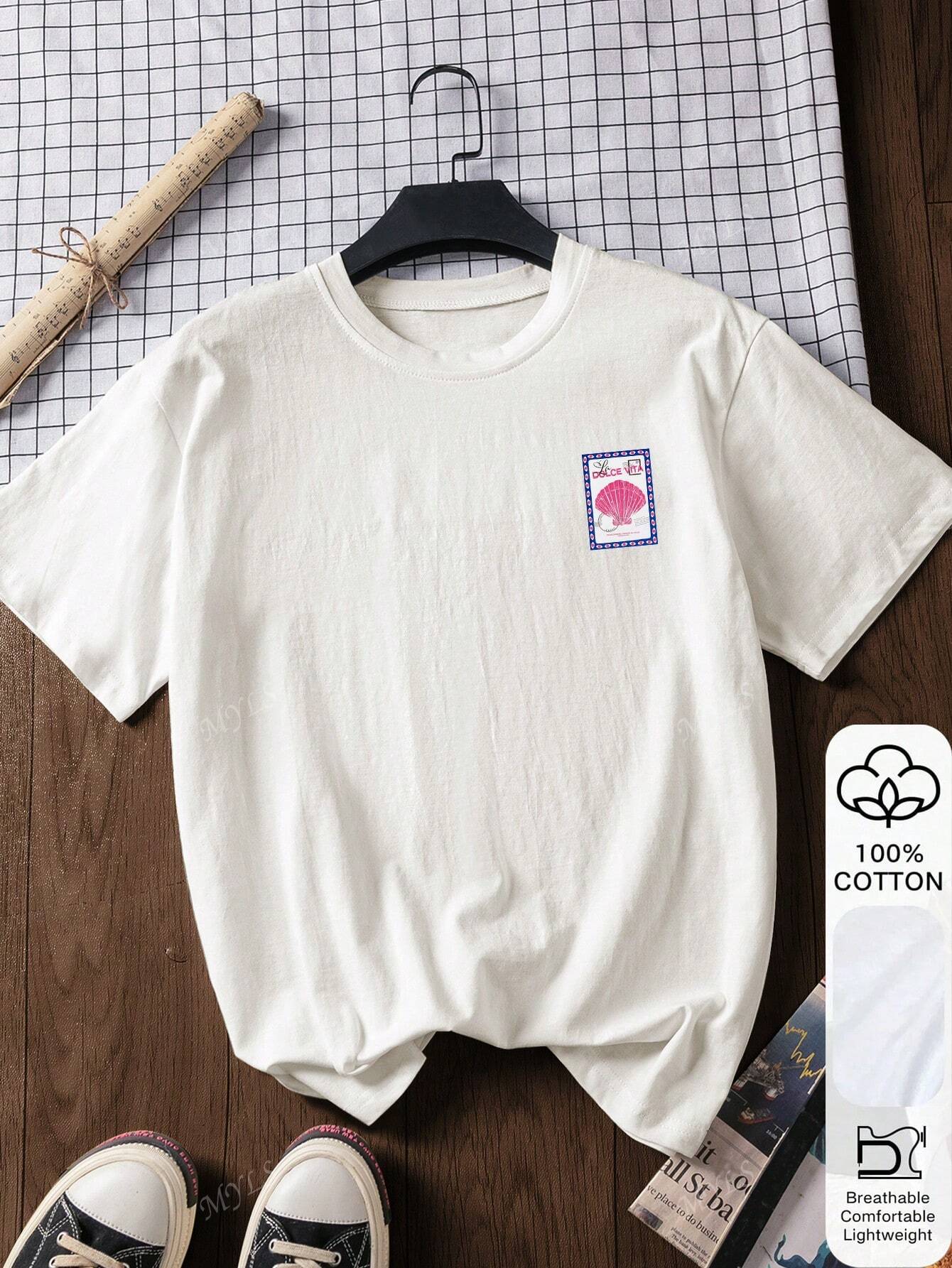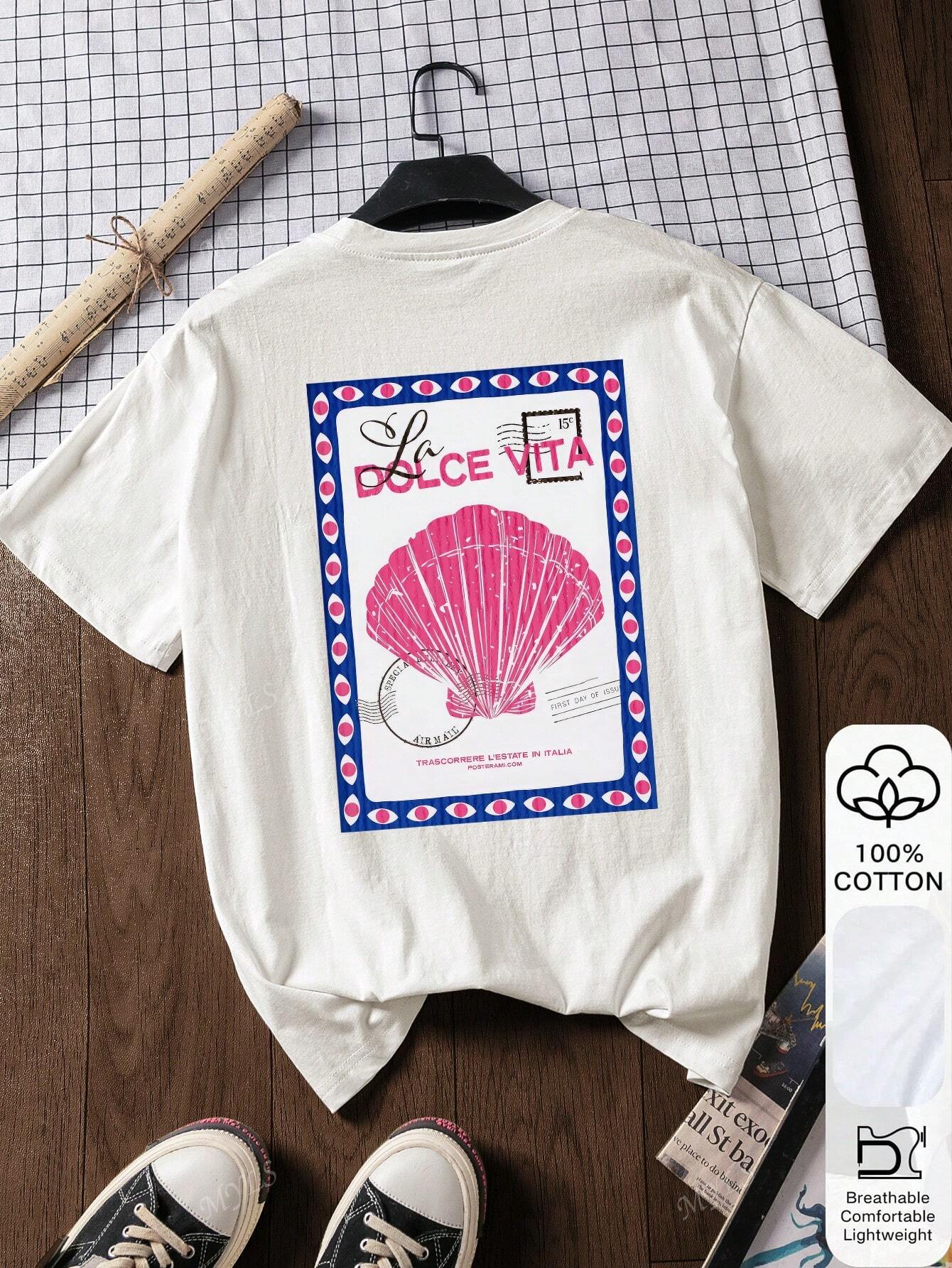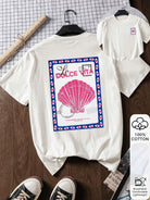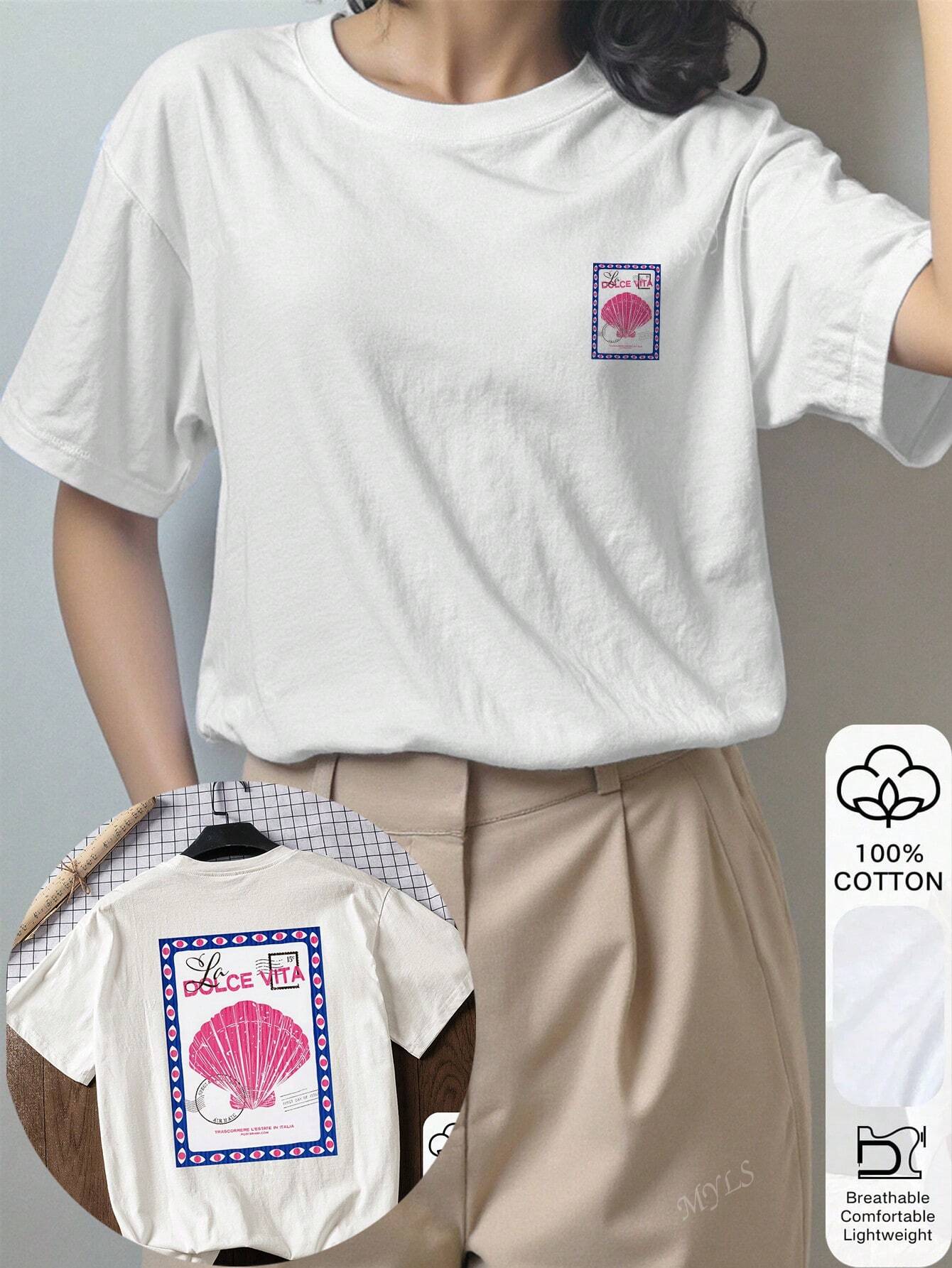 women Shell Stamp Pattern Printed Summer Women's 100% Cotton Short-Sleeved Tops