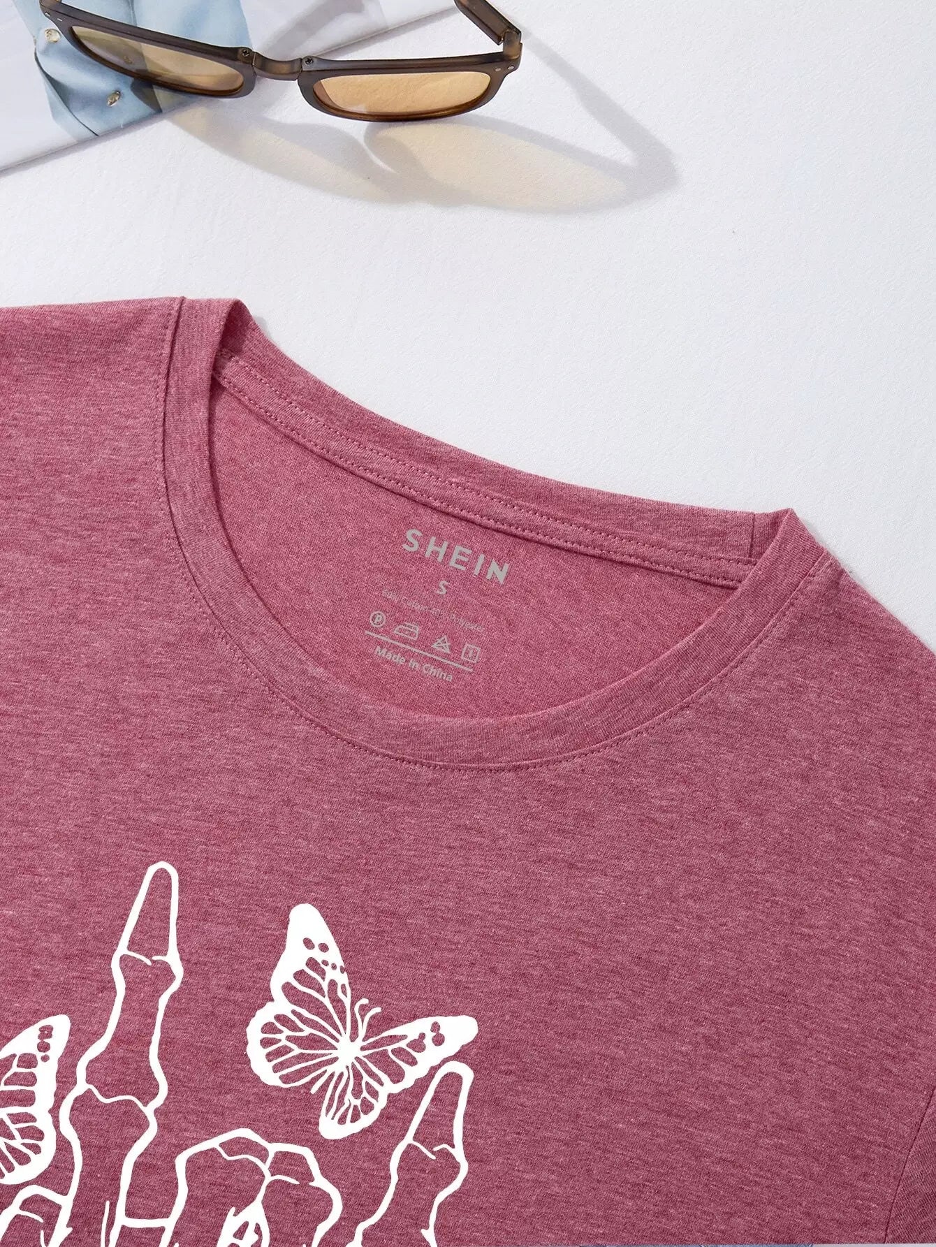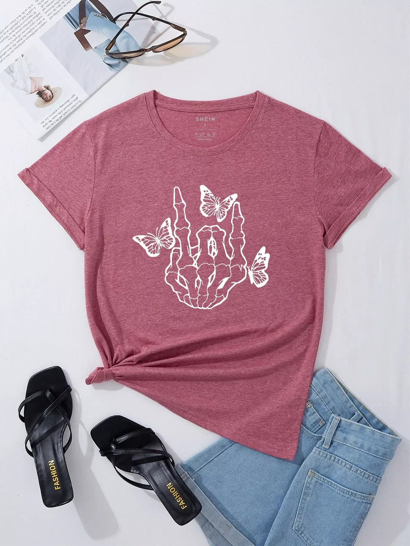 تي شيرت بطبعة جمجمة وفراشة