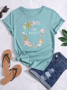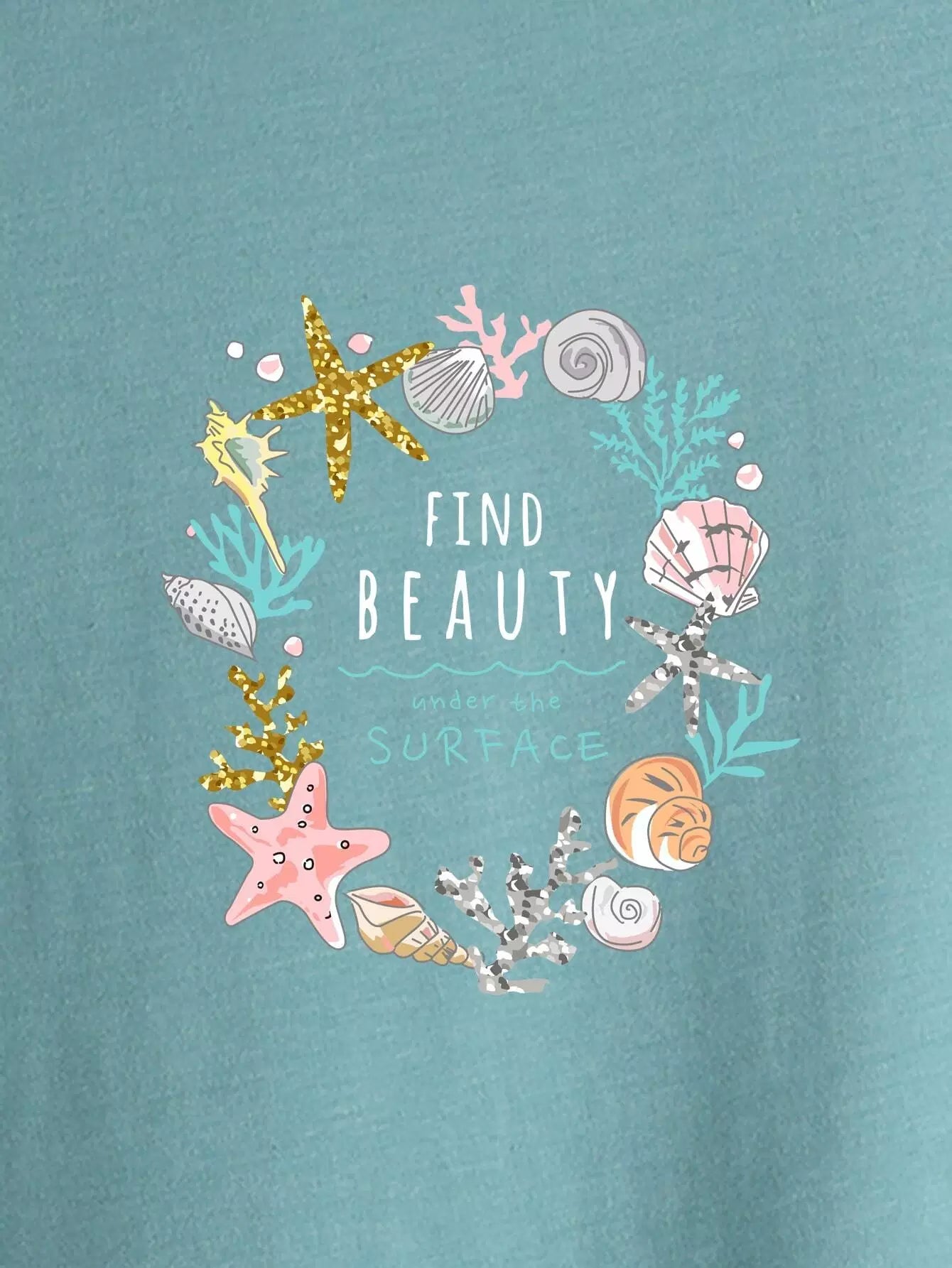 للنساء - تي شيرت مطبوع عليه شعار ورسومات