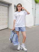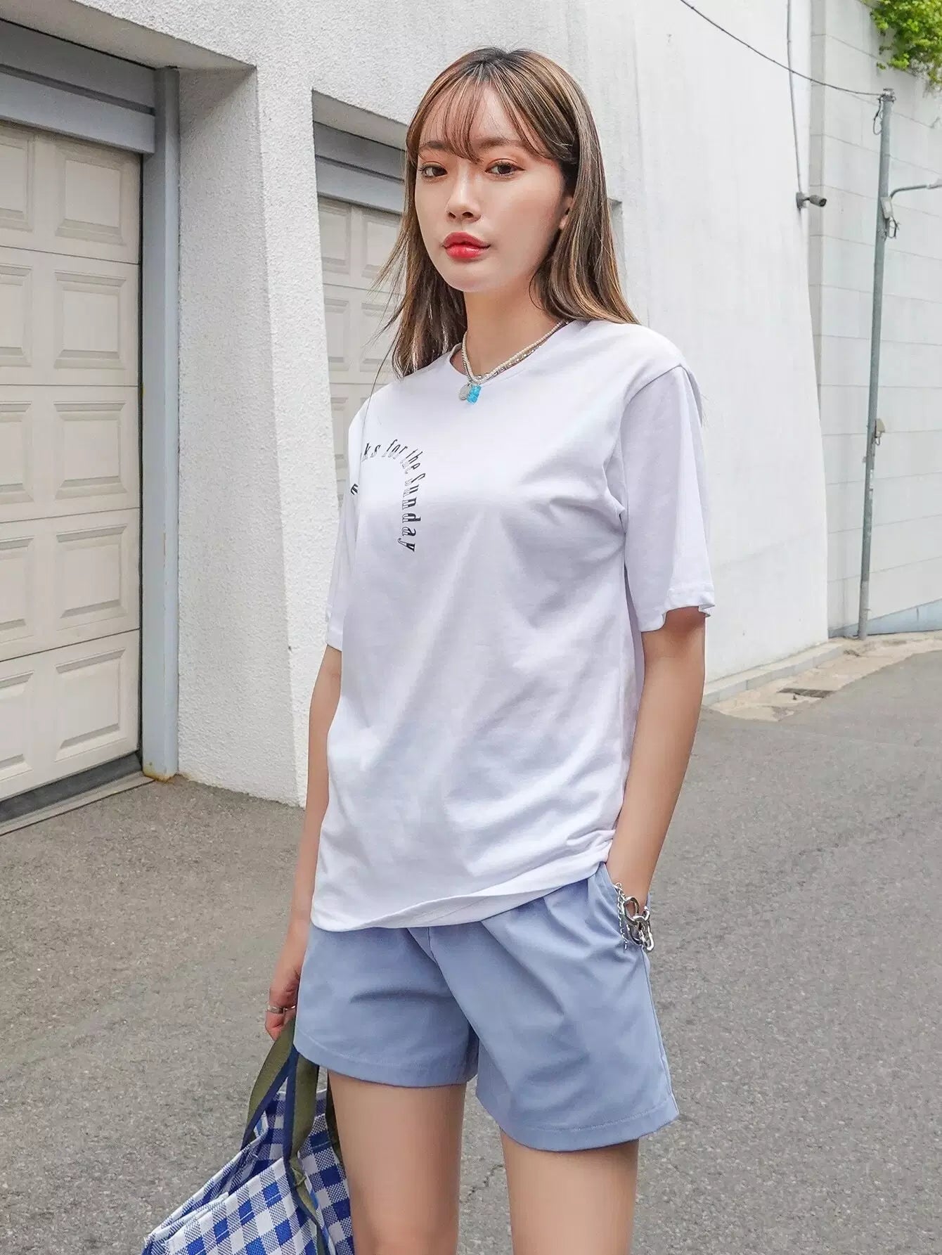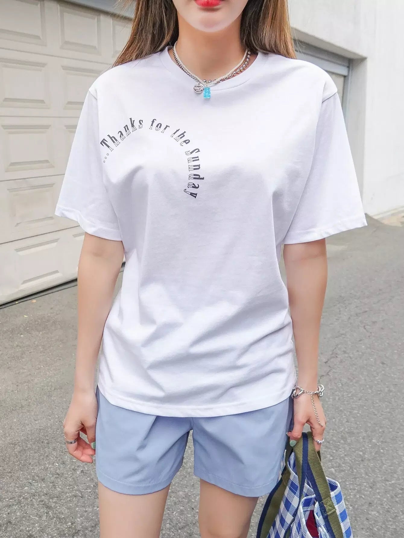 للنساء - تي شيرت برسومات الشعار وأكمام قصيرة
