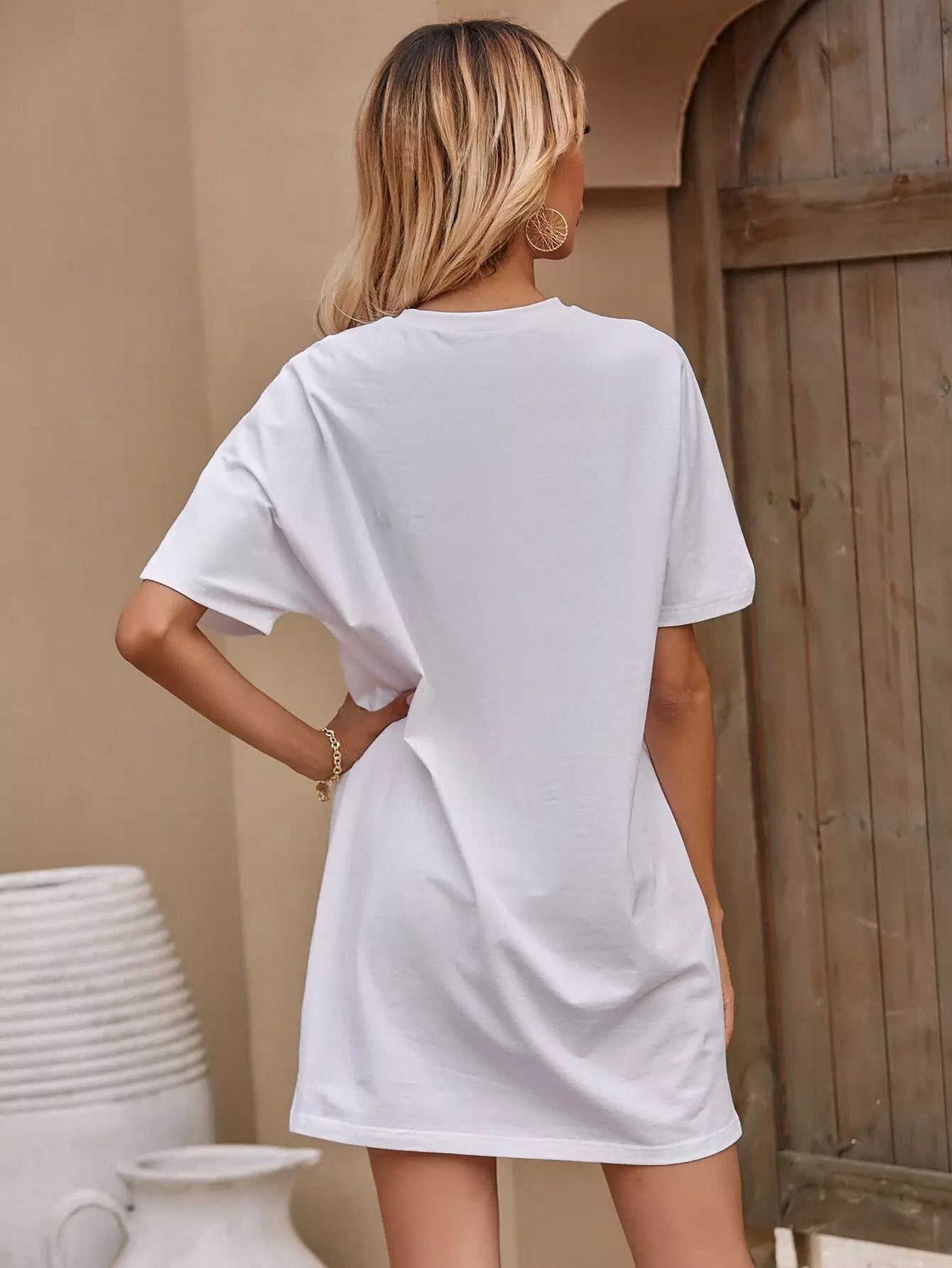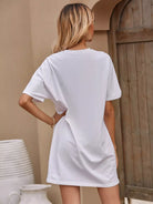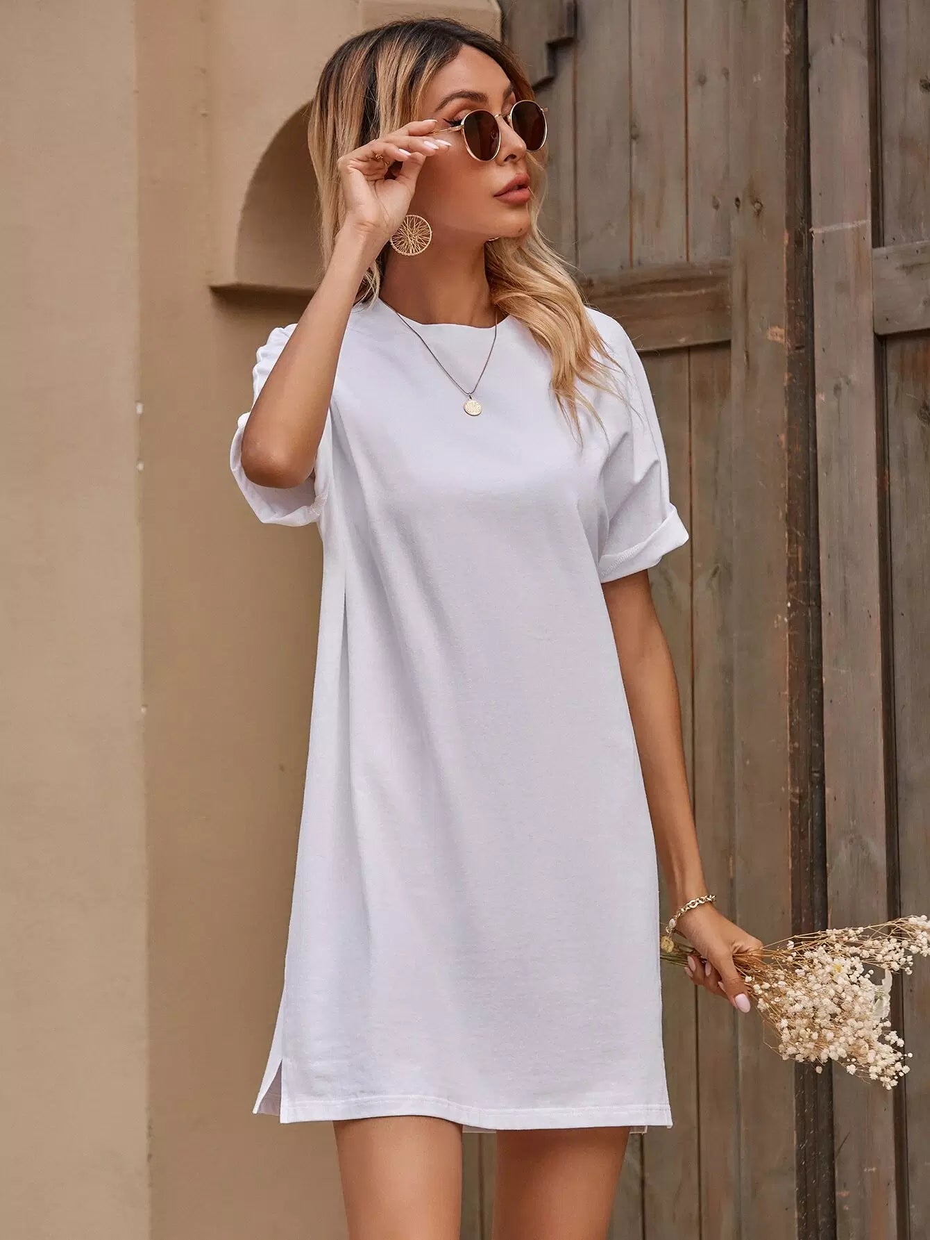 تي شيرت بأكمام باتوينغ سادة بحاشية مشقوقة طويلة الأكمام