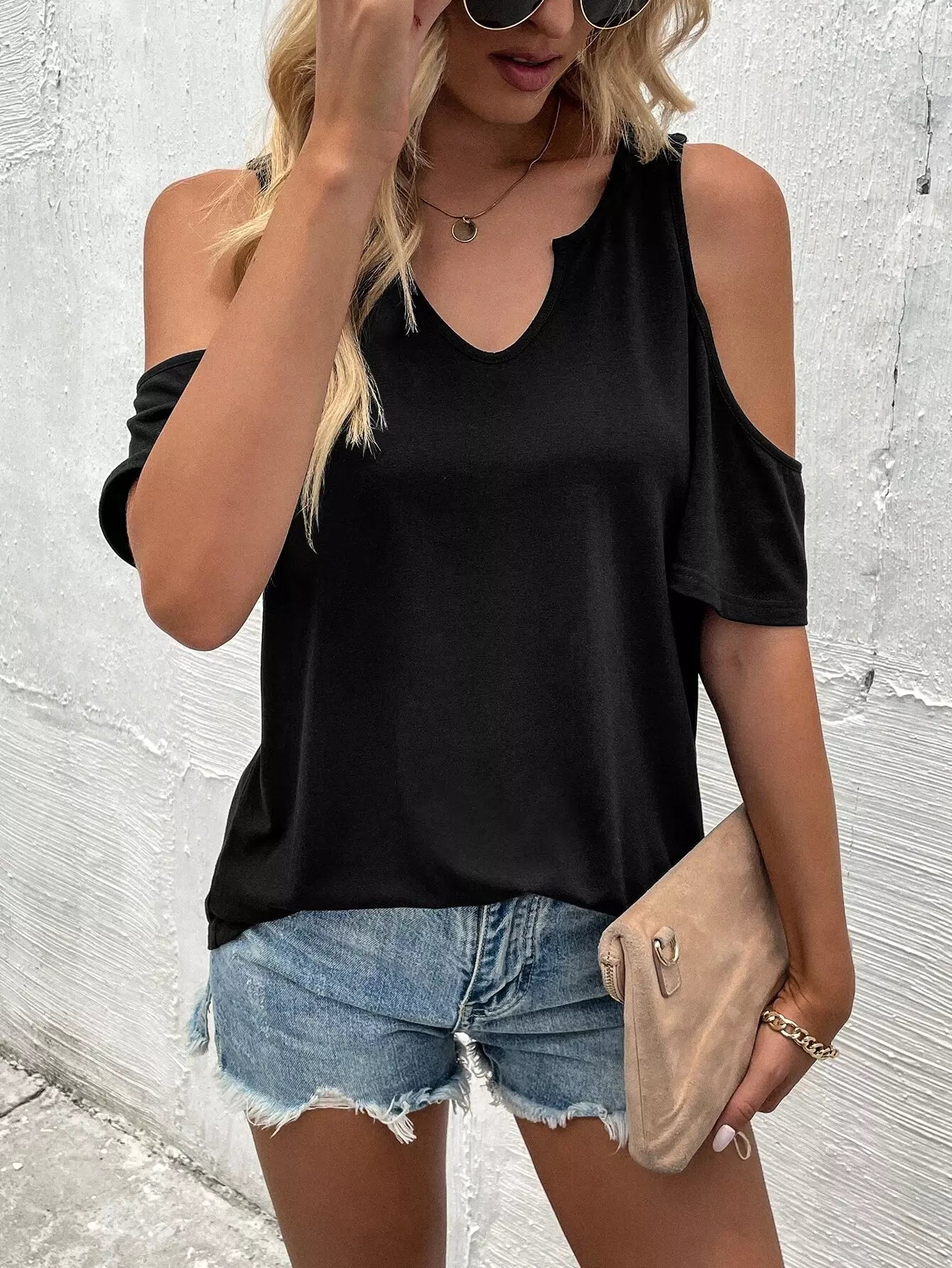 تي شيرت بأكتاف باردة سادة