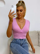 تي شيرت بقصّة ملفوفة قصيرة سادة